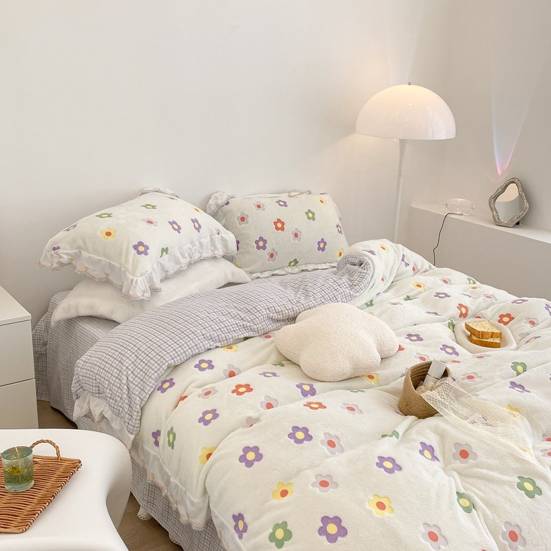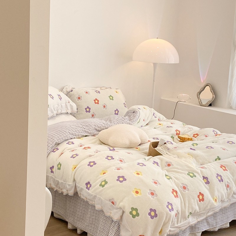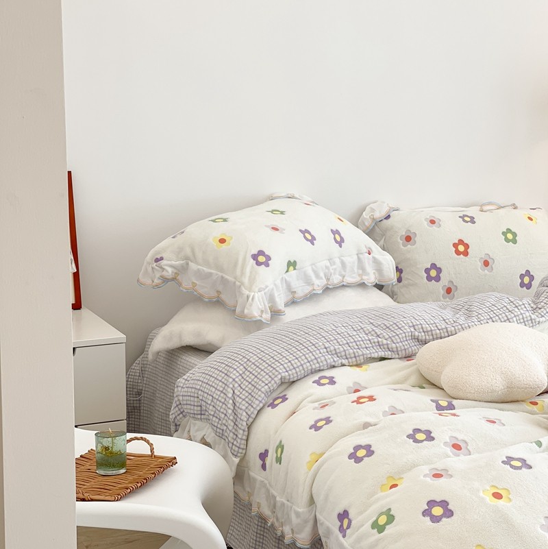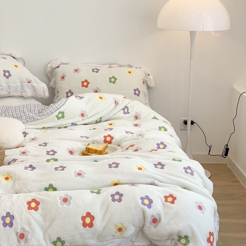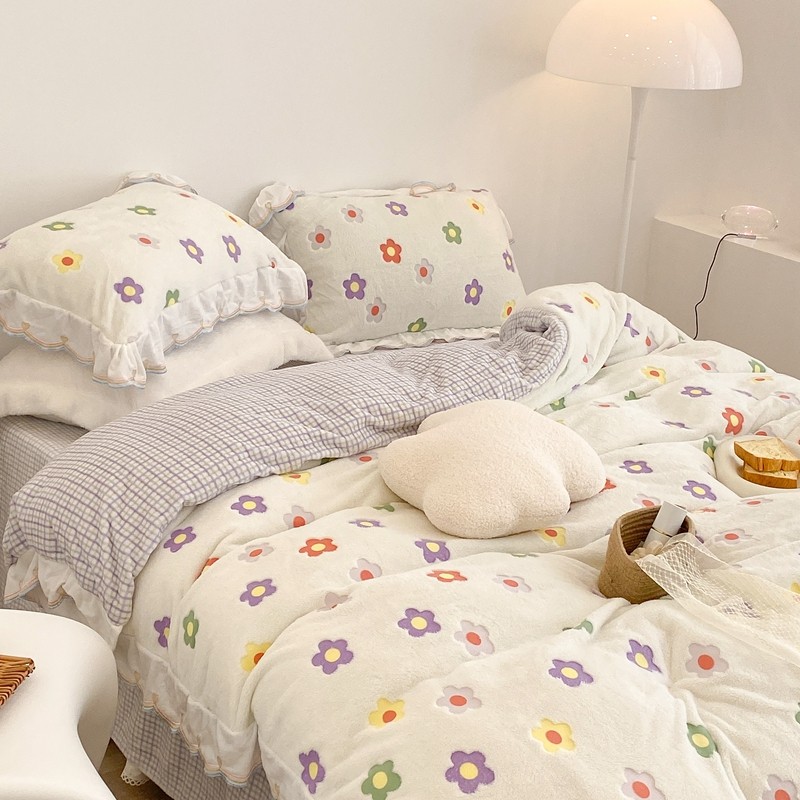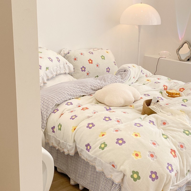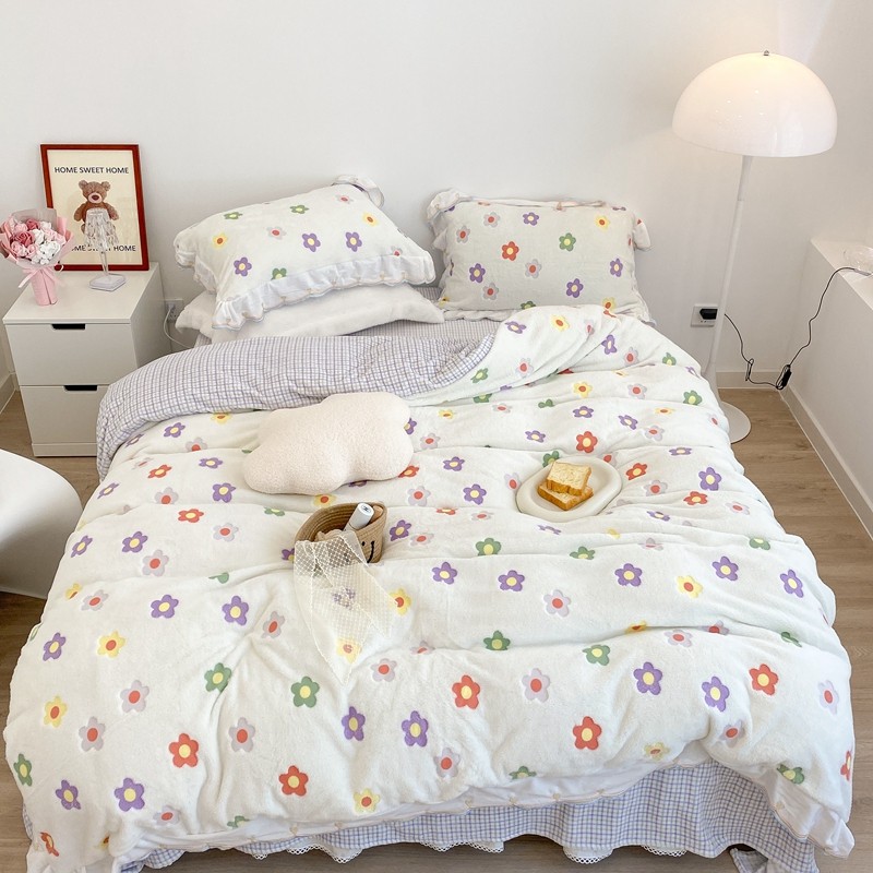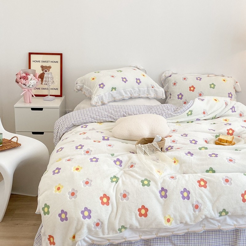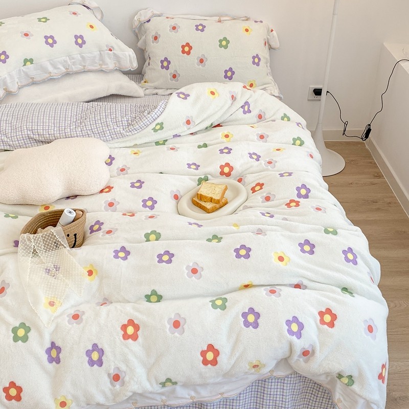 昔可家纺 2021新款coco雪貂绒四件套 炫雅花白