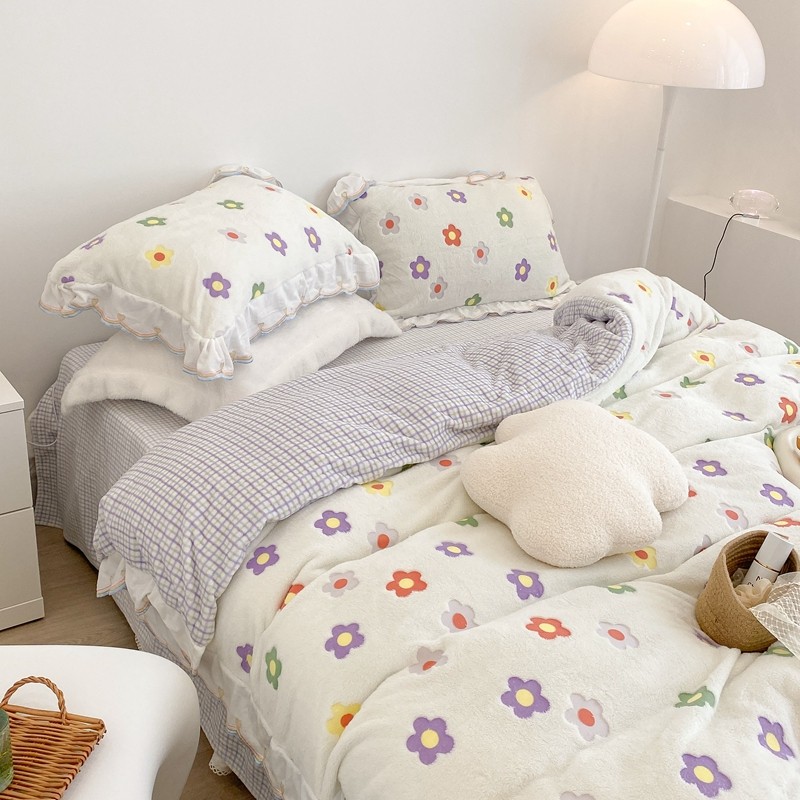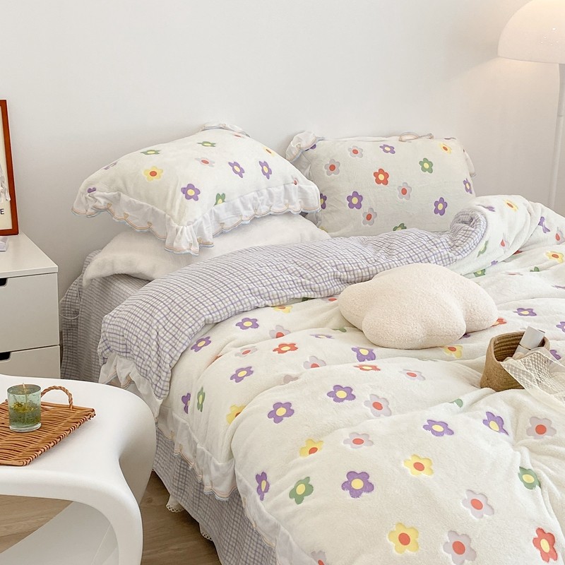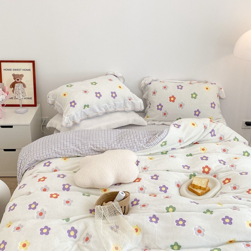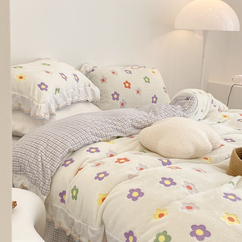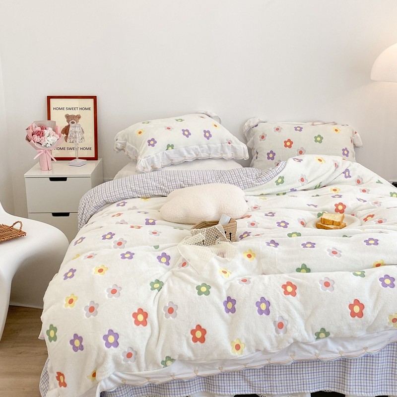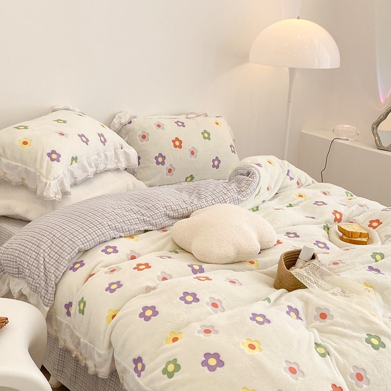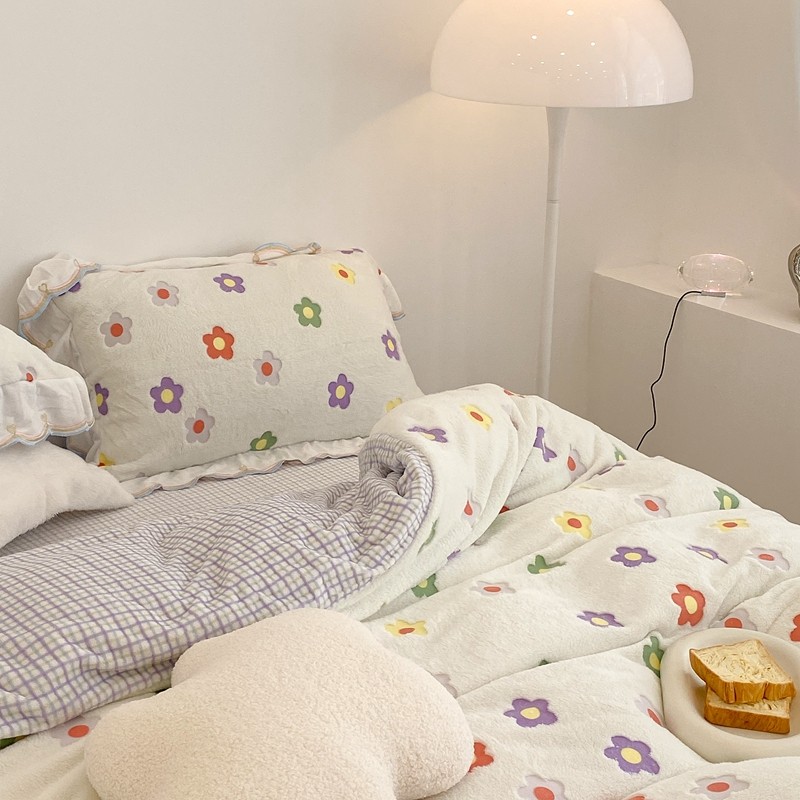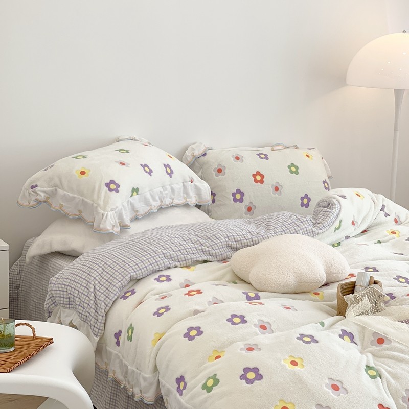 昔可家纺 2021新款coco雪貂绒四件套 炫雅花白