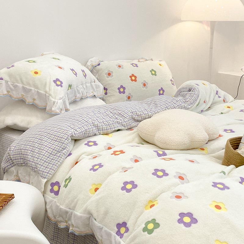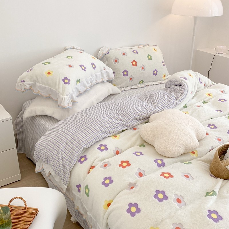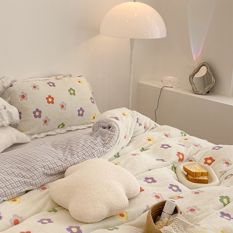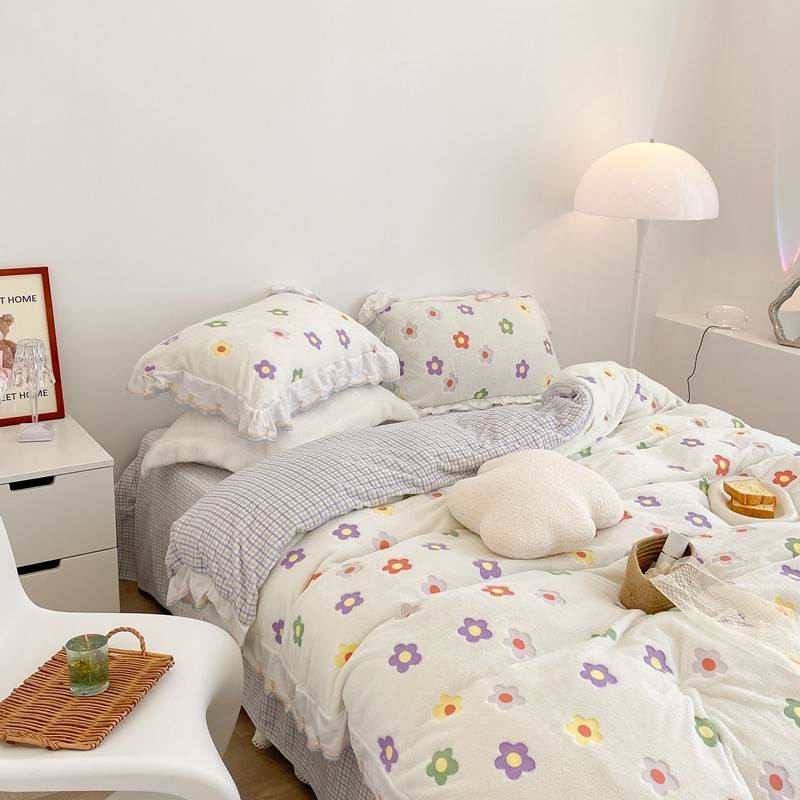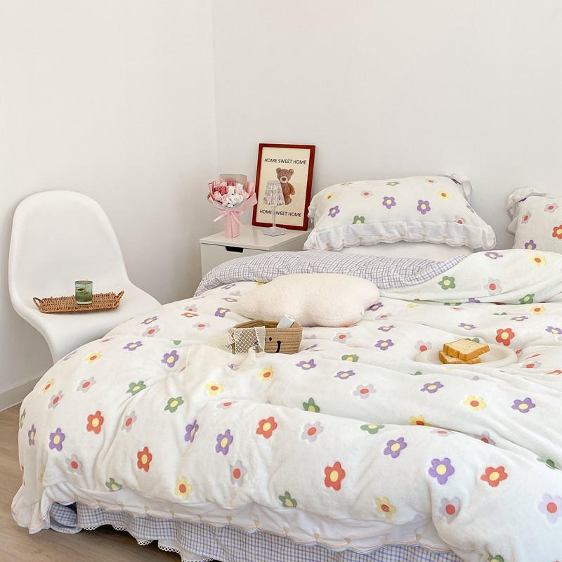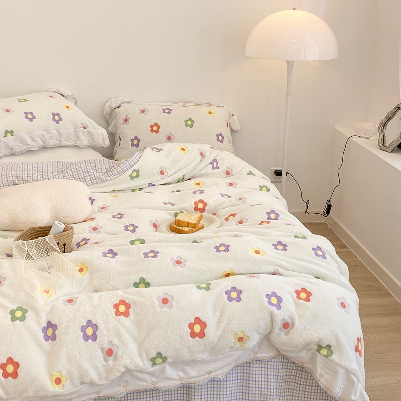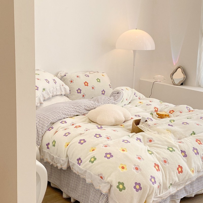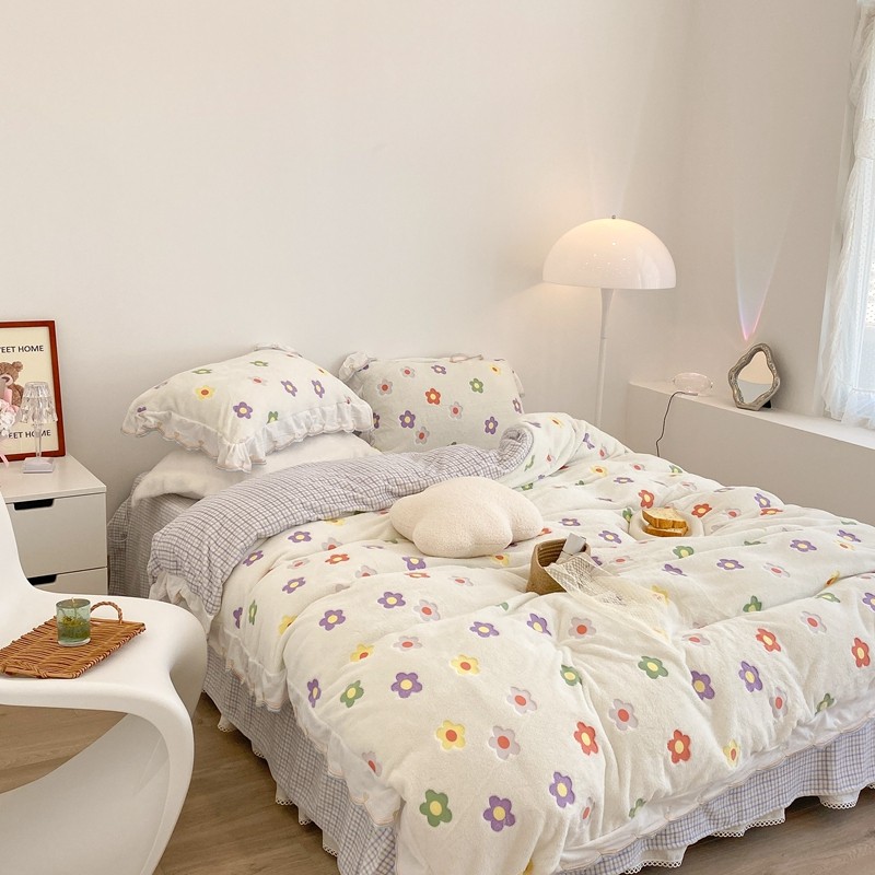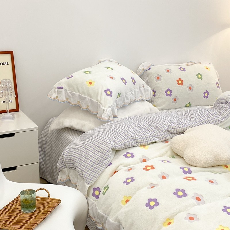 昔可家纺 2021新款coco雪貂绒四件套 炫雅花白