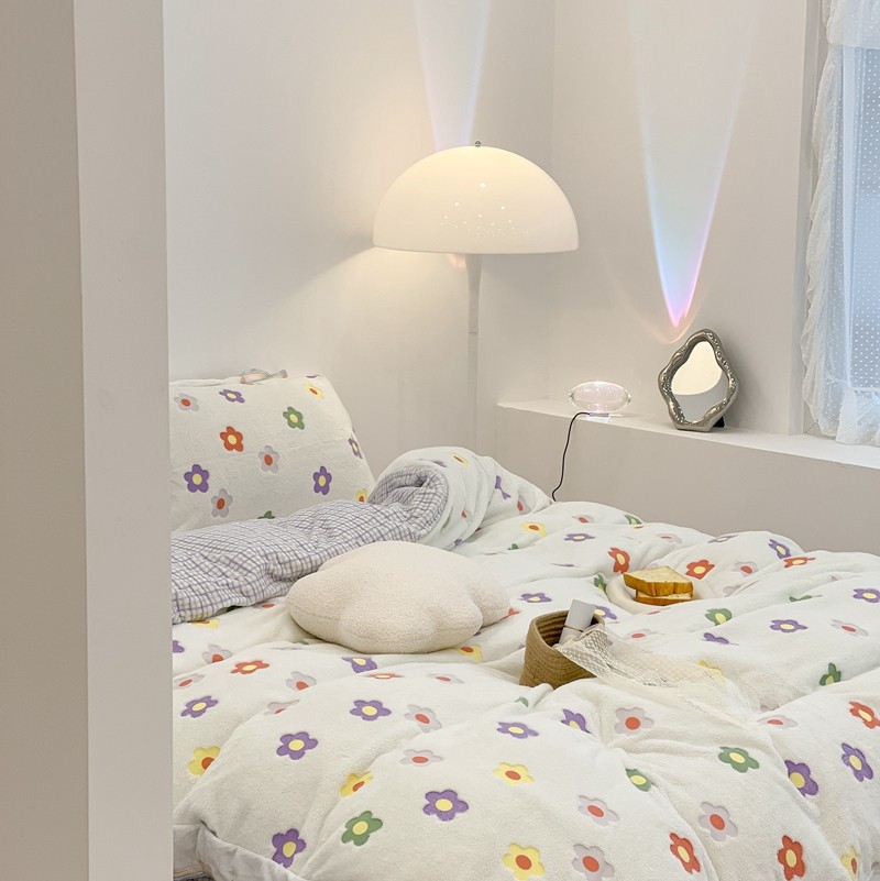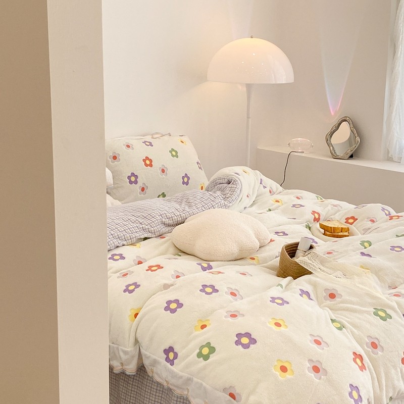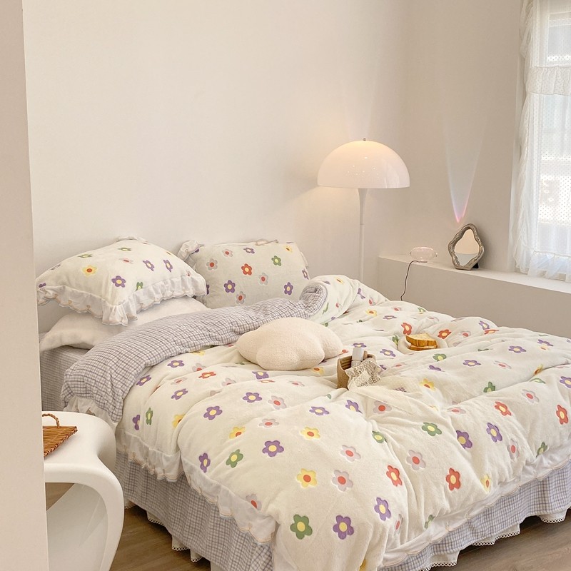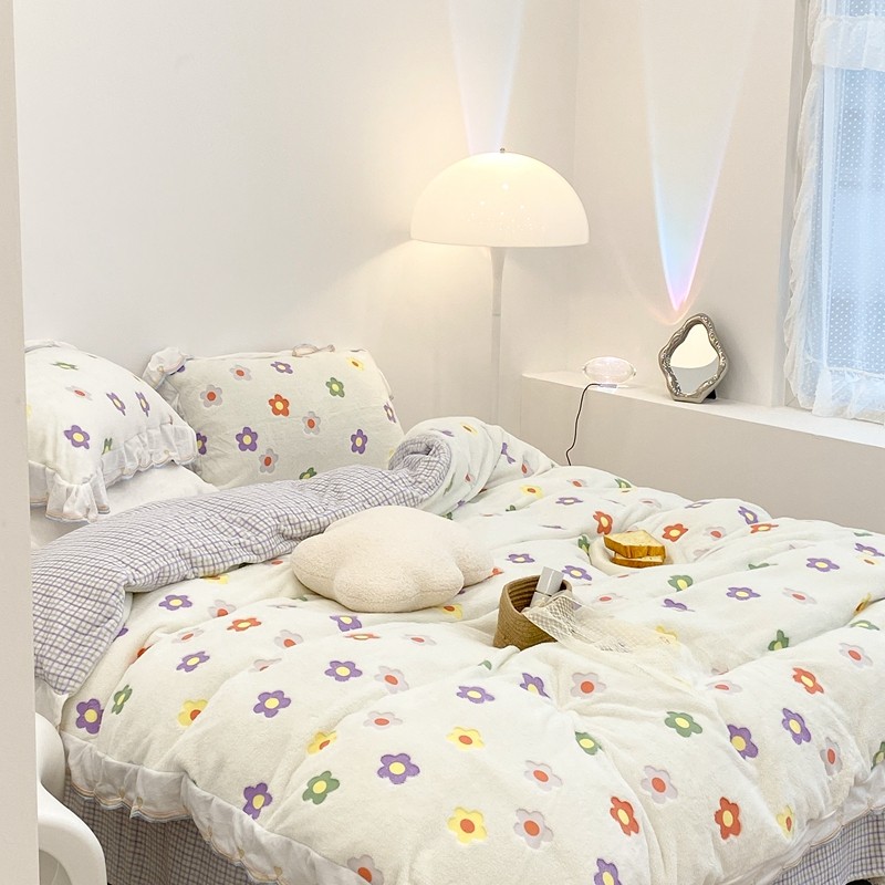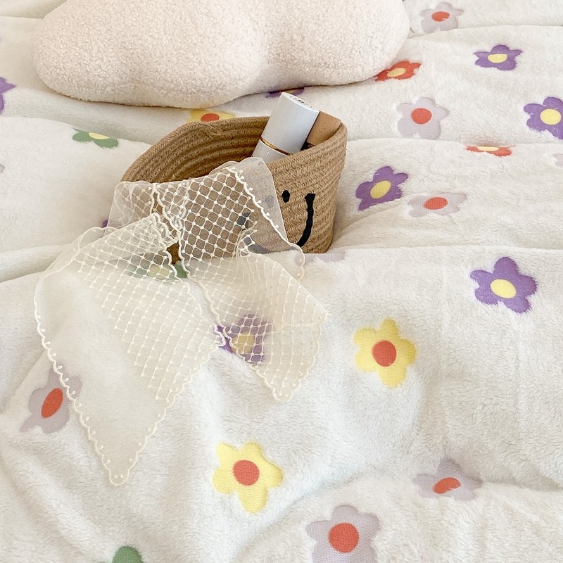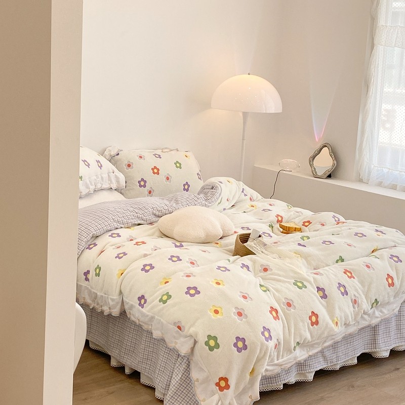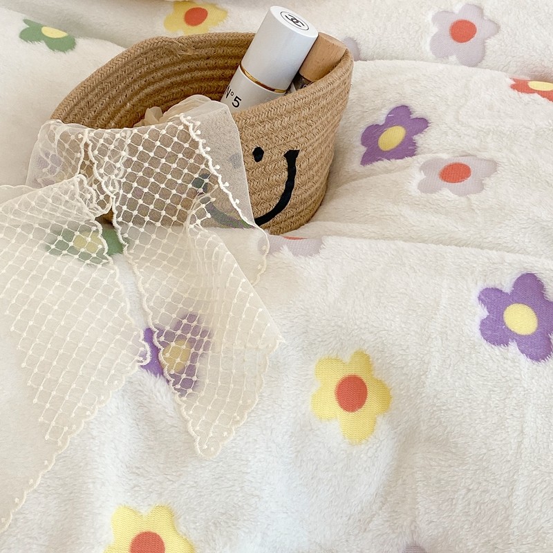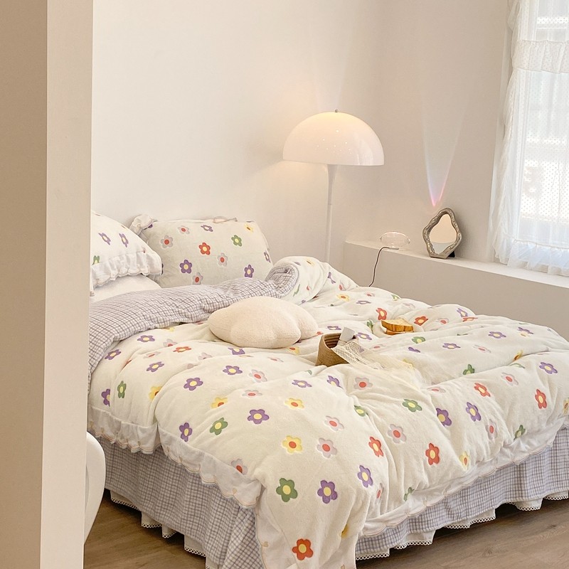 昔可家纺 2021新款coco雪貂绒四件套 炫雅花白