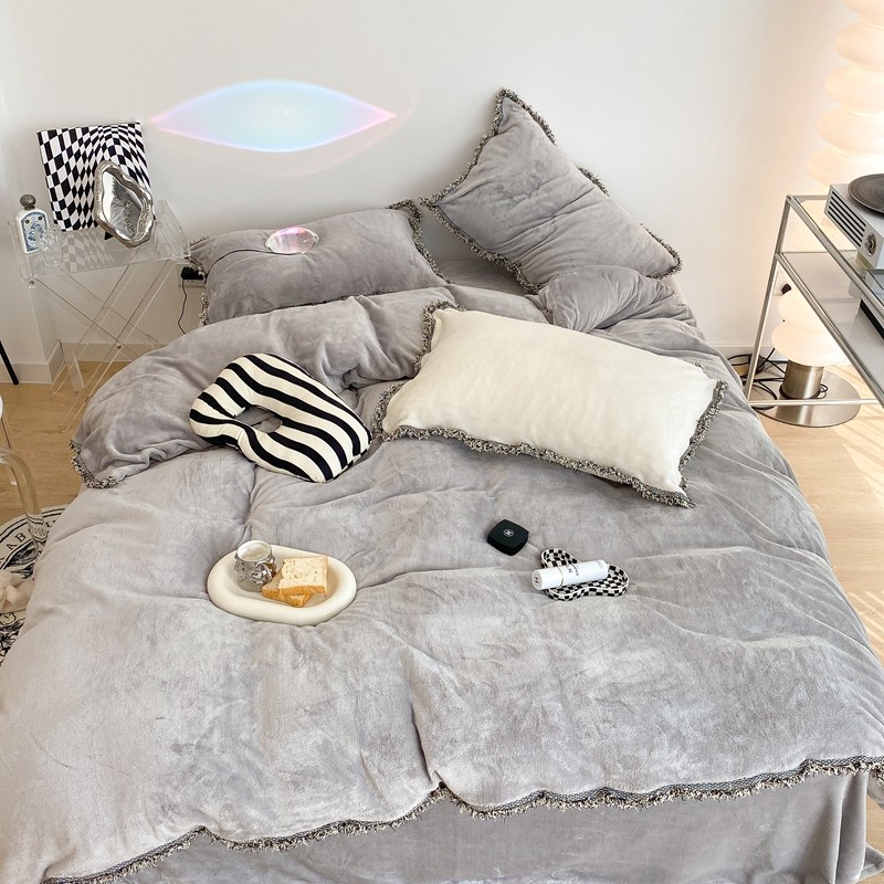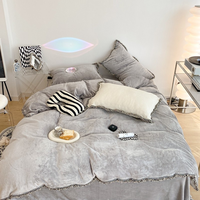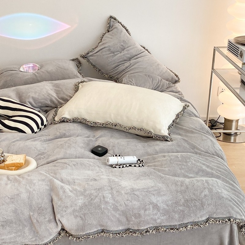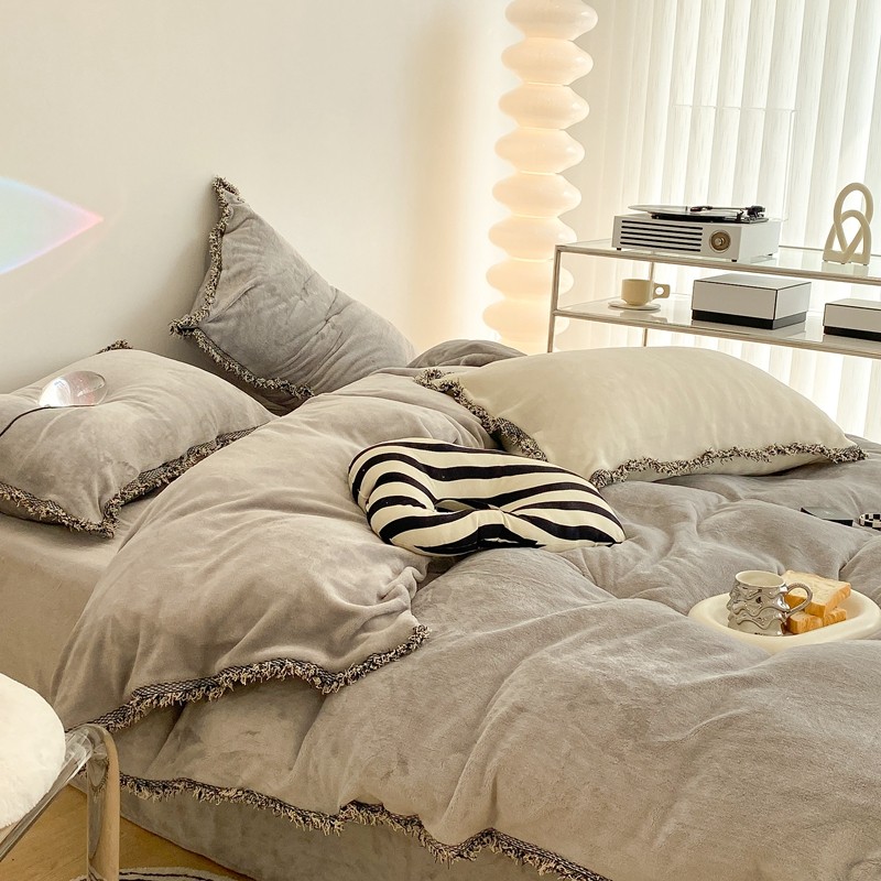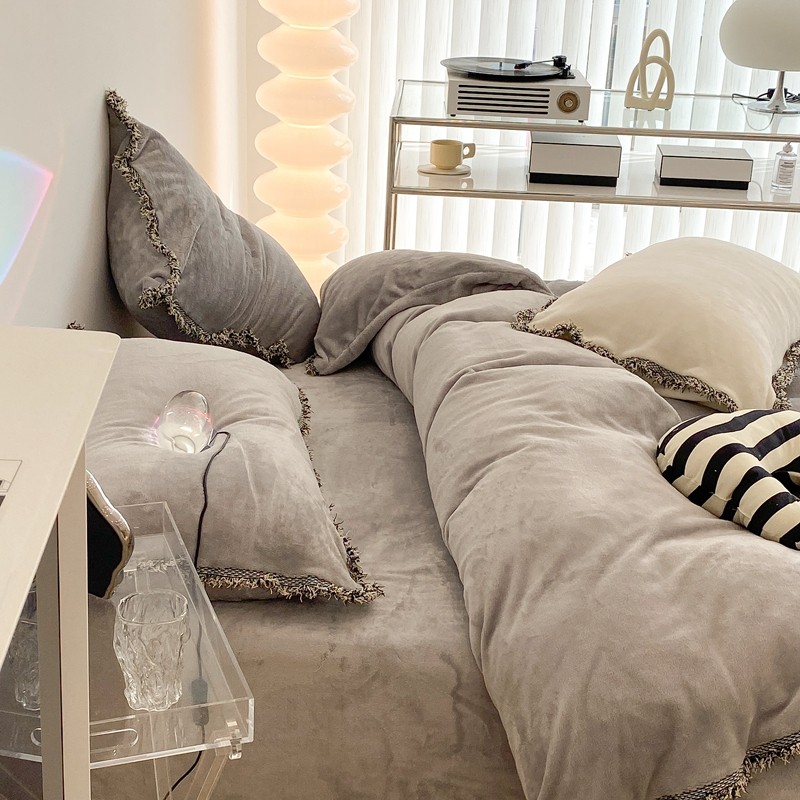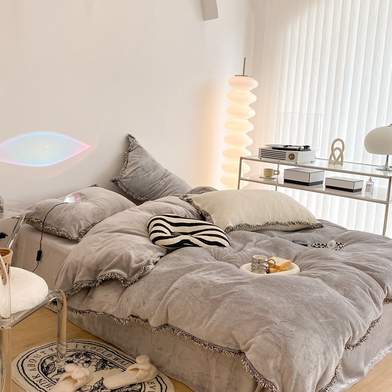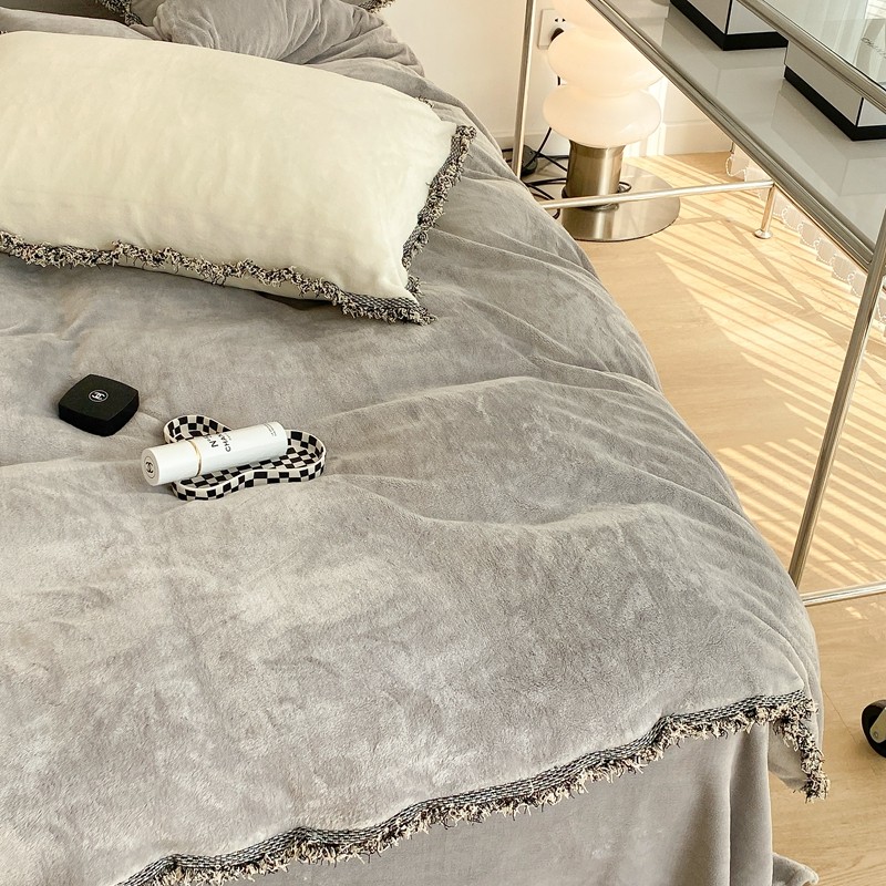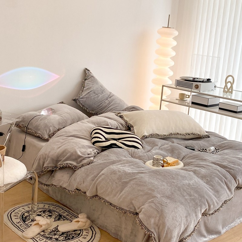 昔可家纺 2021新款小香香风牛奶绒四件套 小香气质灰