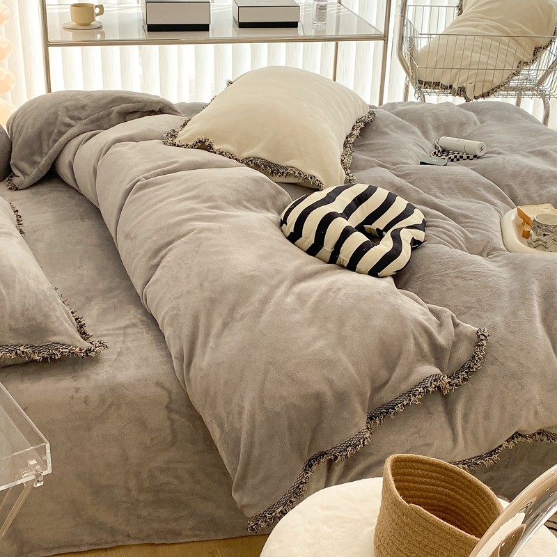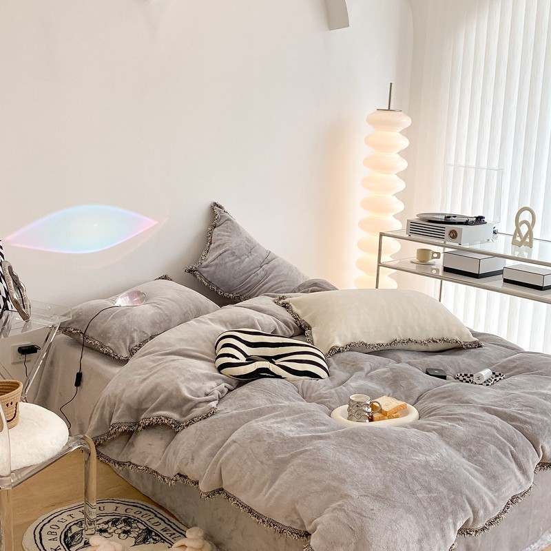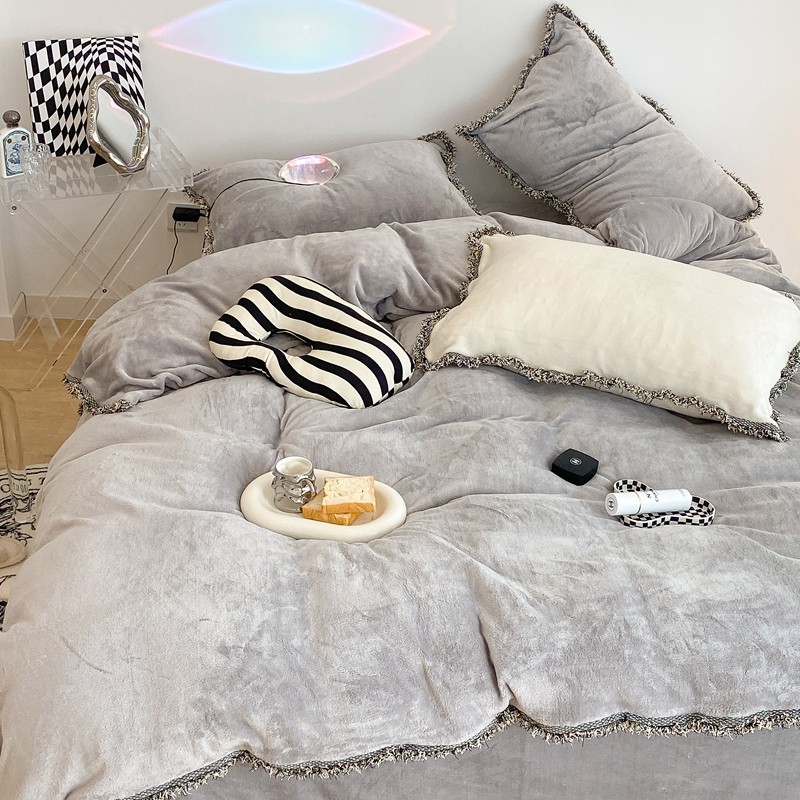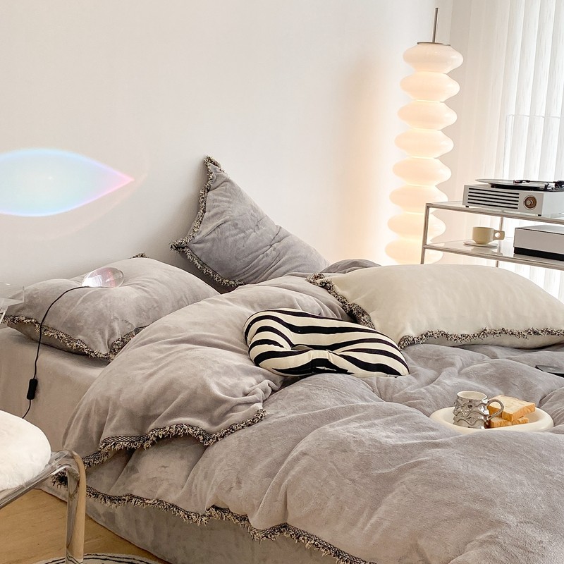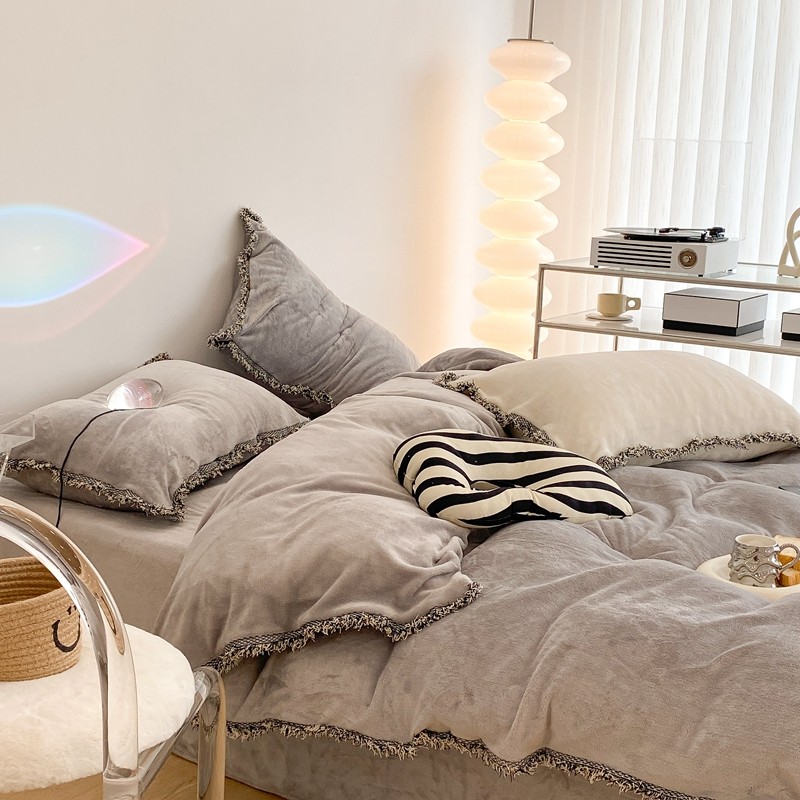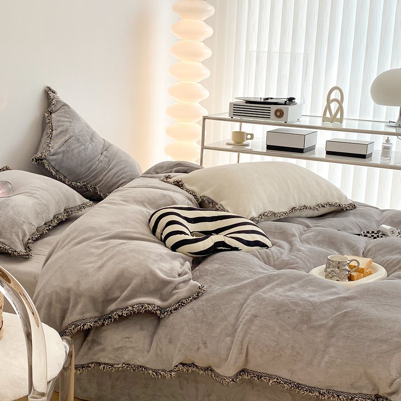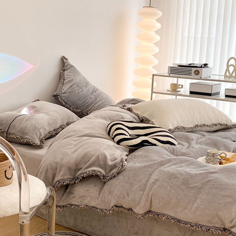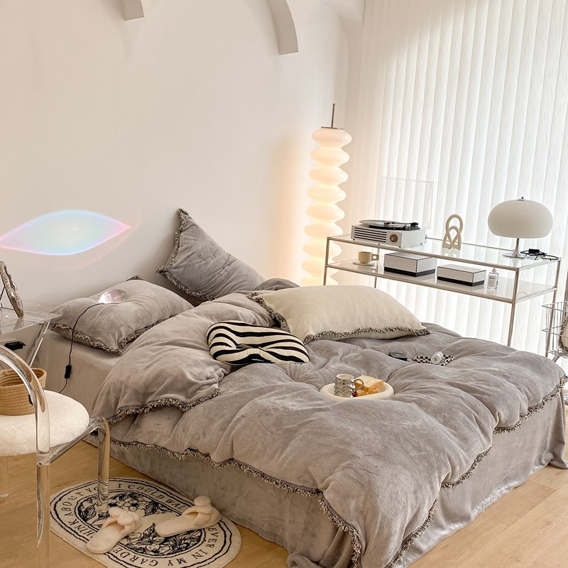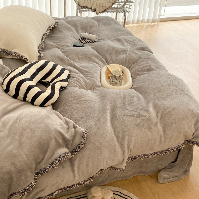 昔可家纺 2021新款小香香风牛奶绒四件套 小香气质灰