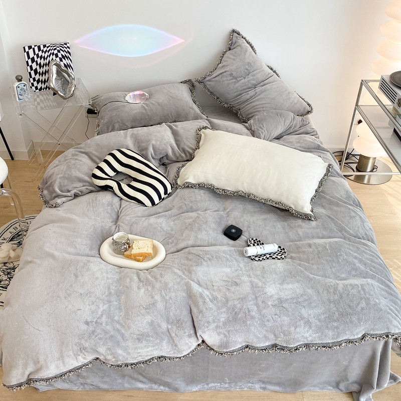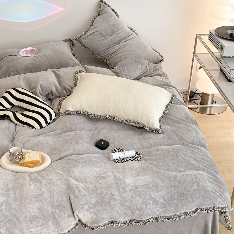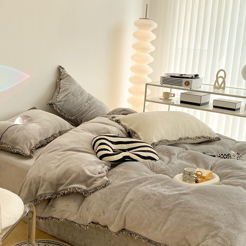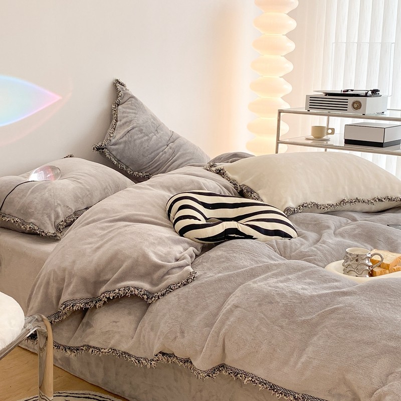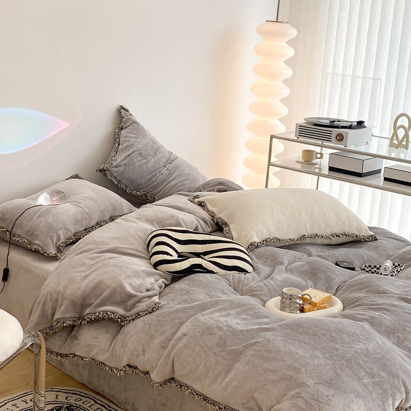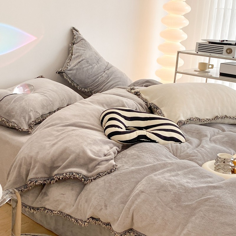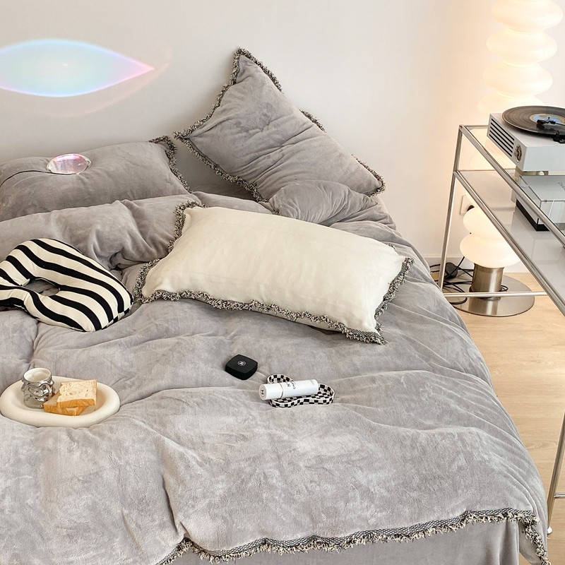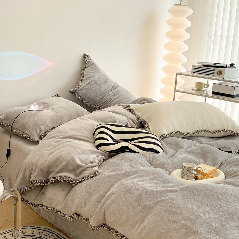 昔可家纺 2021新款小香香风牛奶绒四件套 小香气质灰