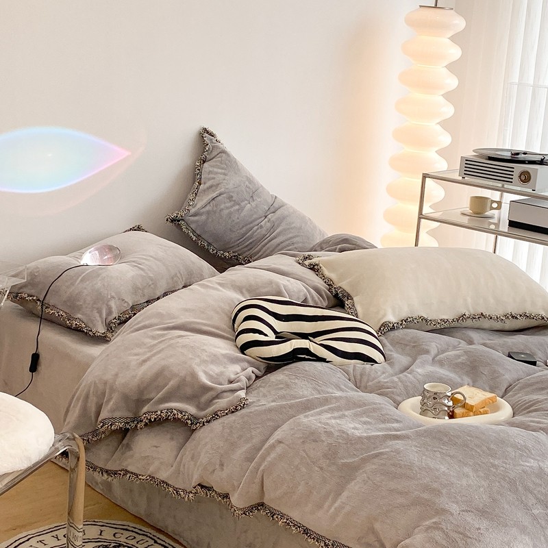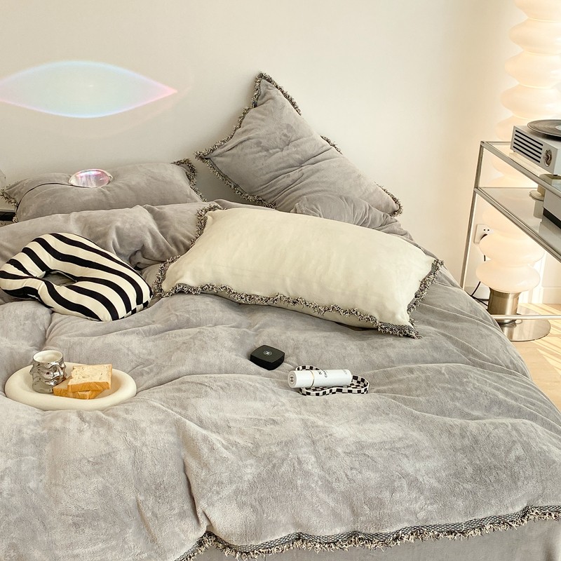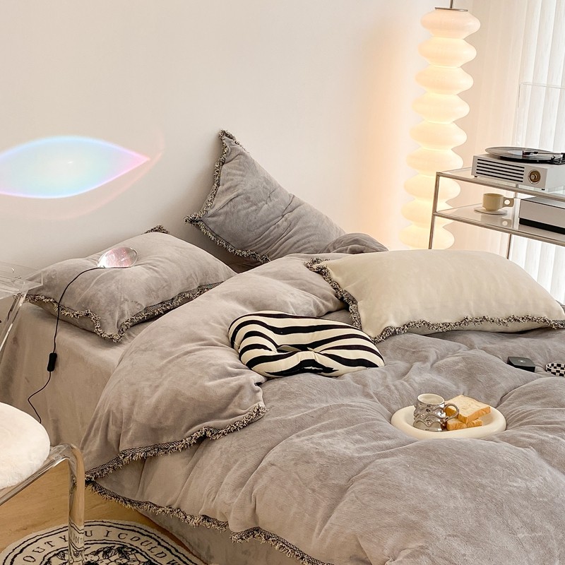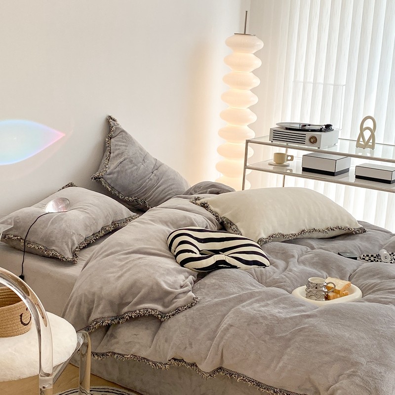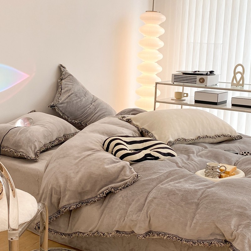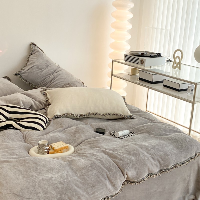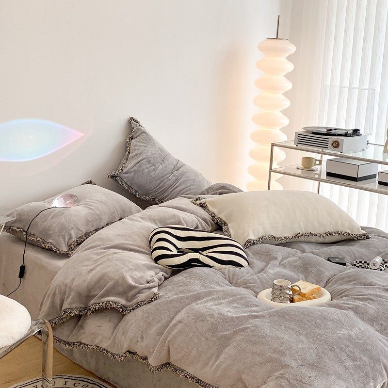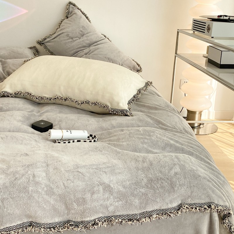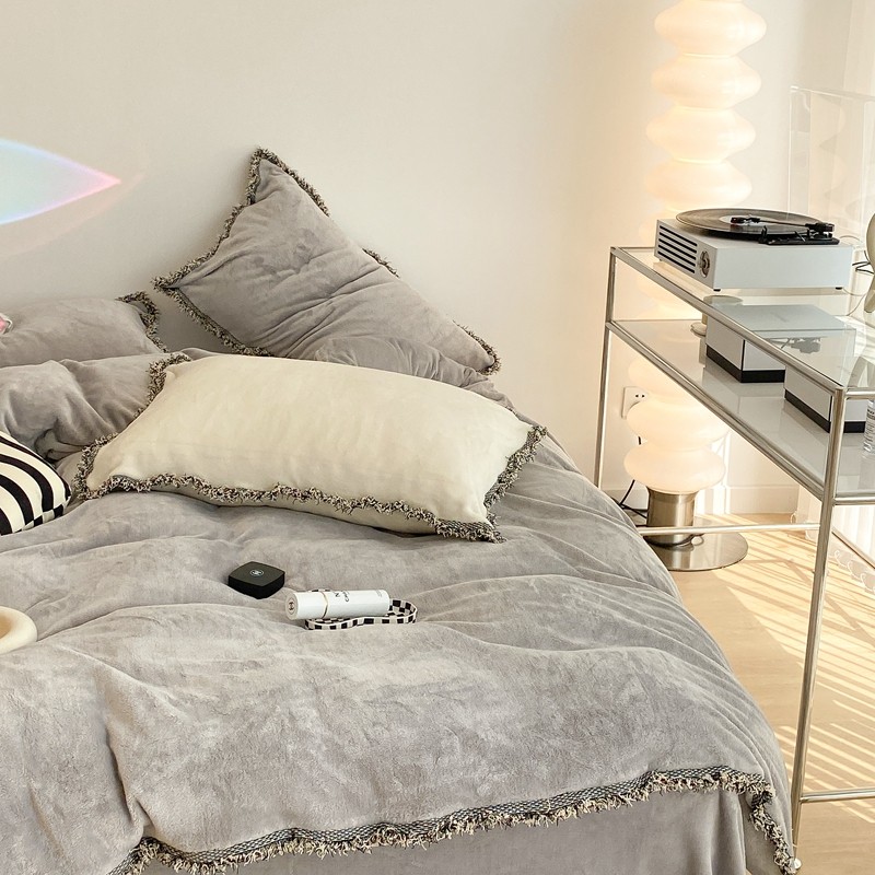 昔可家纺 2021新款小香香风牛奶绒四件套 小香气质灰