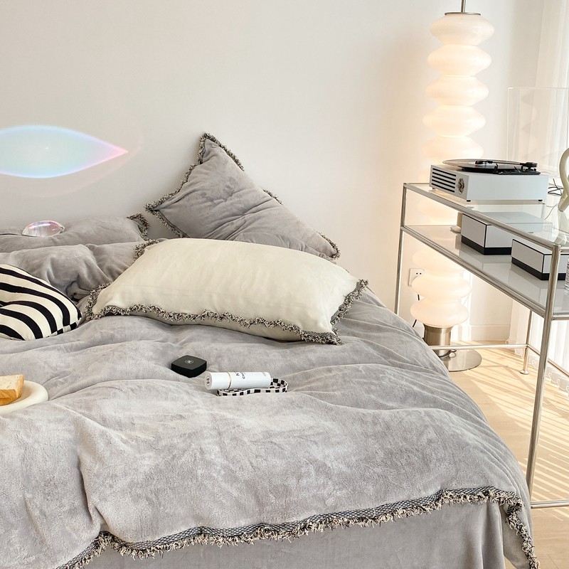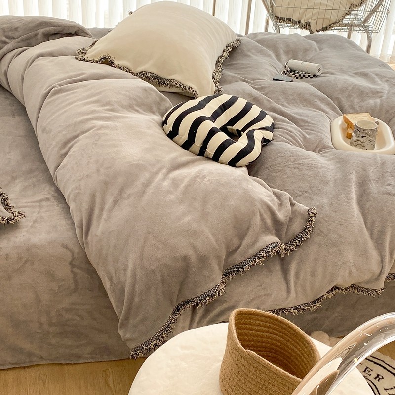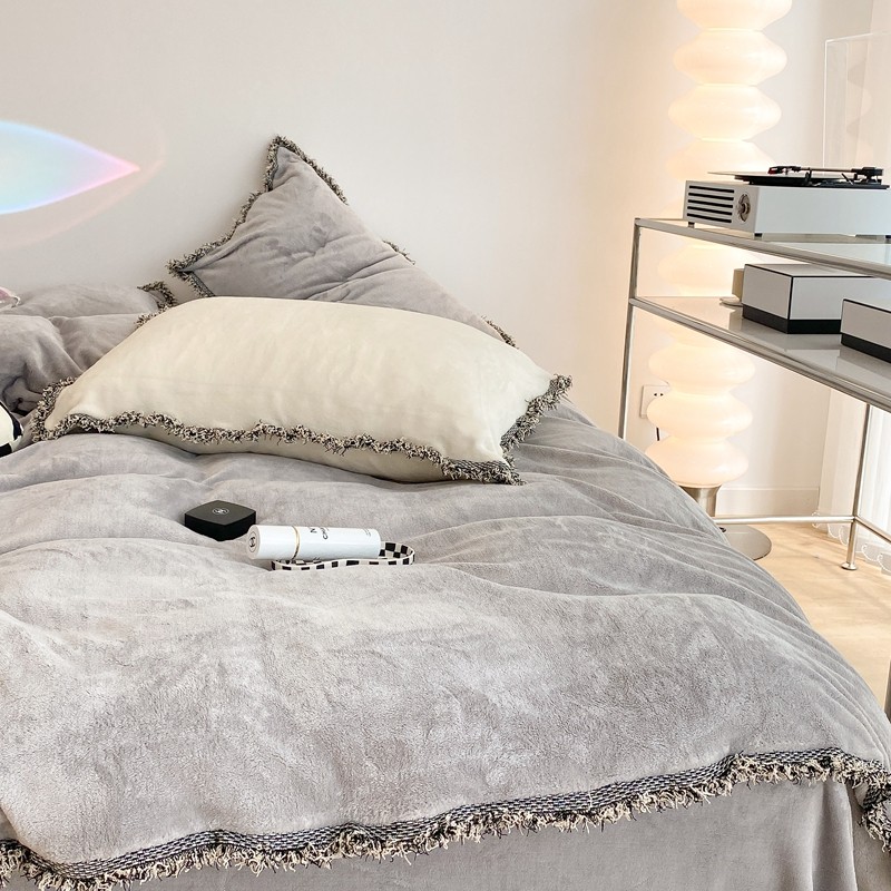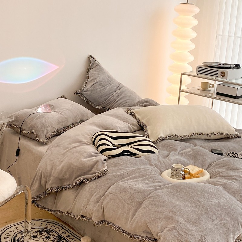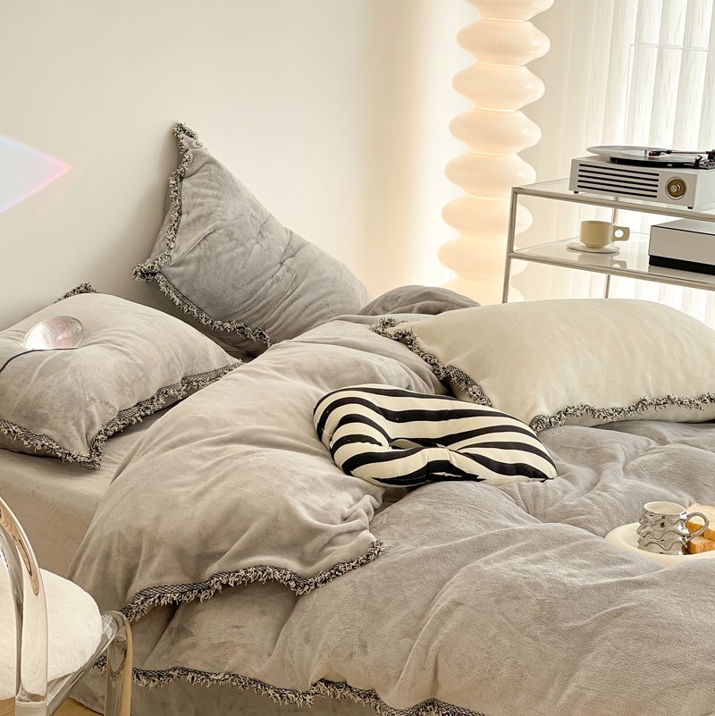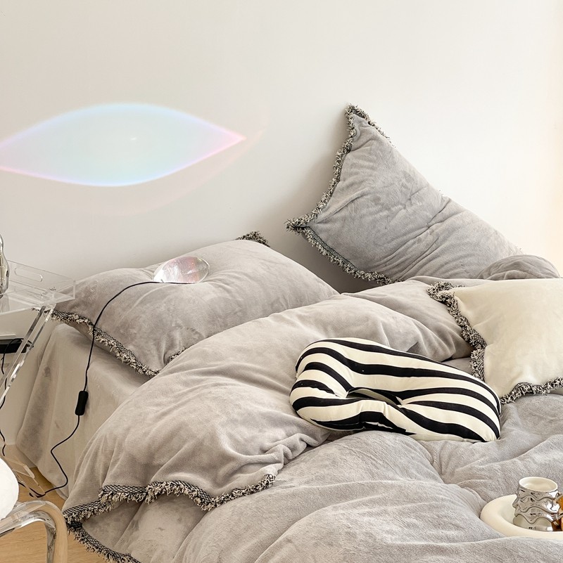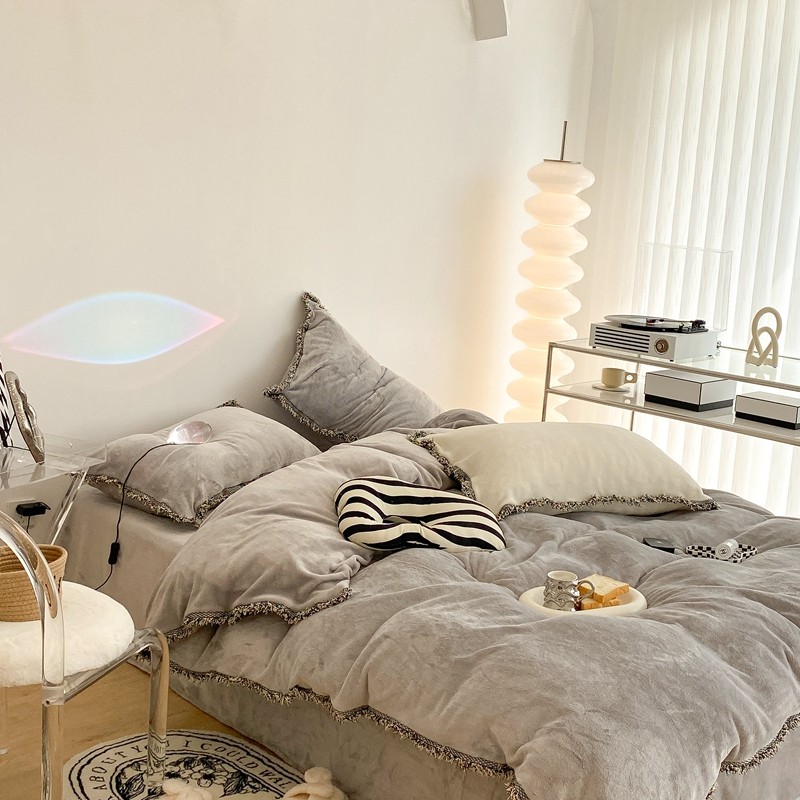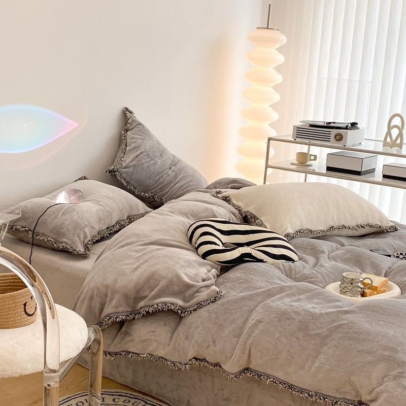 昔可家纺 2021新款小香香风牛奶绒四件套 小香气质灰