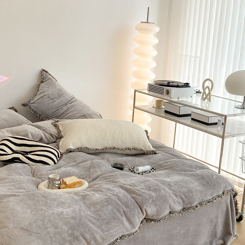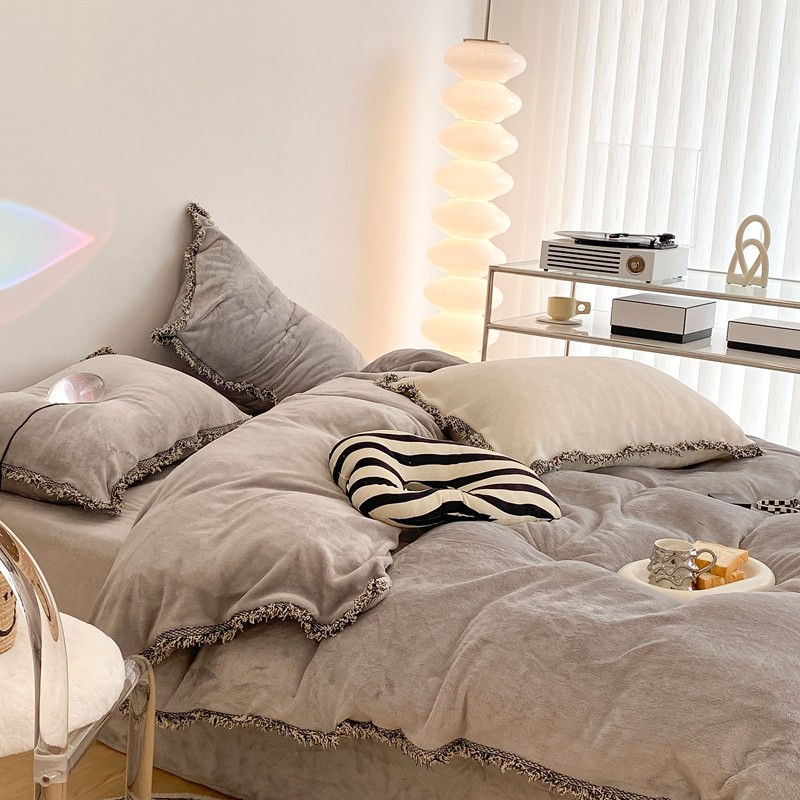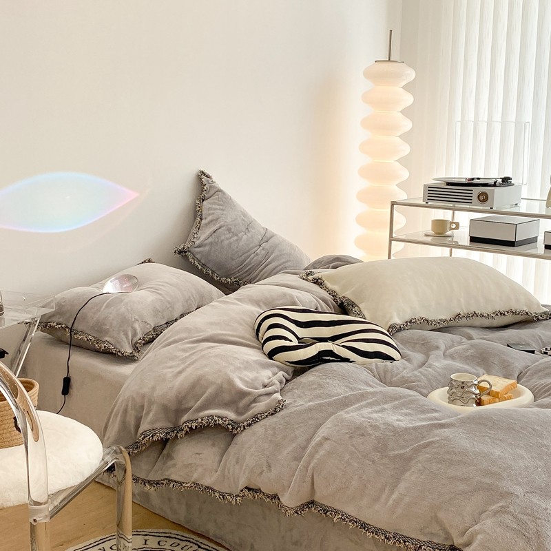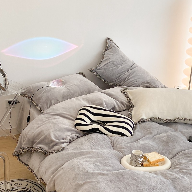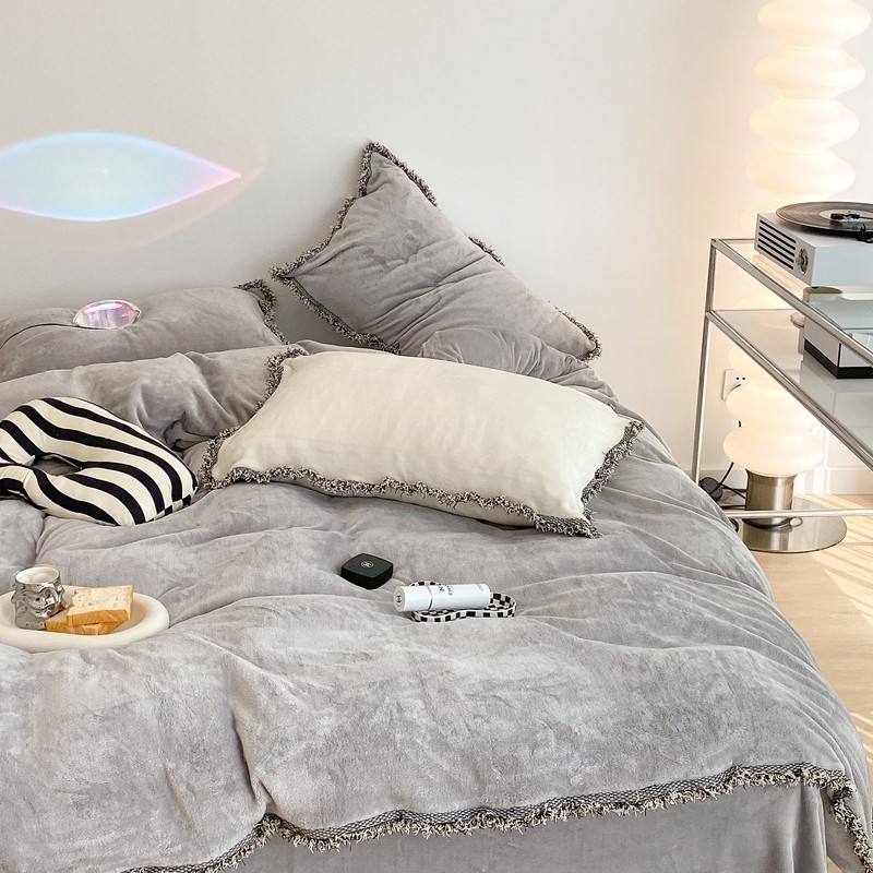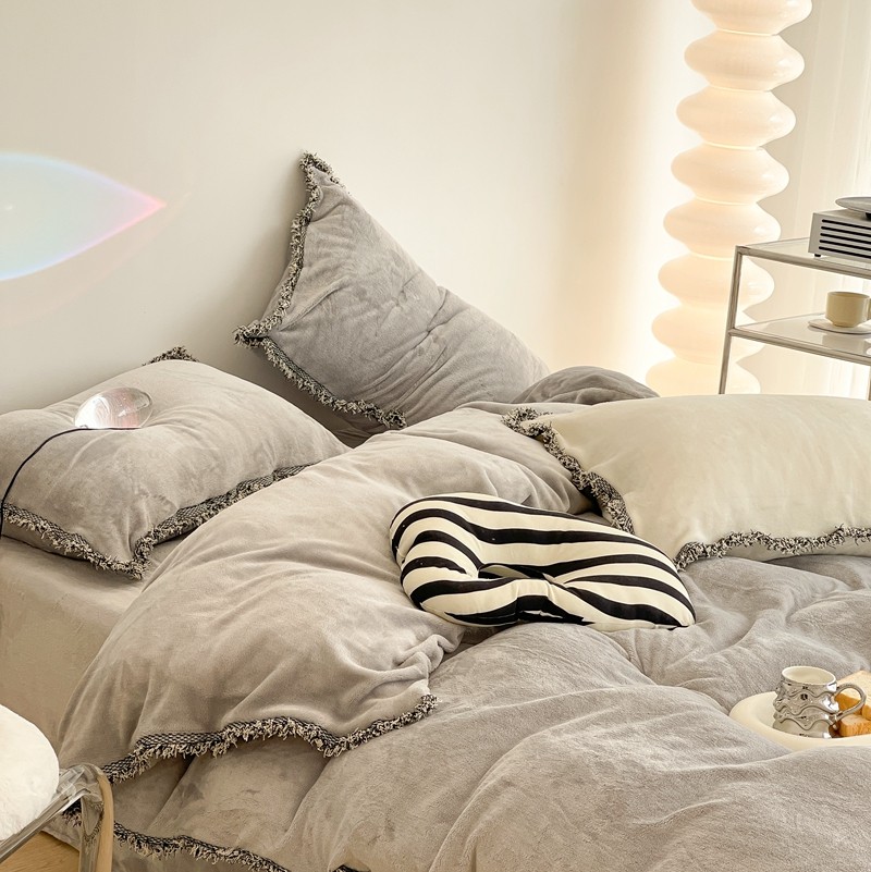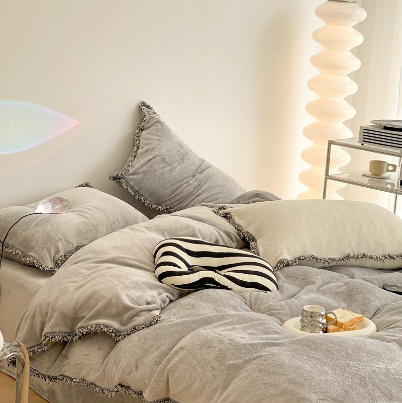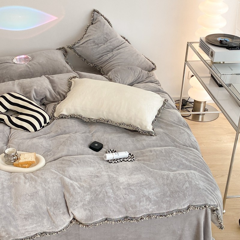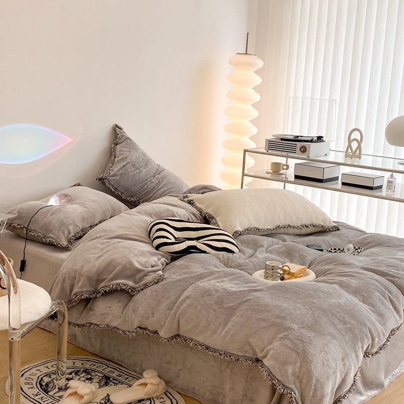 昔可家纺 2021新款小香香风牛奶绒四件套 小香气质灰