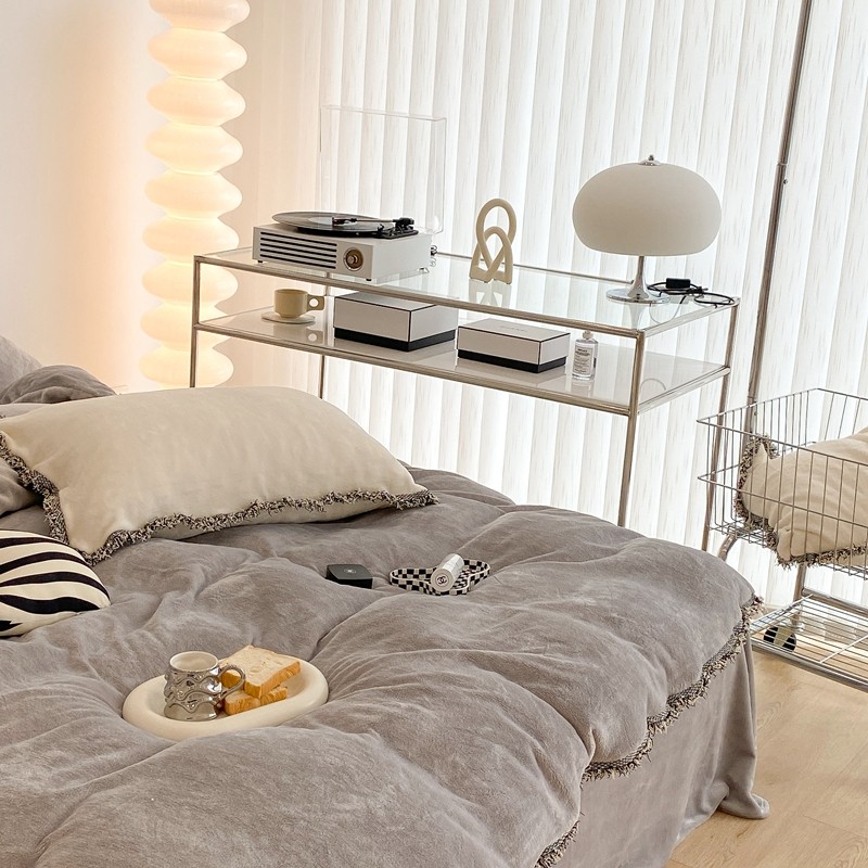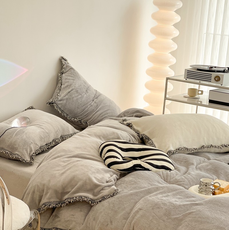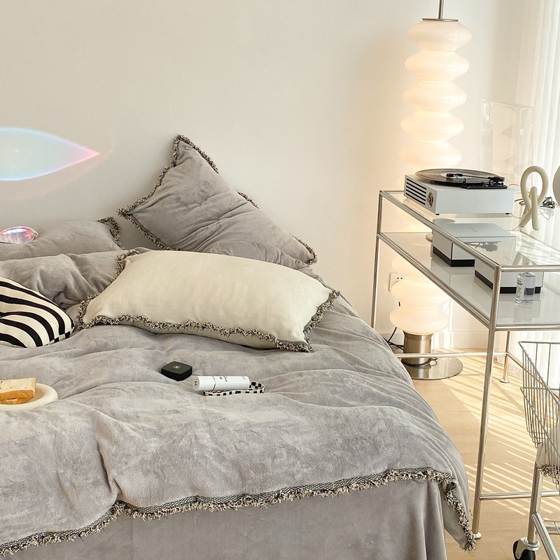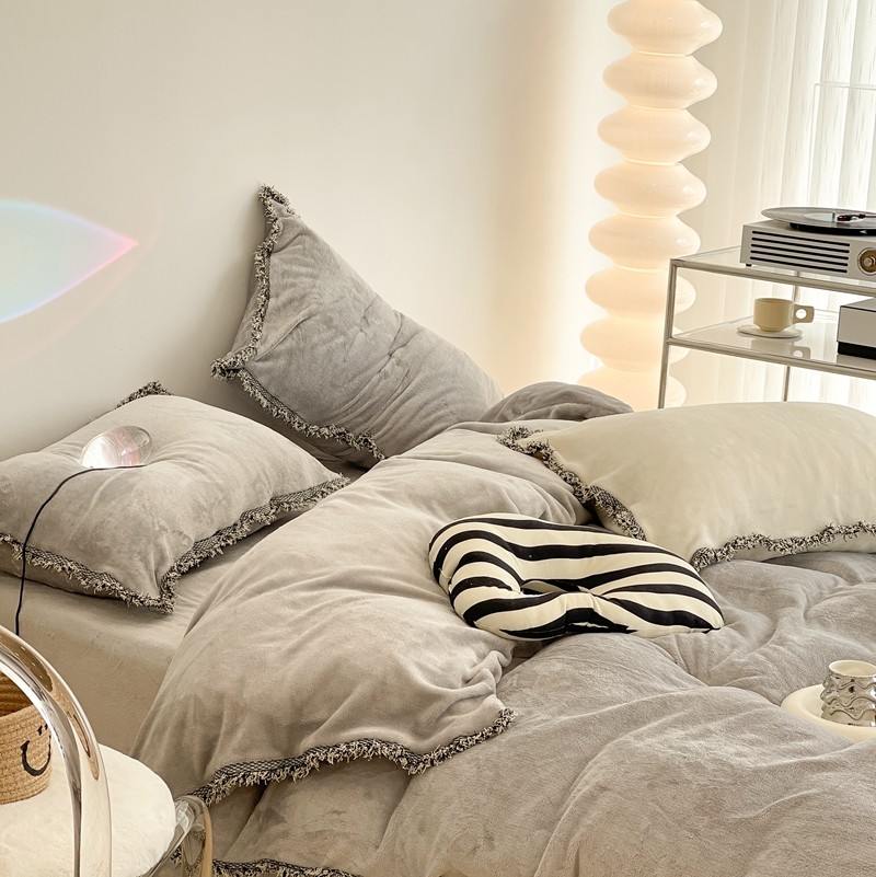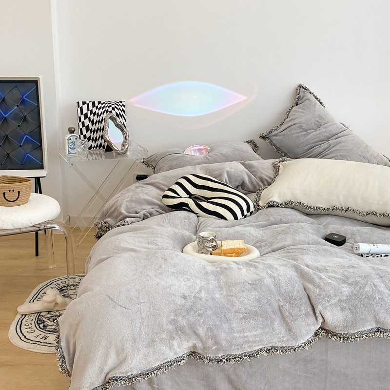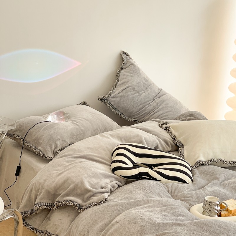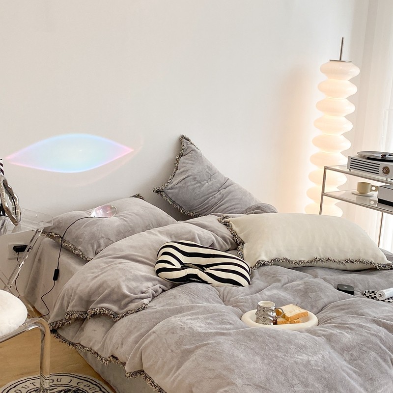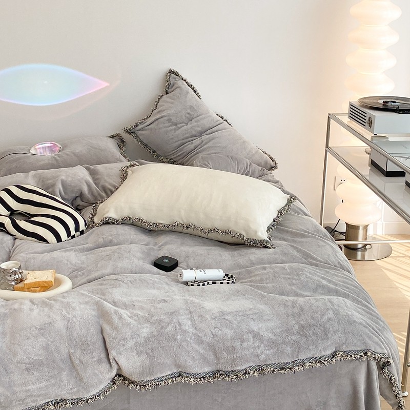 昔可家纺 2021新款小香香风牛奶绒四件套 小香气质灰