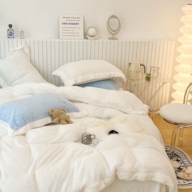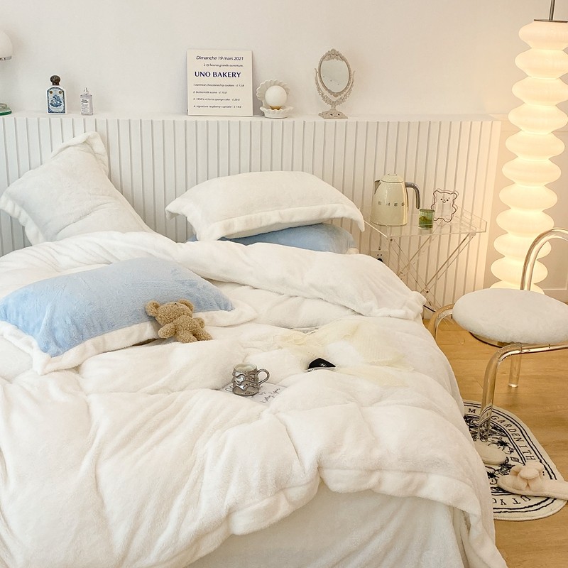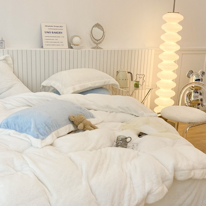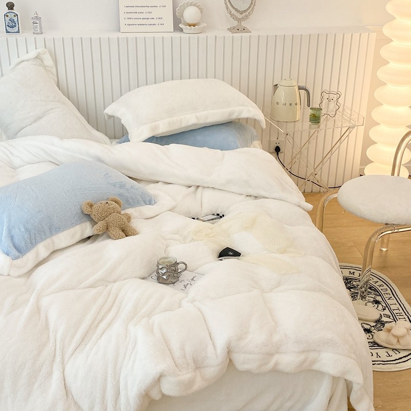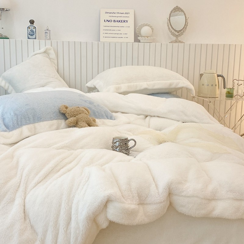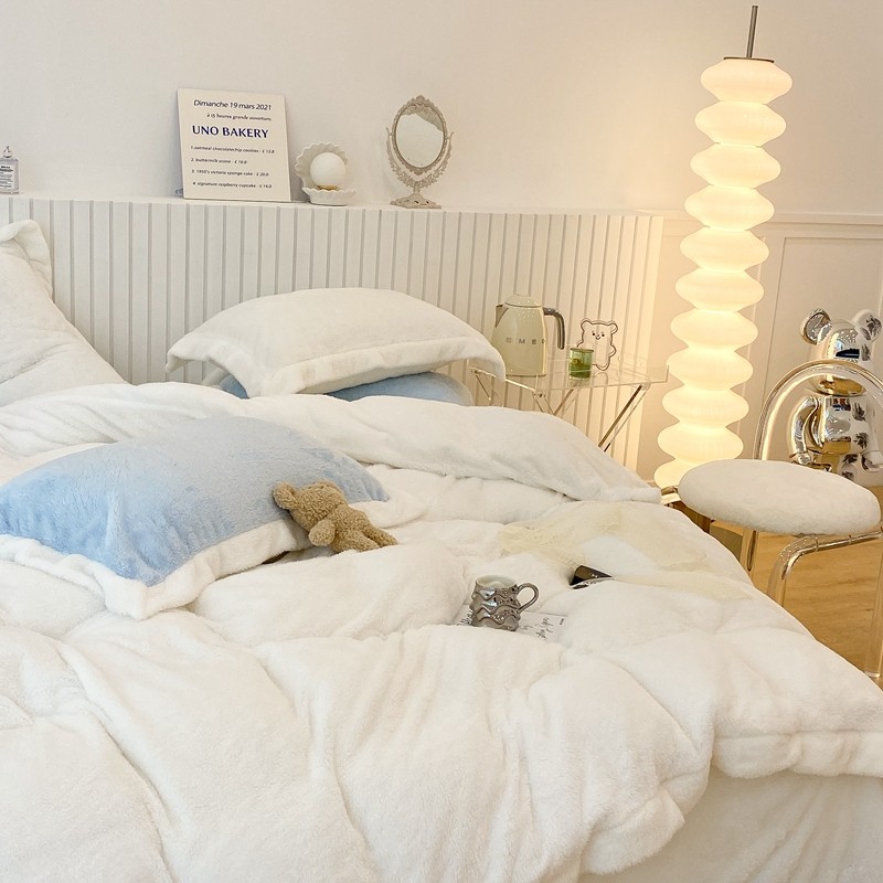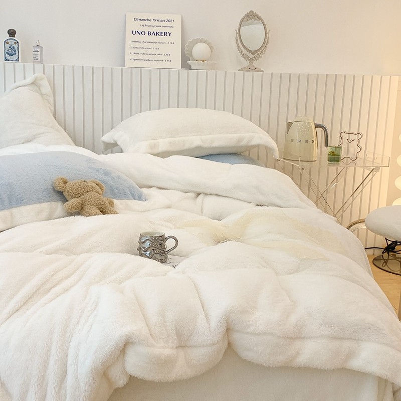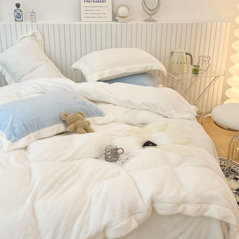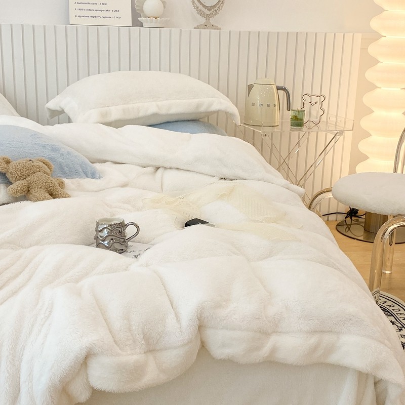 商品名称:昔可家纺 2021新款泰迪绒马卡龙色四件套 奶香白