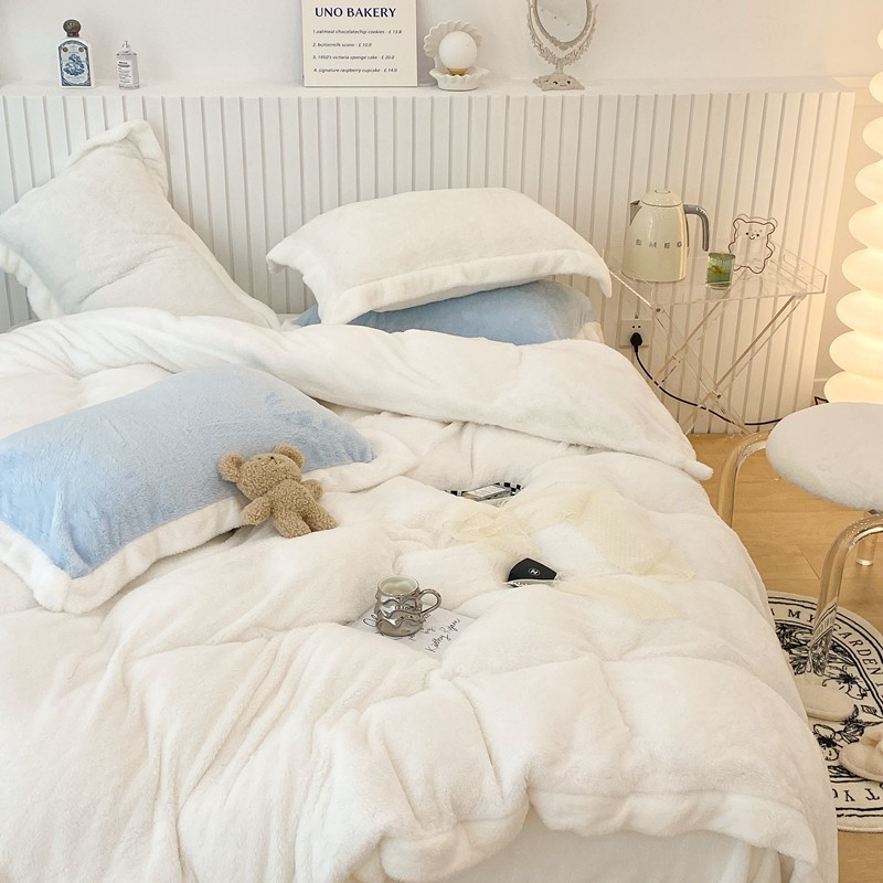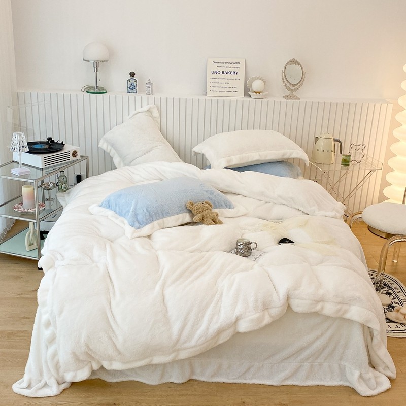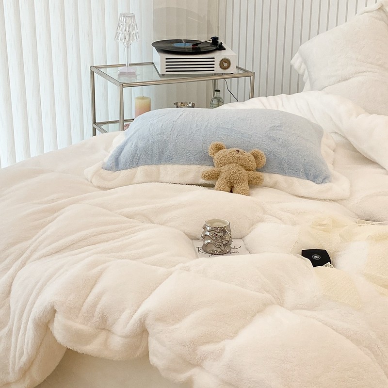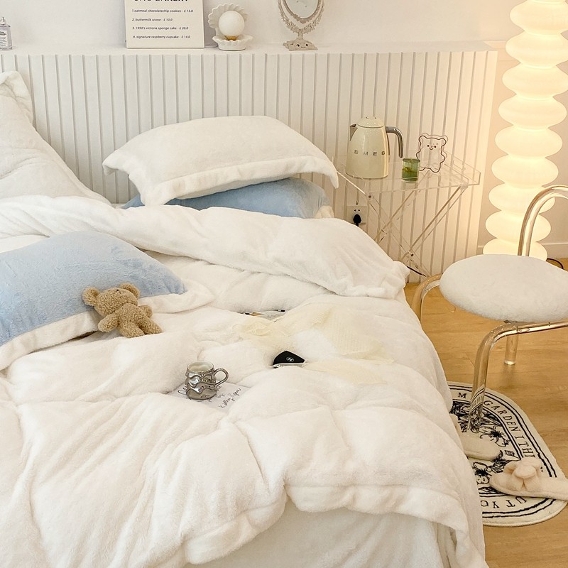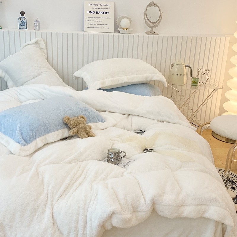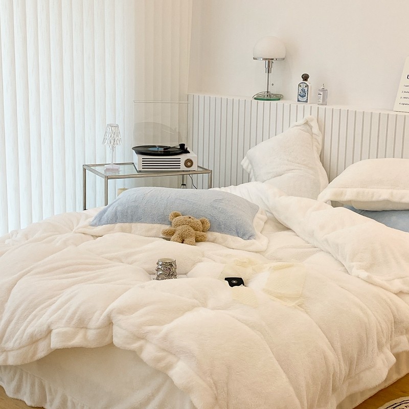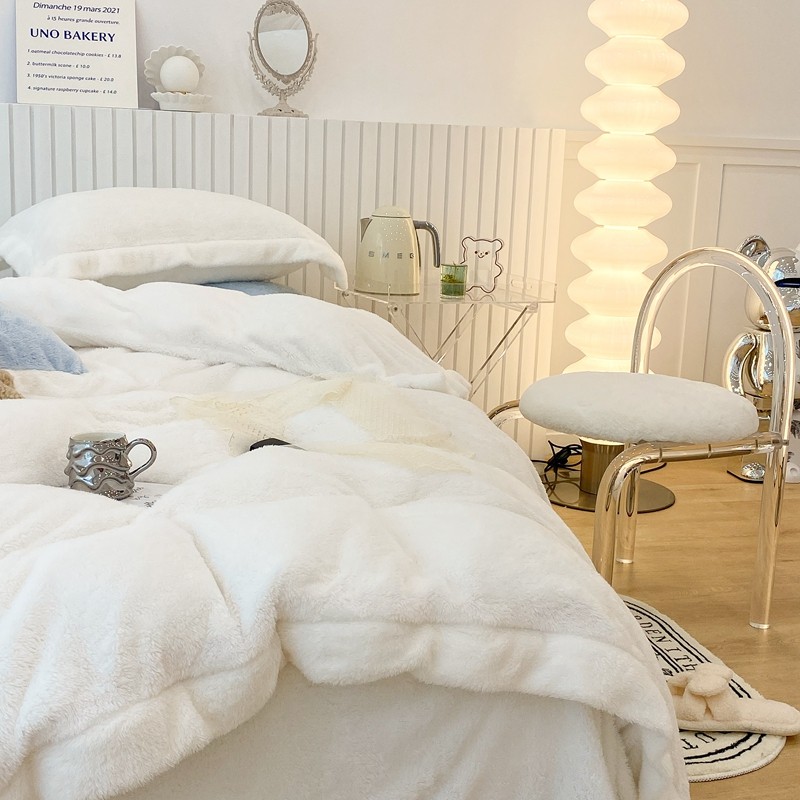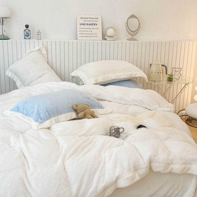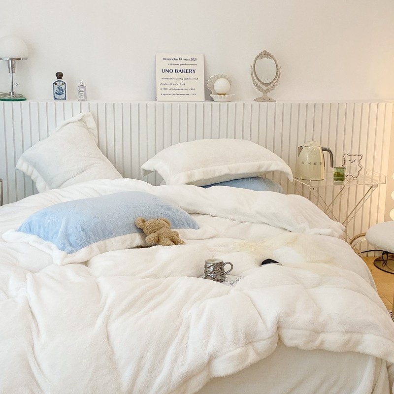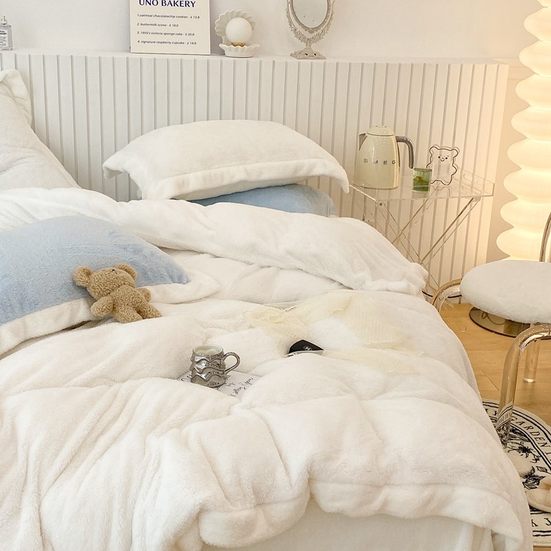 商品名称:昔可家纺 2021新款泰迪绒马卡龙色四件套 奶香白