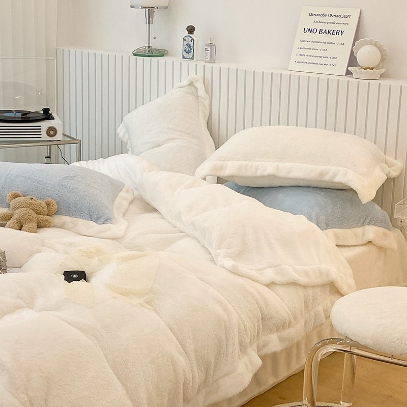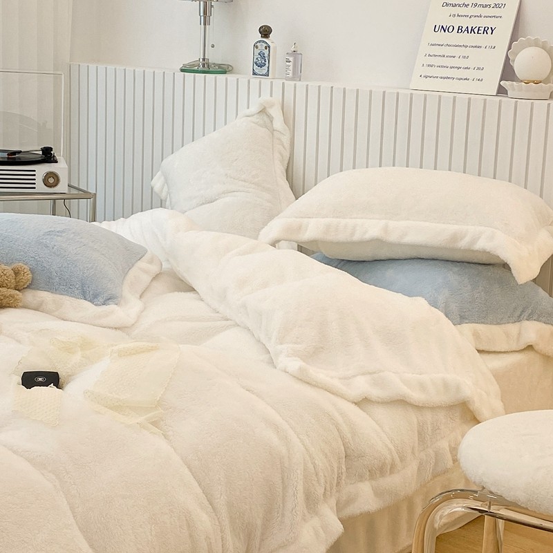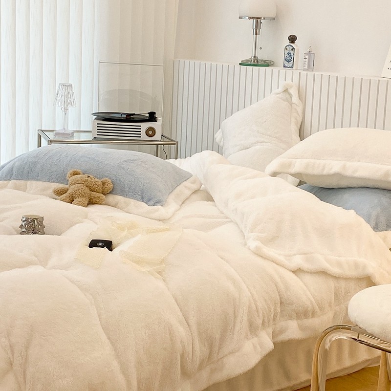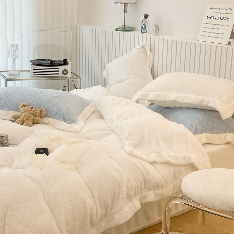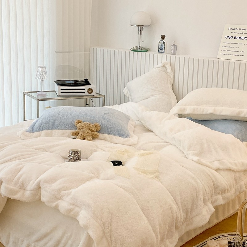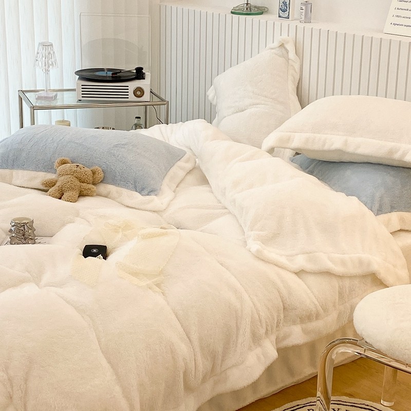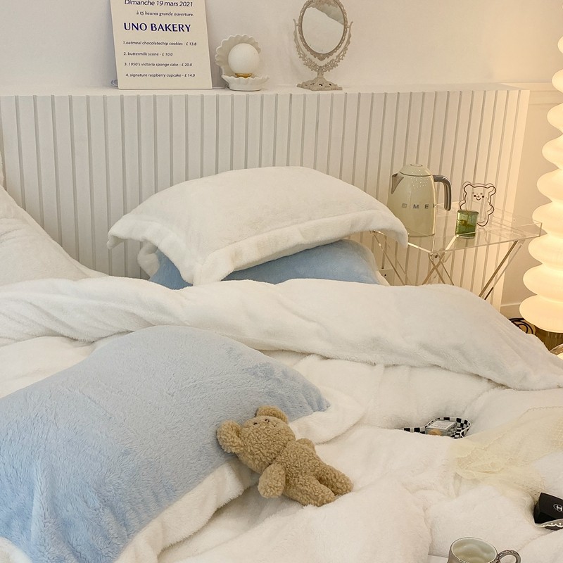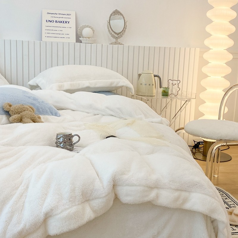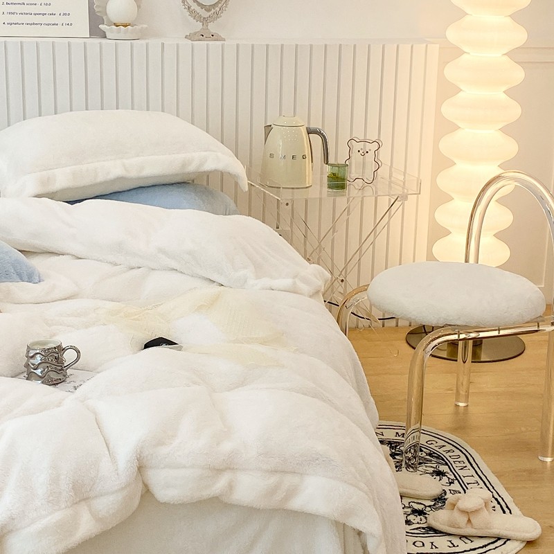 商品名称:昔可家纺 2021新款泰迪绒马卡龙色四件套 奶香白