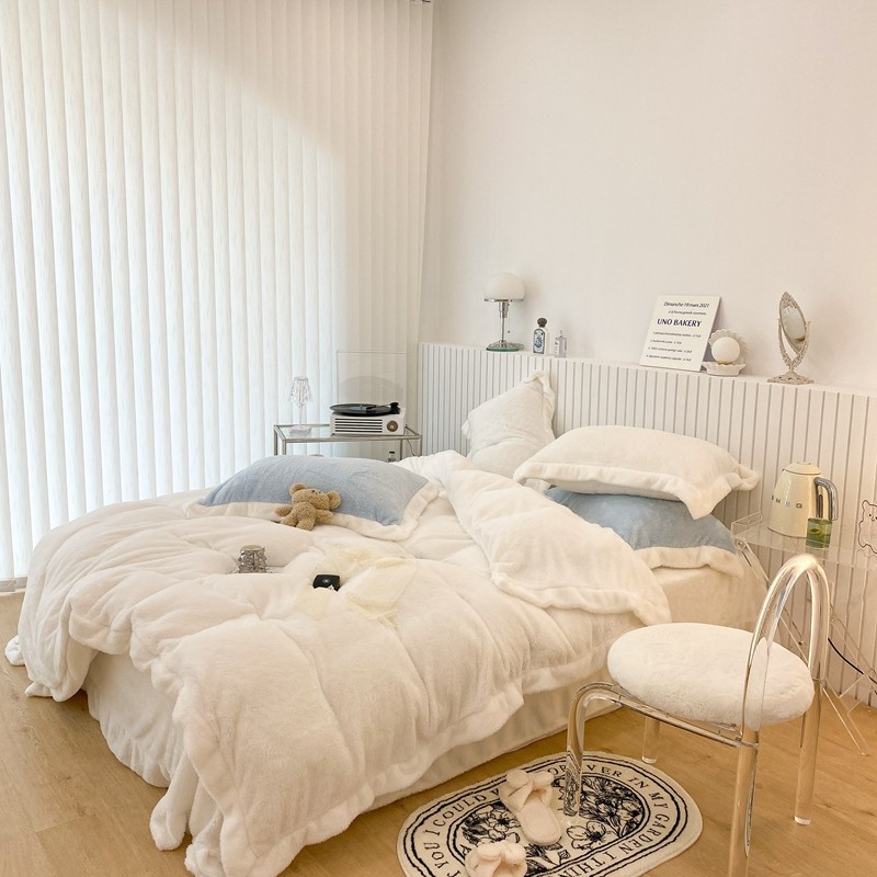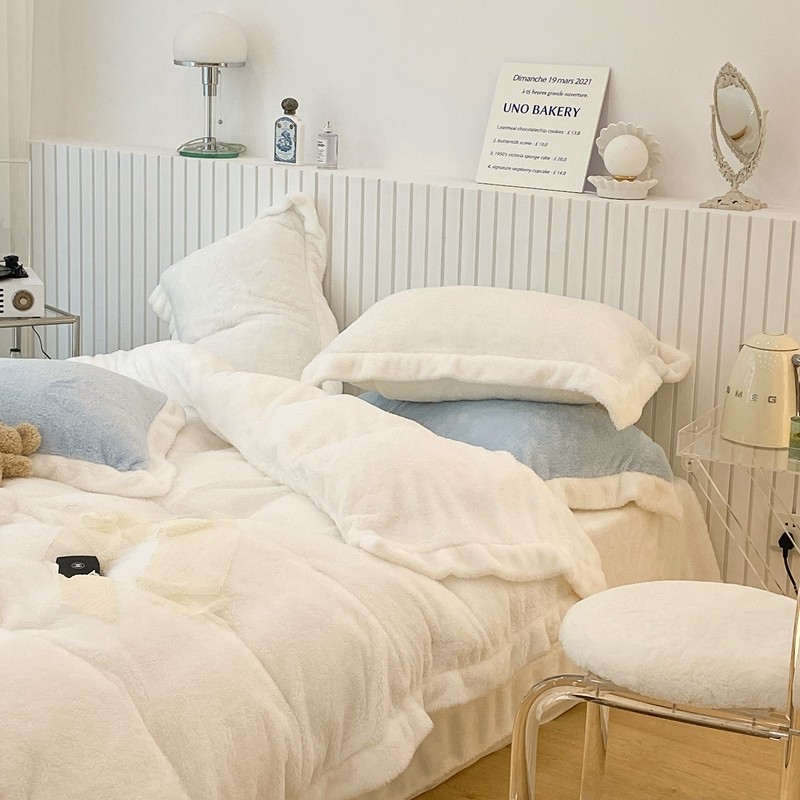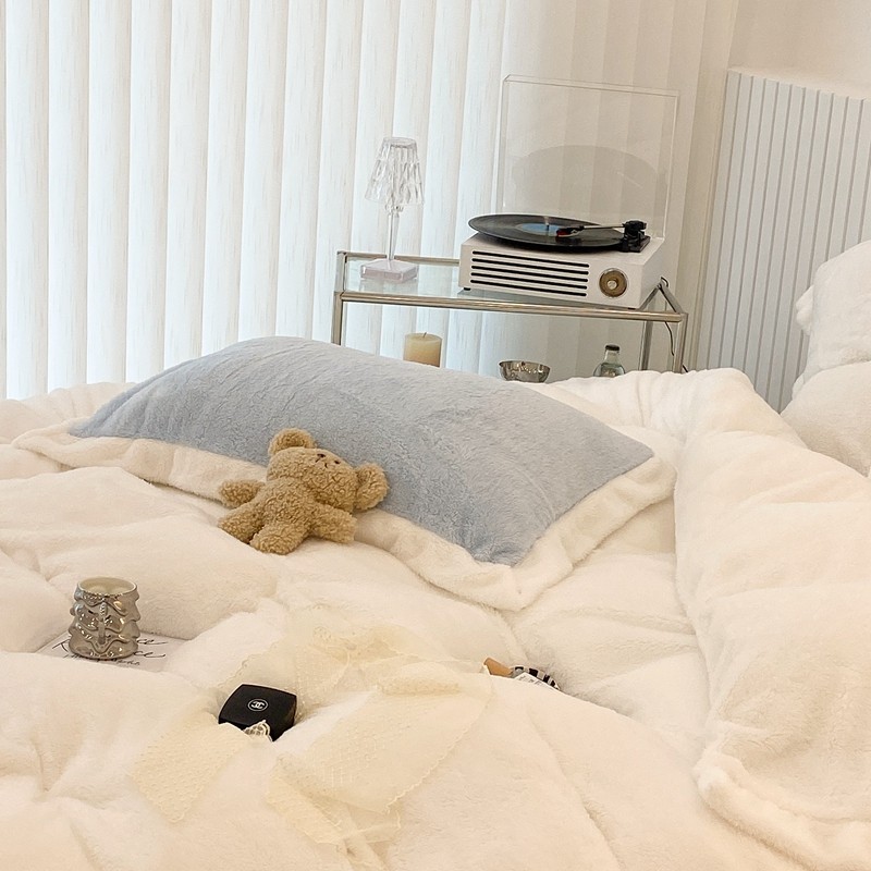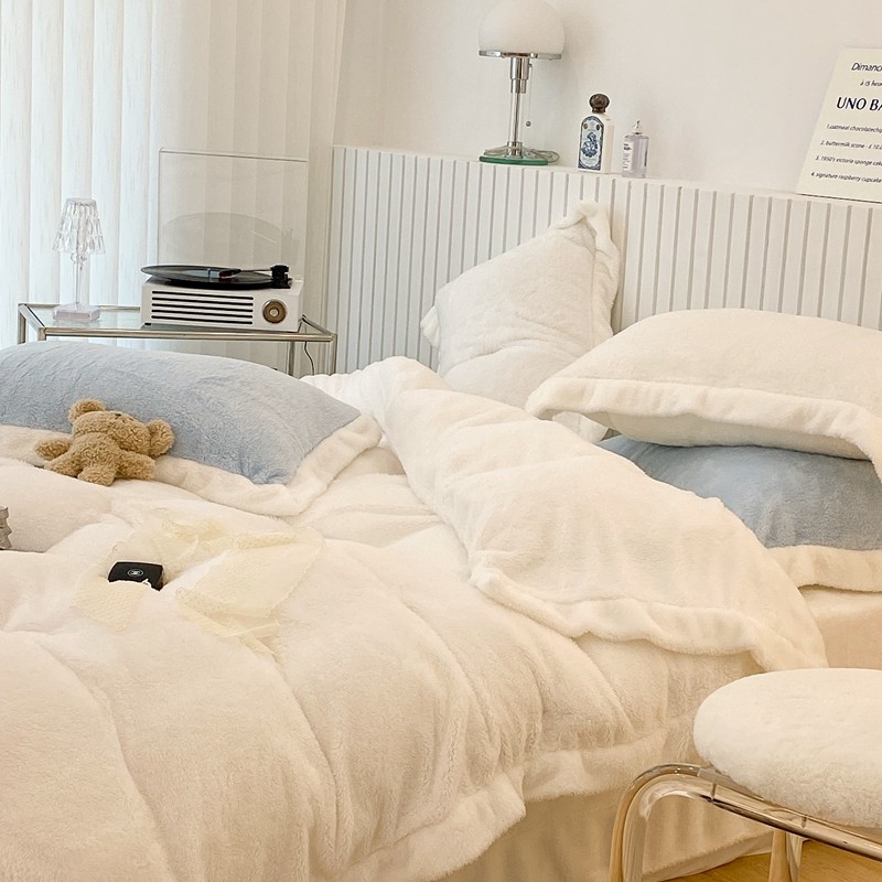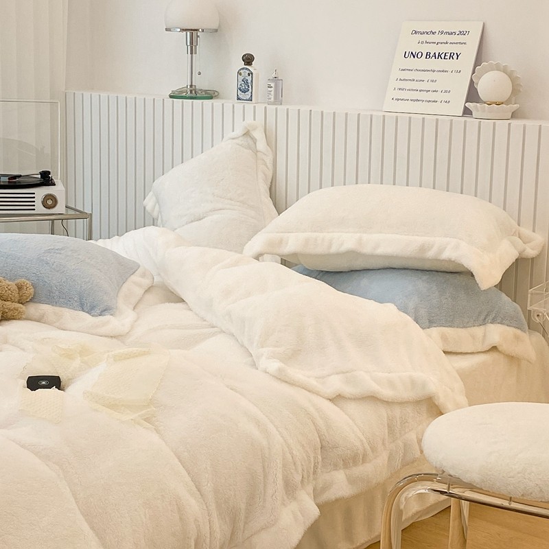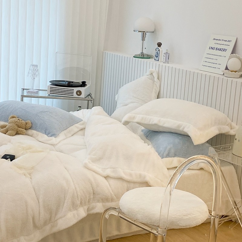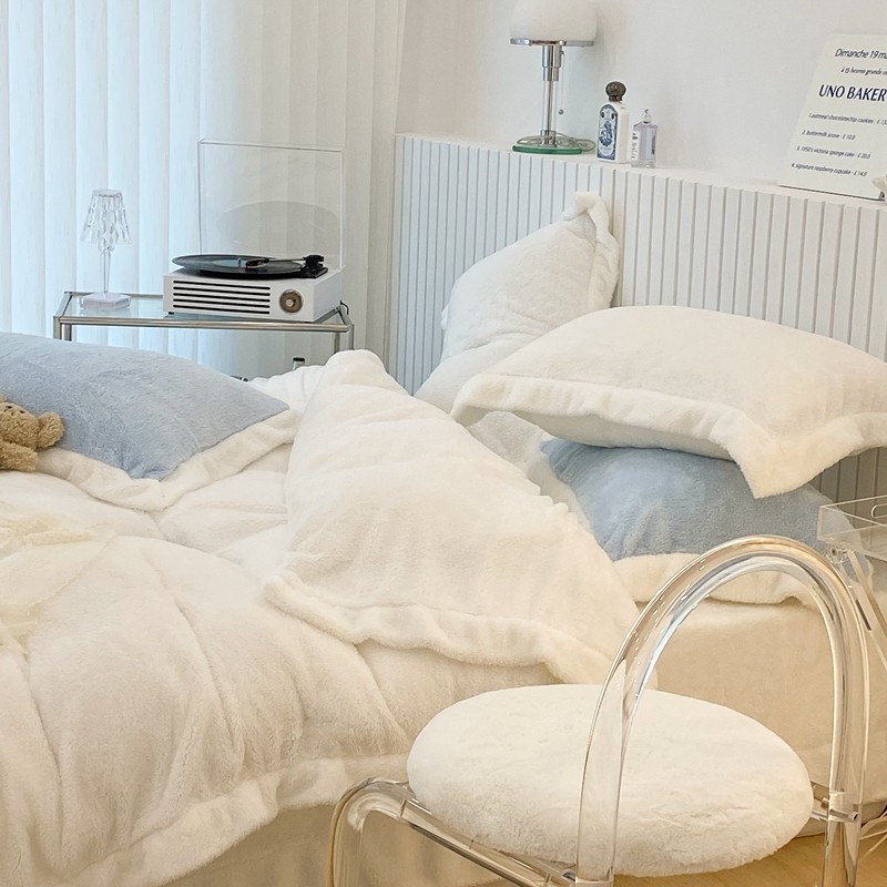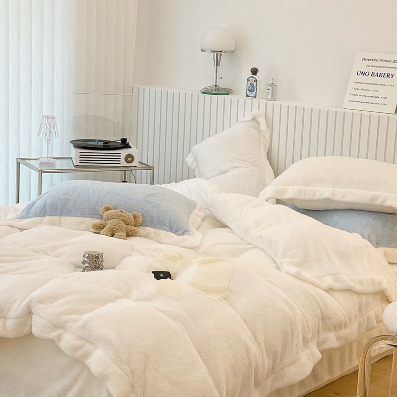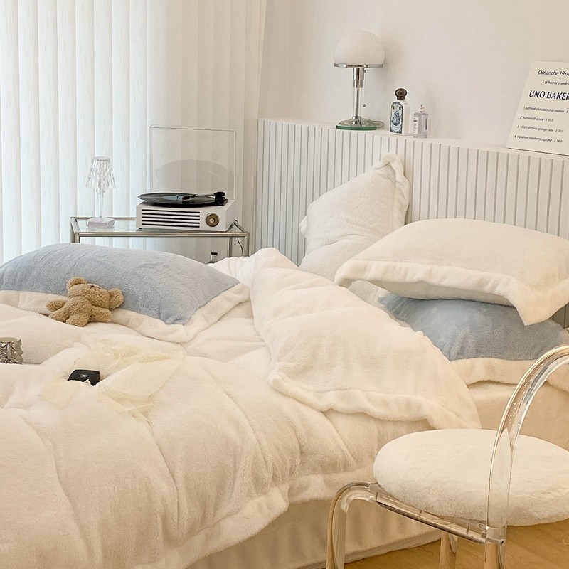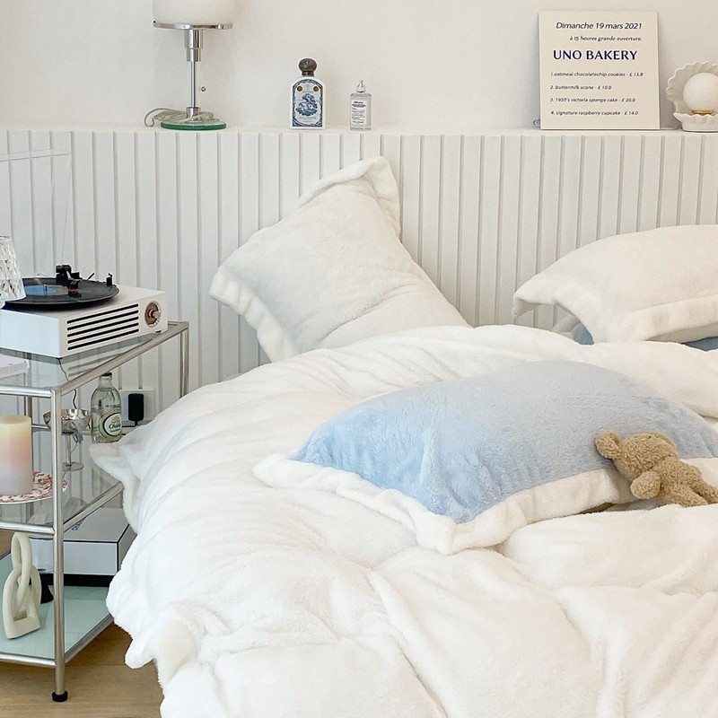 商品名称:昔可家纺 2021新款泰迪绒马卡龙色四件套 奶香白