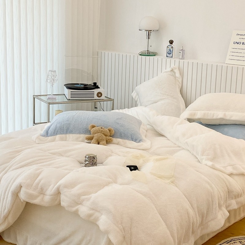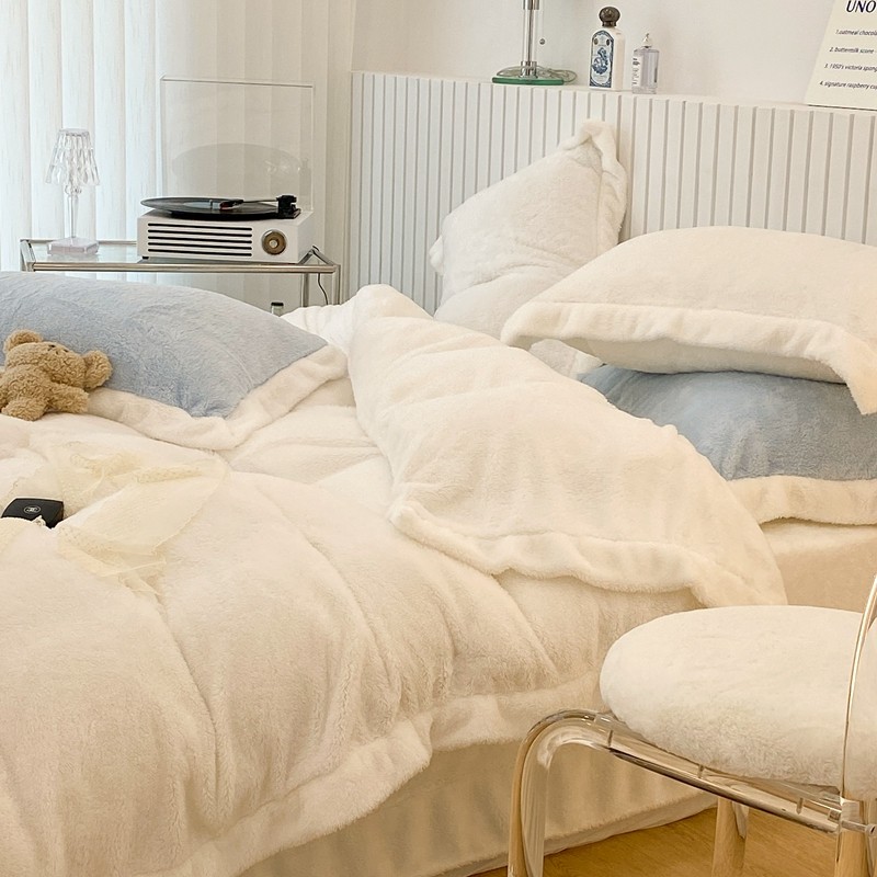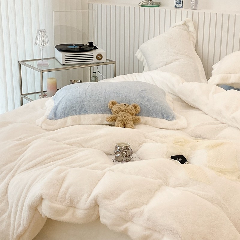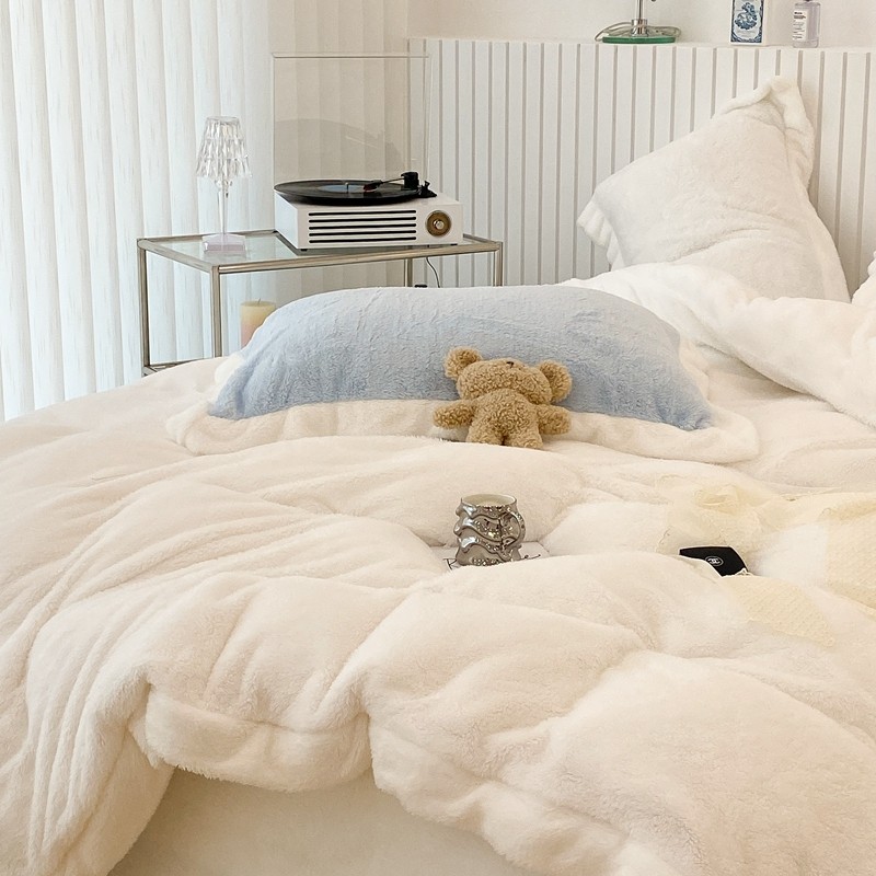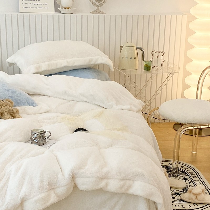 昔可家纺 2021新款泰迪绒马卡龙色四件套 奶香白