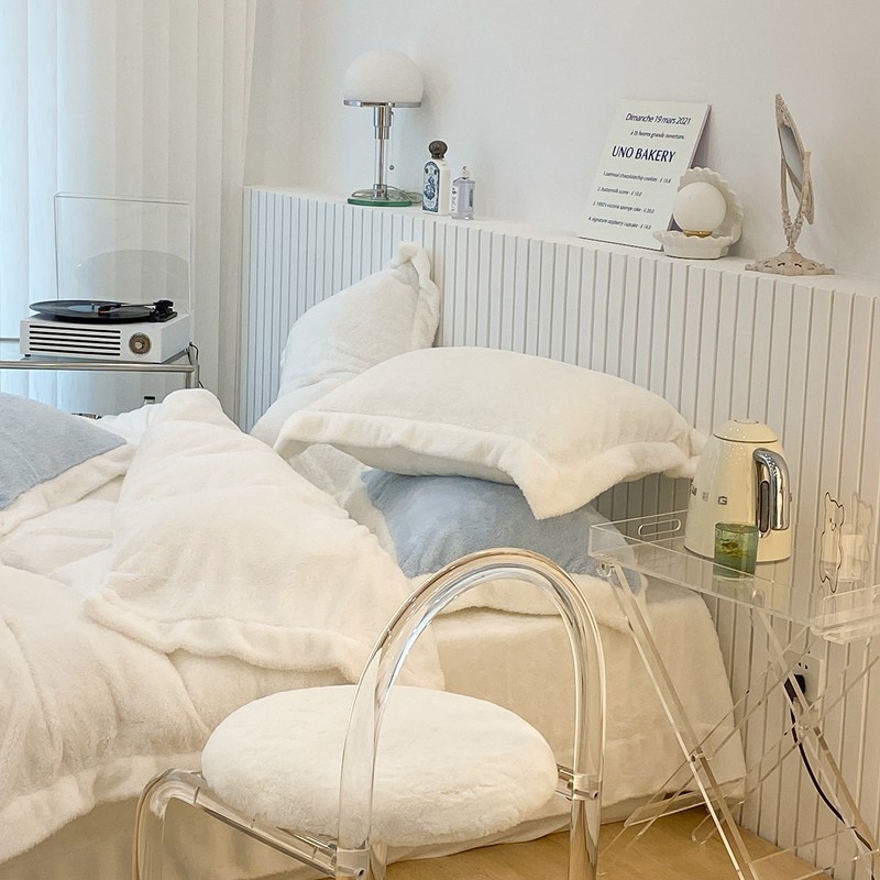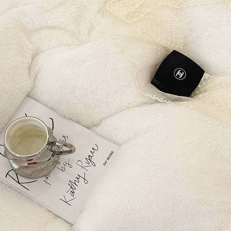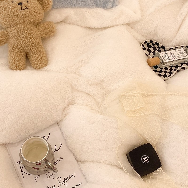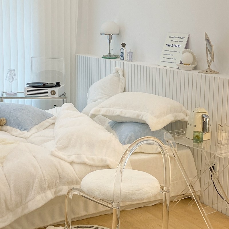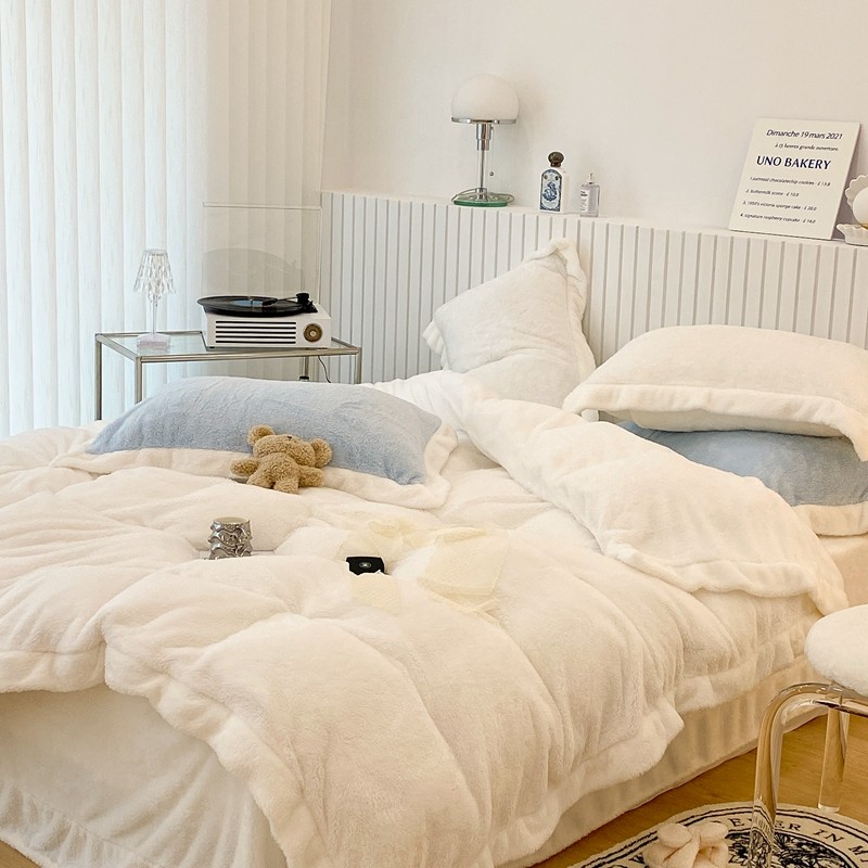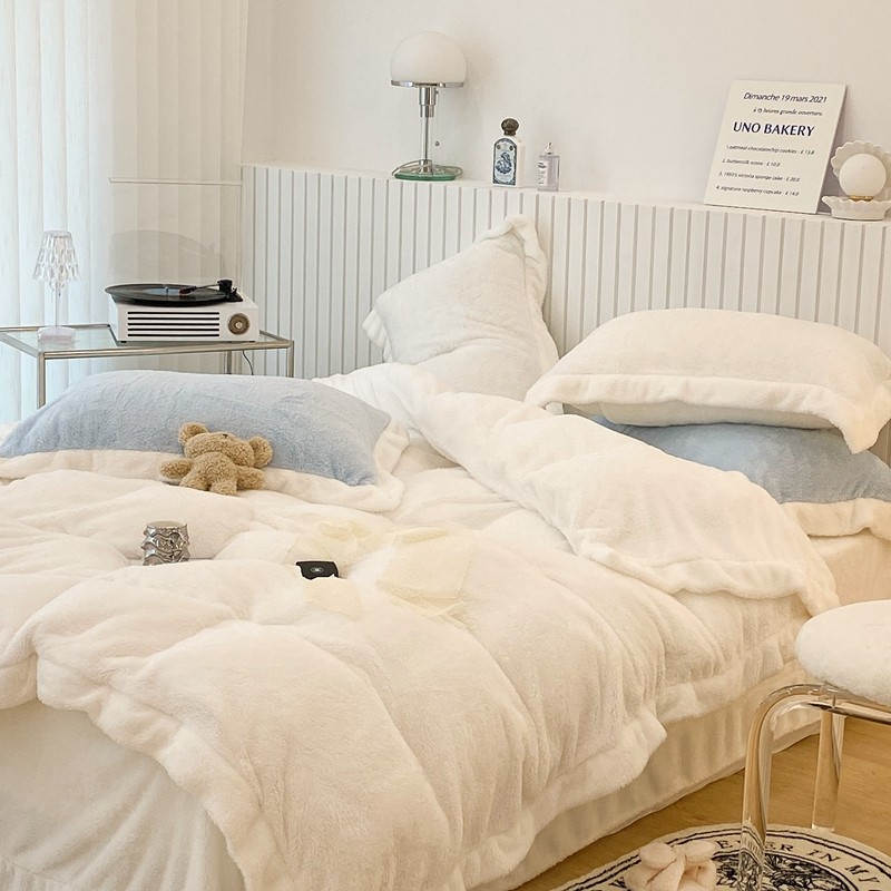 昔可家纺 2021新款泰迪绒马卡龙色四件套 奶香白