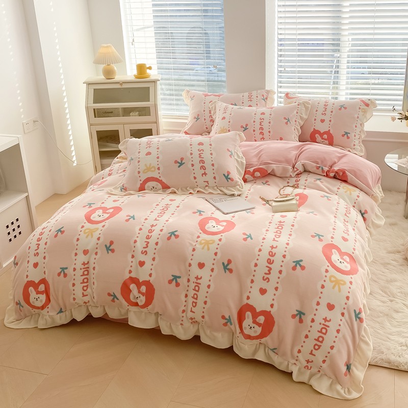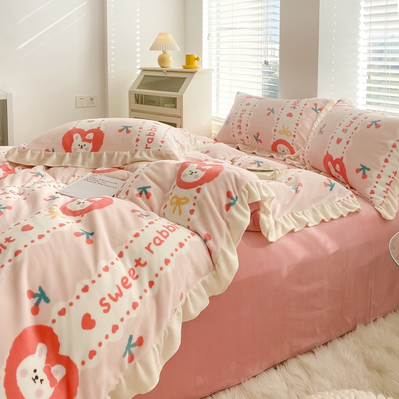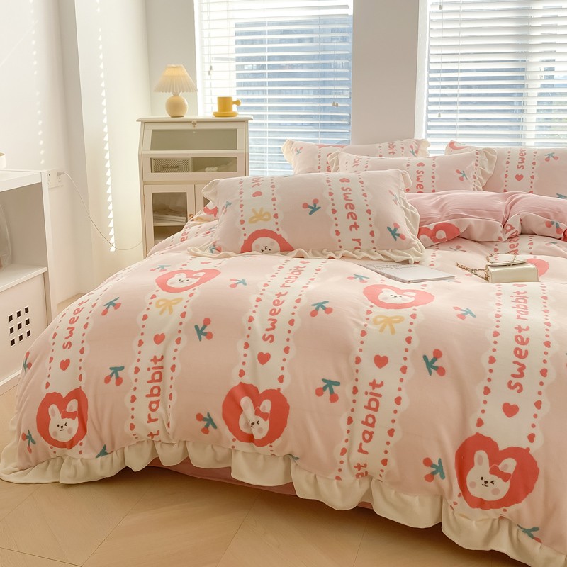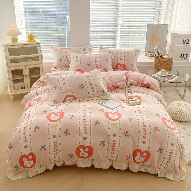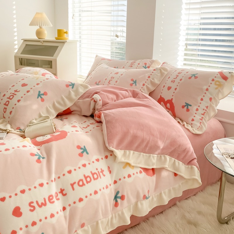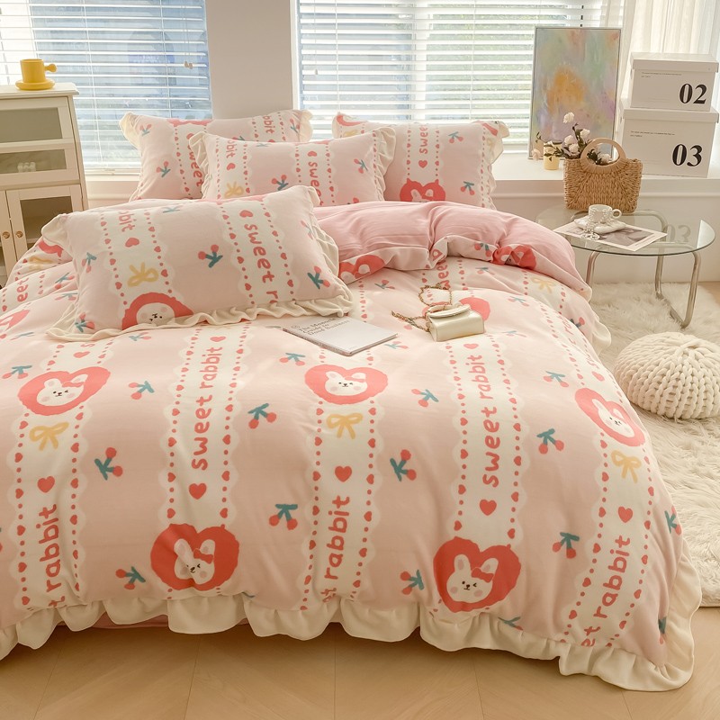 米莱家纺 2021新款韩版牛奶绒花边四件套 菲菲兔