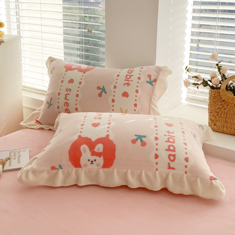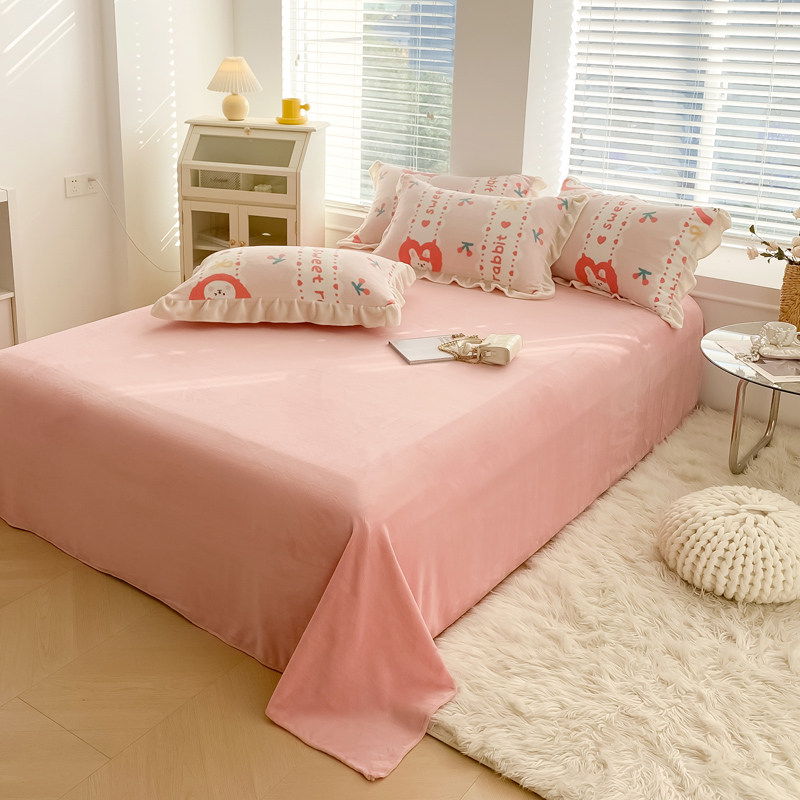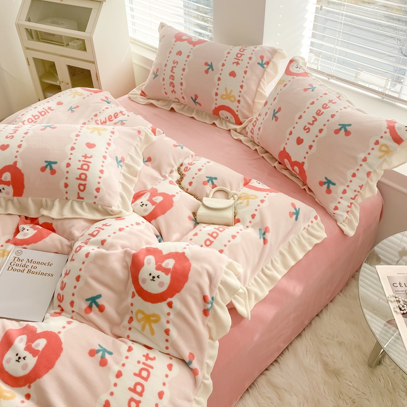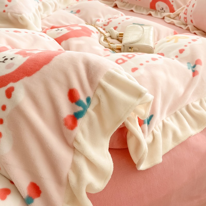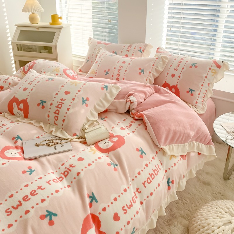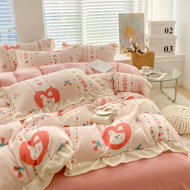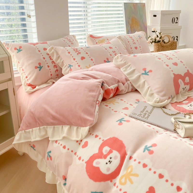 米莱家纺 2021新款韩版牛奶绒花边四件套 菲菲兔