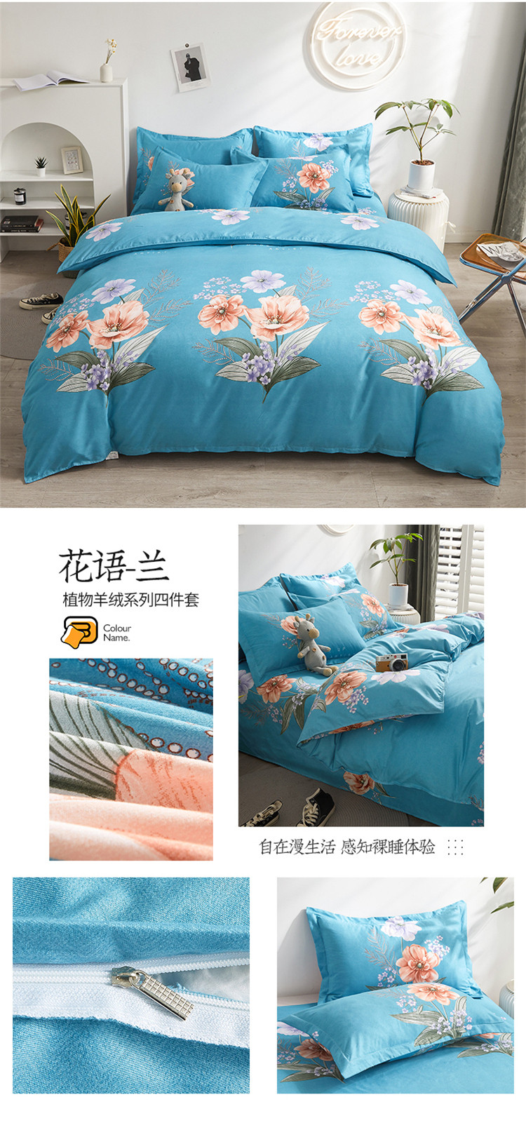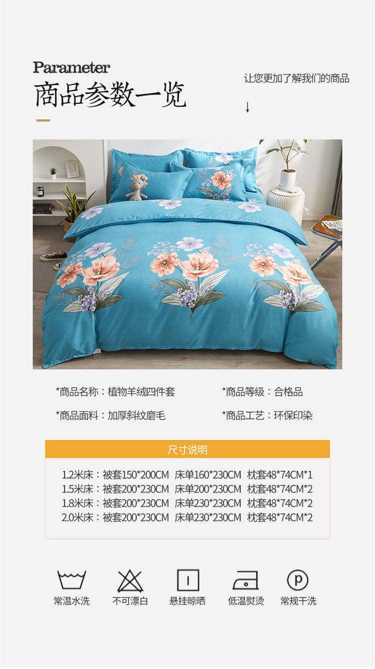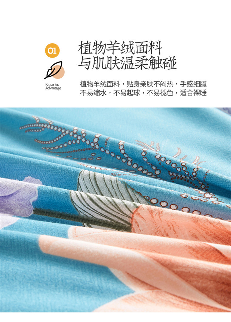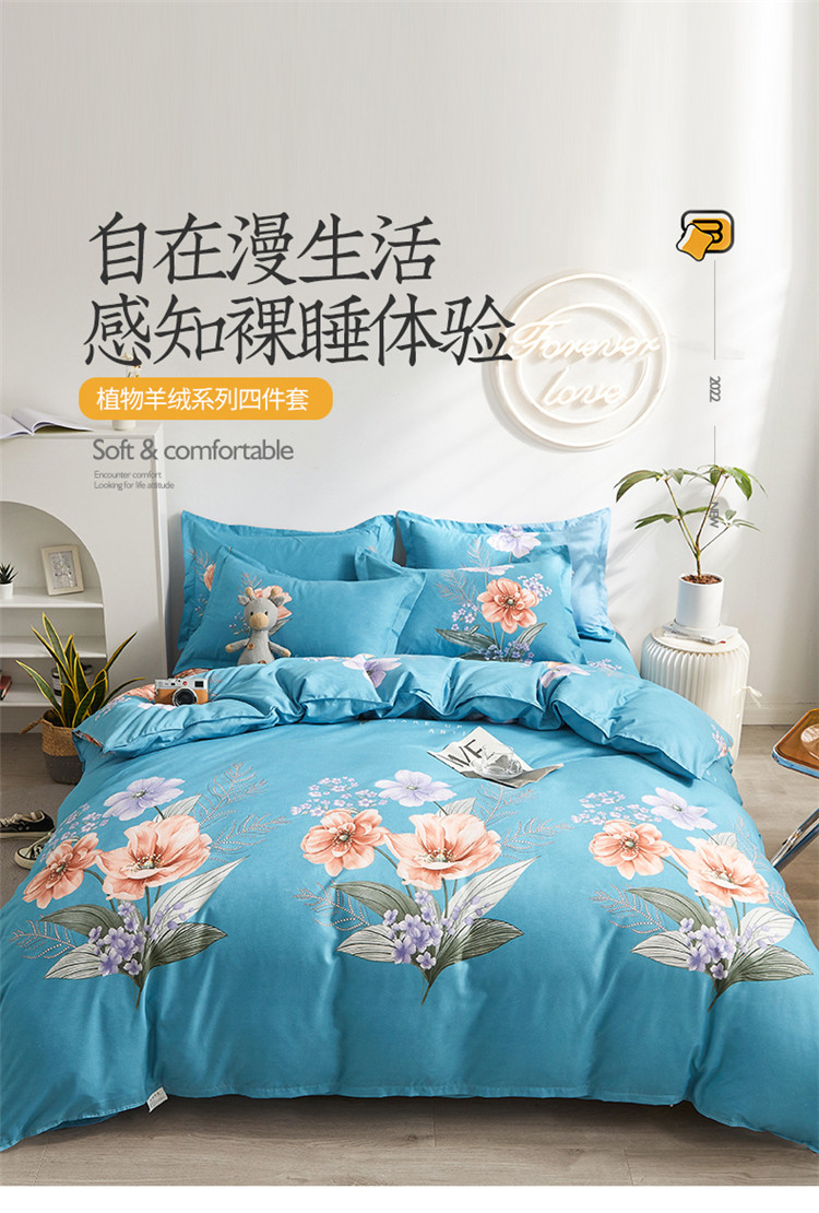 当前位置: 91家纺网 > 商品网购 > 床品套件 > 四件套 > 化纤普通四件套 > 优家居 2023新款植物羊绒四件套 花语-兰