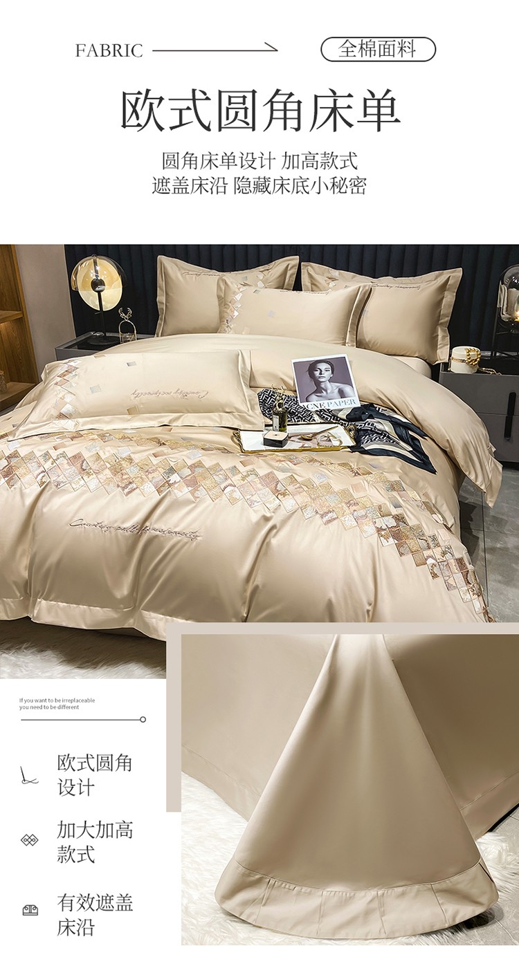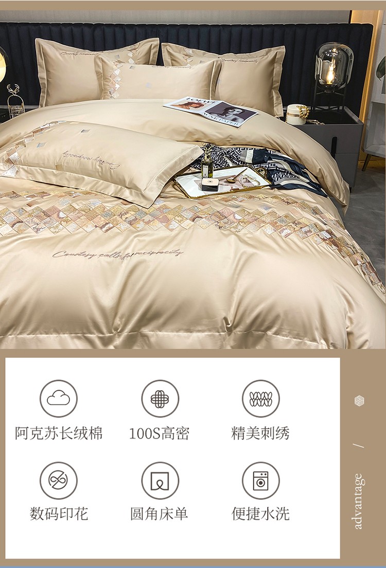 魅都 100阿克苏长绒棉刺绣轻奢风四件套 铂金爱马香槟金