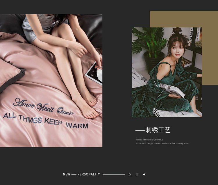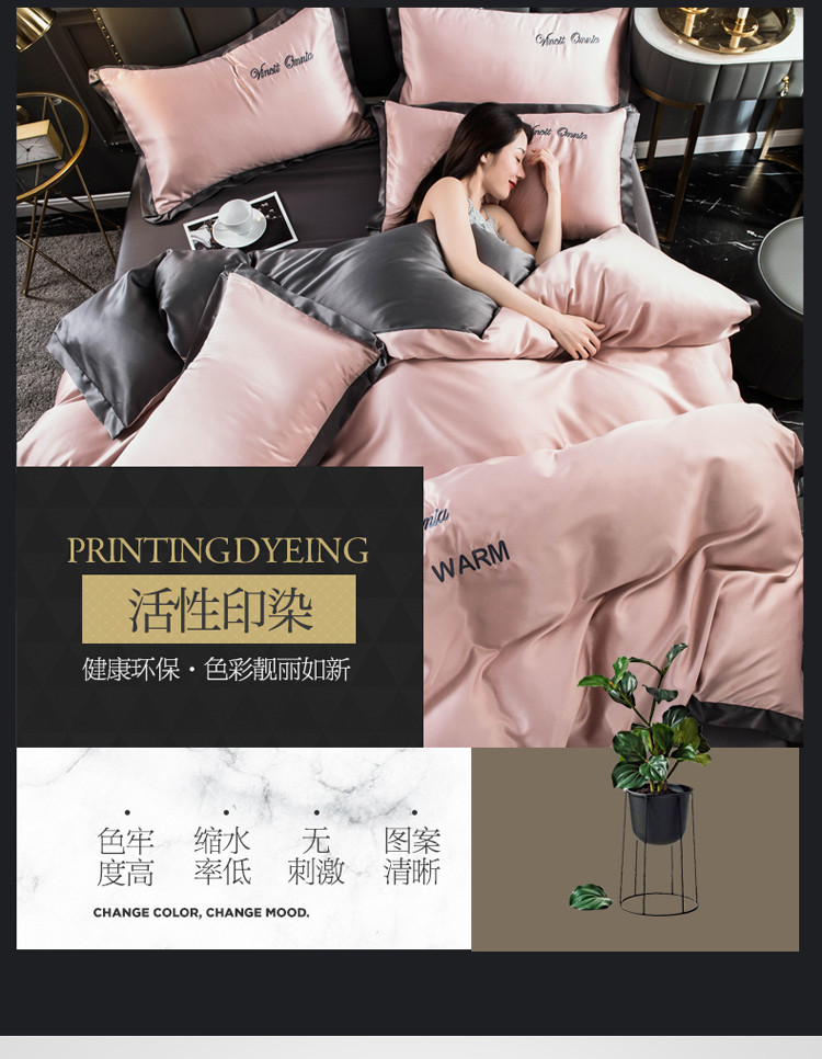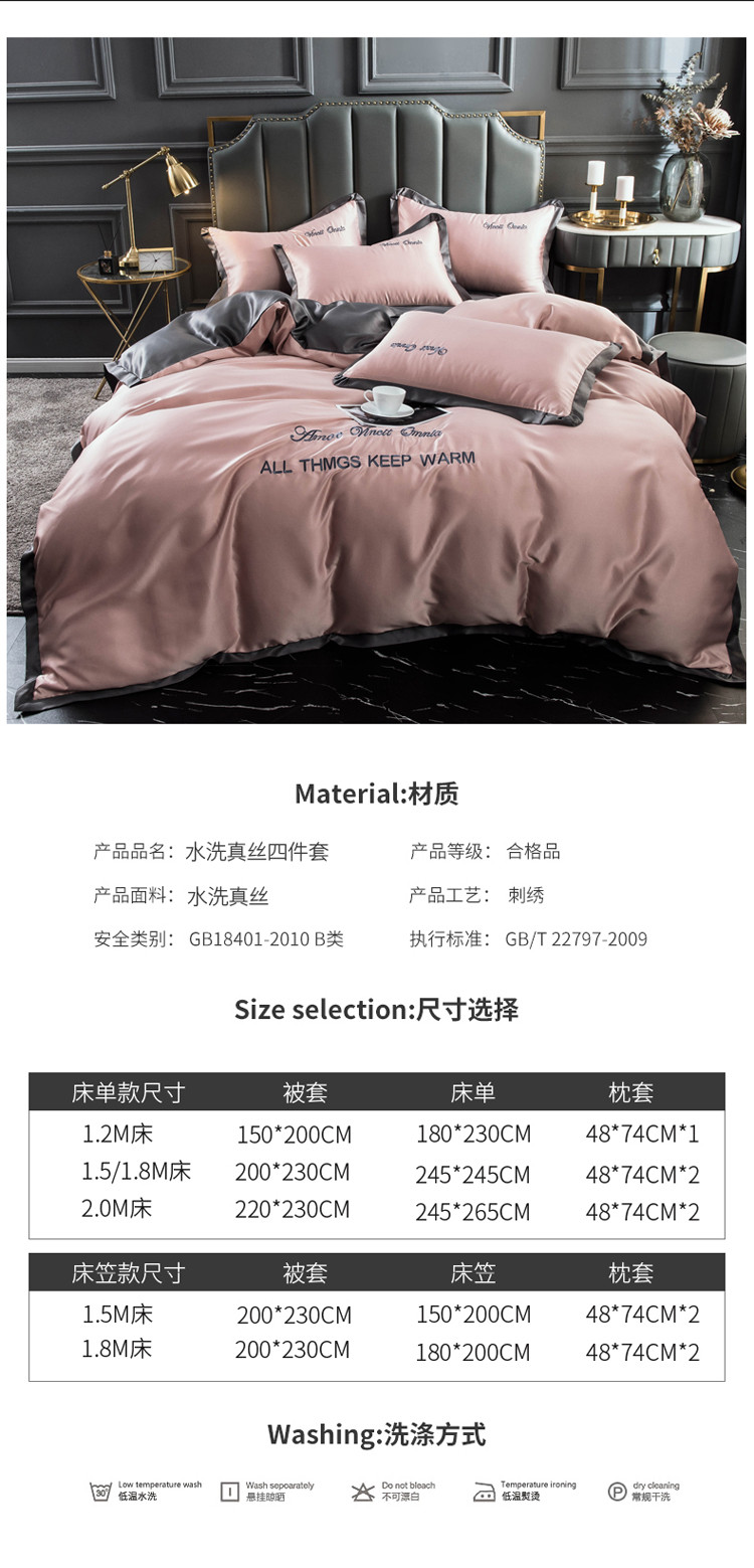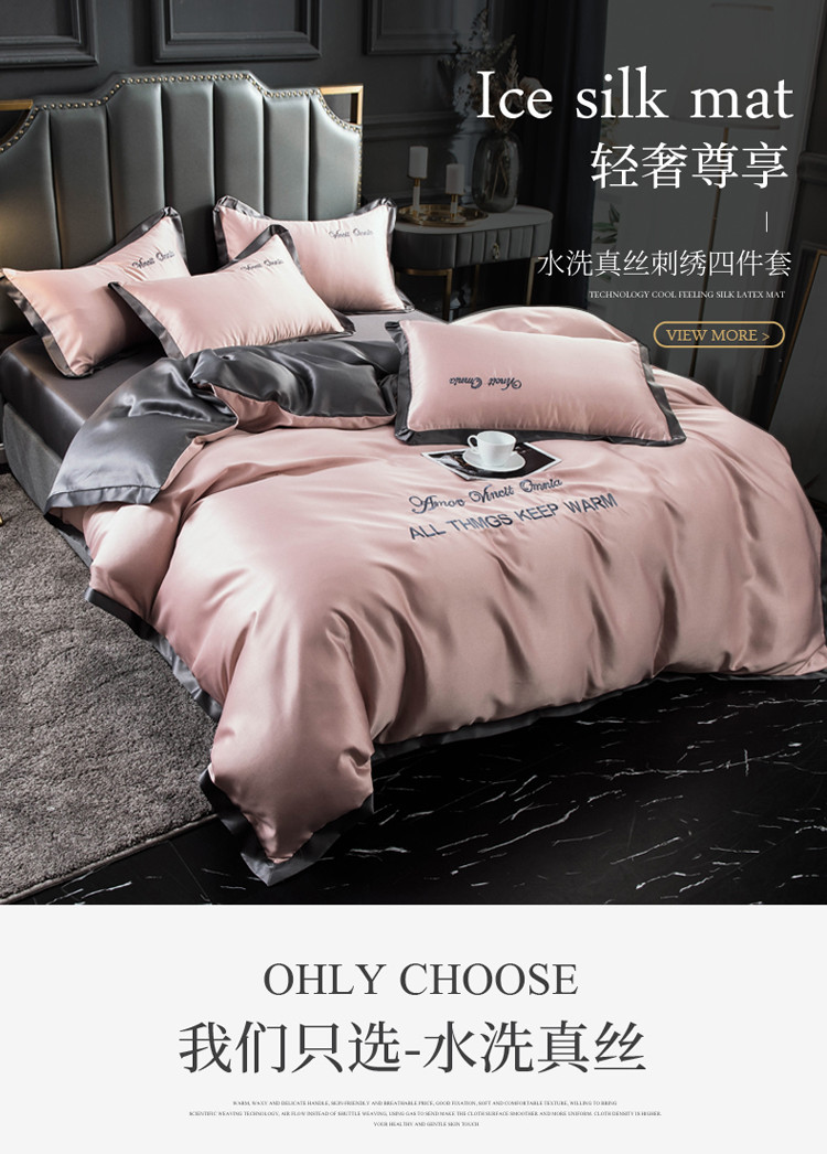 商品名称:欧冠 2022新款水洗真丝盛夏系列四件套 香槟+深灰