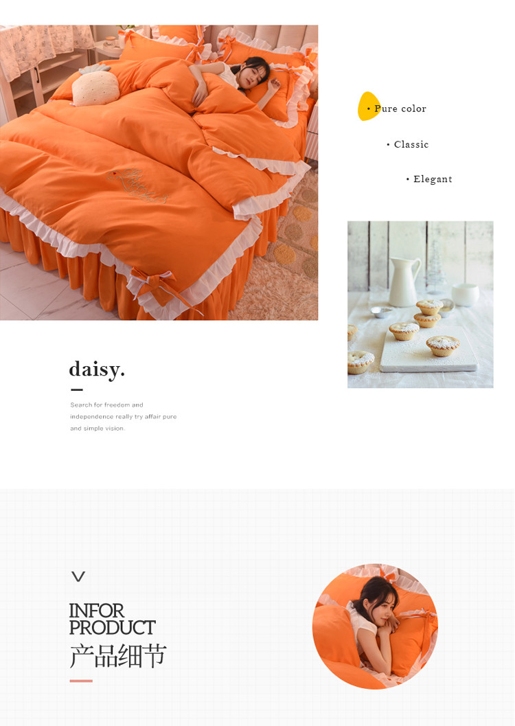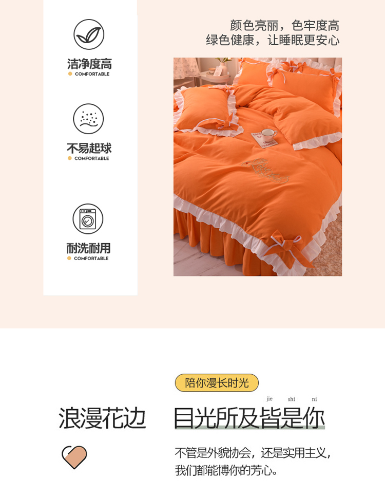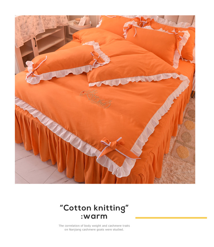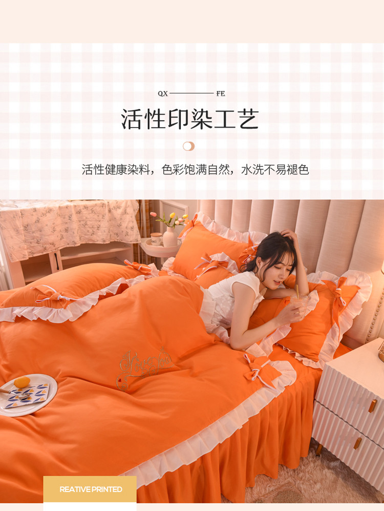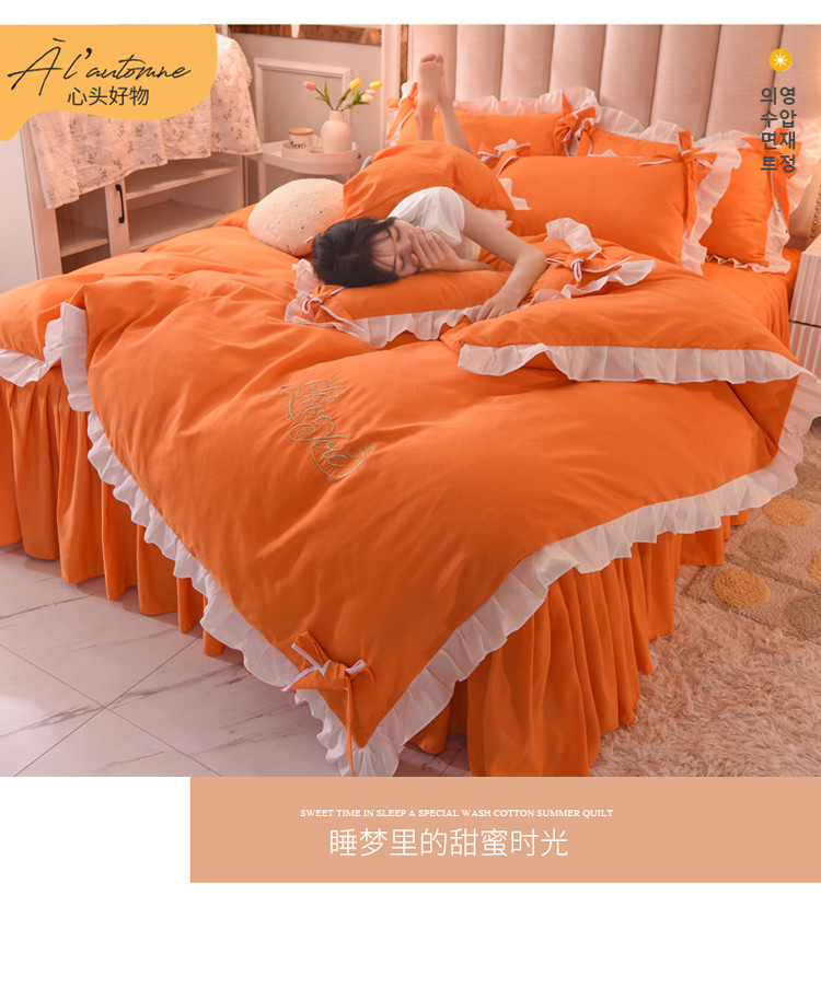 当前位置: 91家纺网 > 商品网购 > 床品套件 > 四件套 > 水洗棉四件套 > 欧冠 2022新款潮系列爱巢款床裙款刺绣四件套 蜜橙