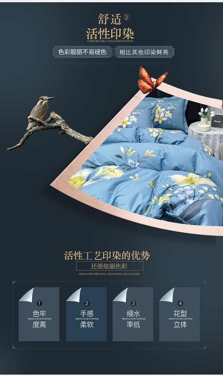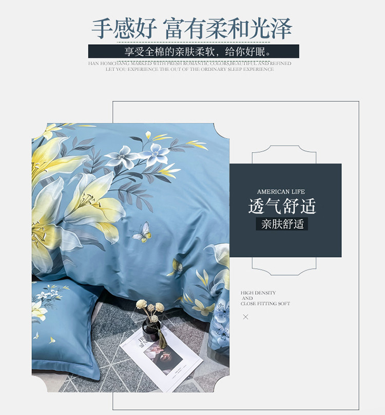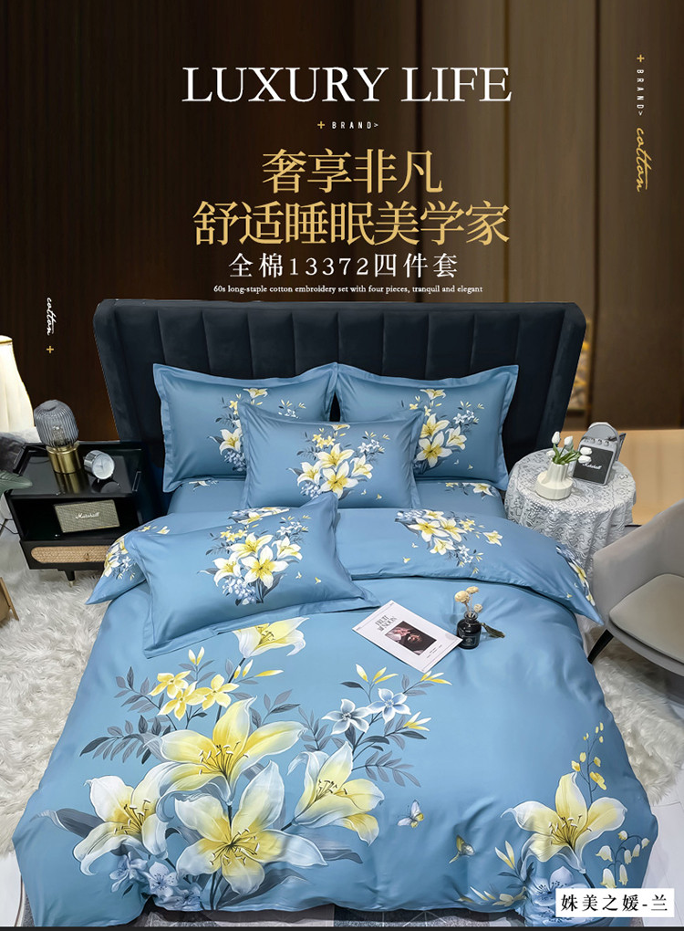 金爱家 新款大版13372全棉花卉系列四件套姝美之媛-兰