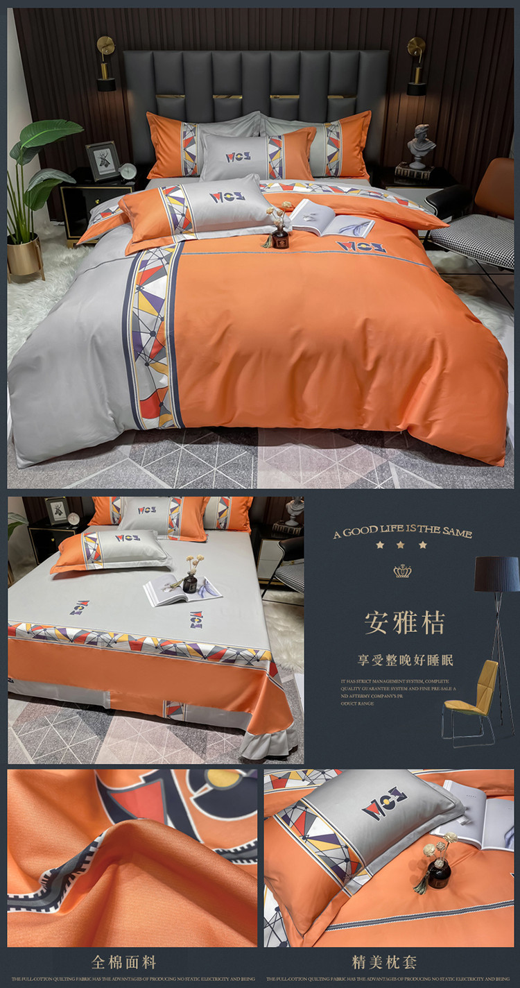 当前位置: 91家纺网 > 商品网购 > 床品套件 > 四件套 > 全棉普通四件套 > 金爱家 2023新款全棉13372简约条格四件套安雅桔