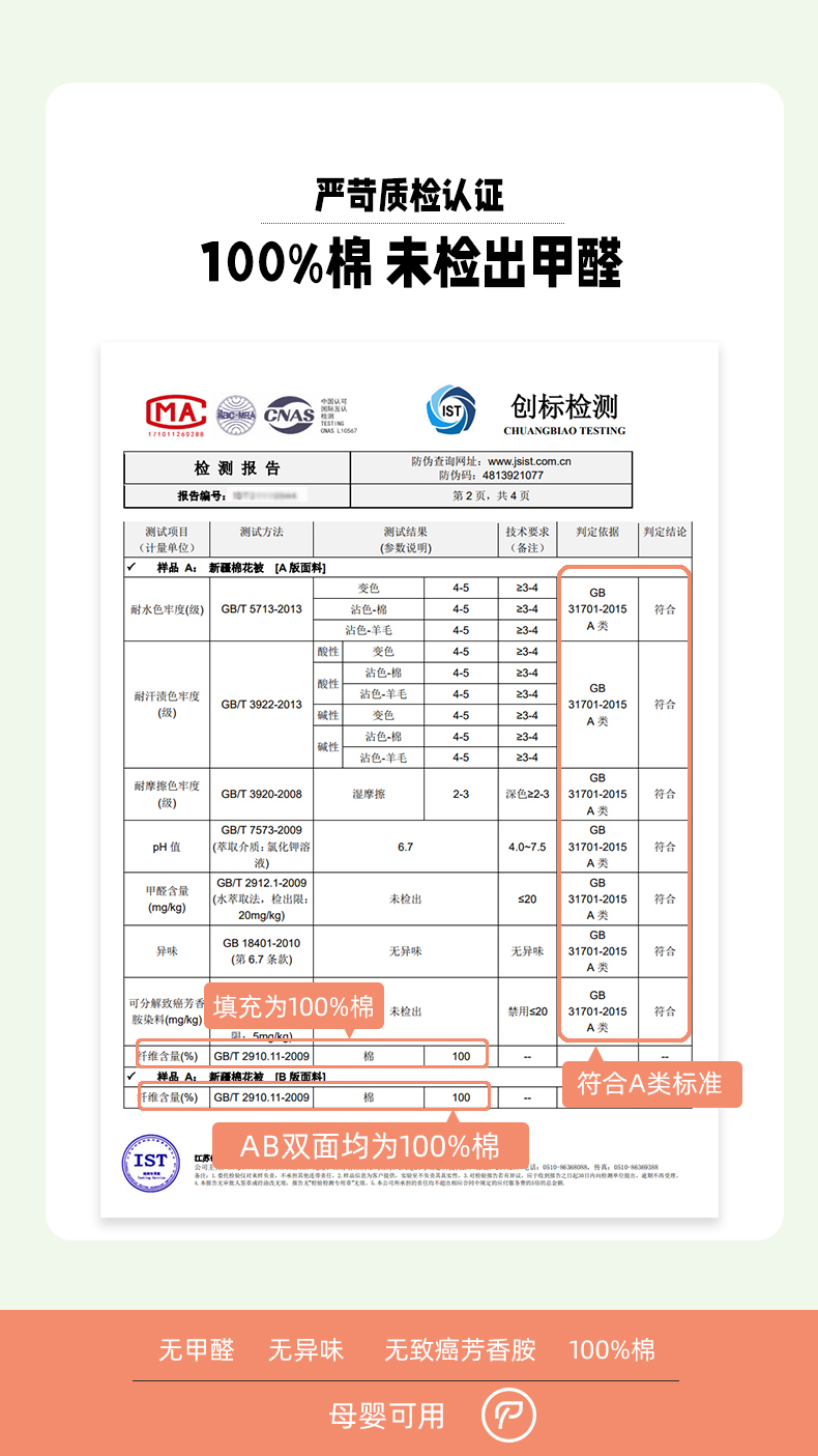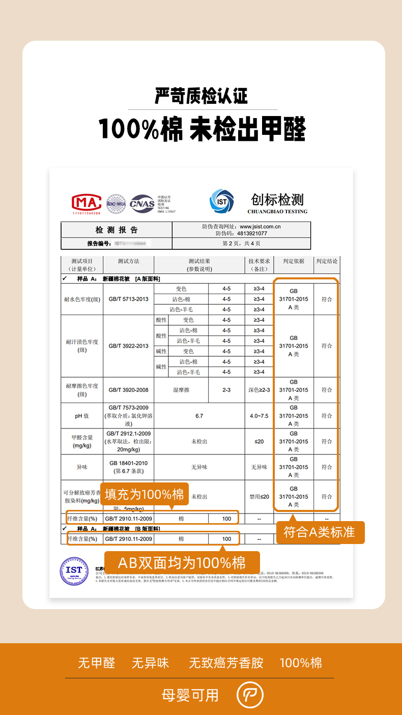 被套面料: 棉