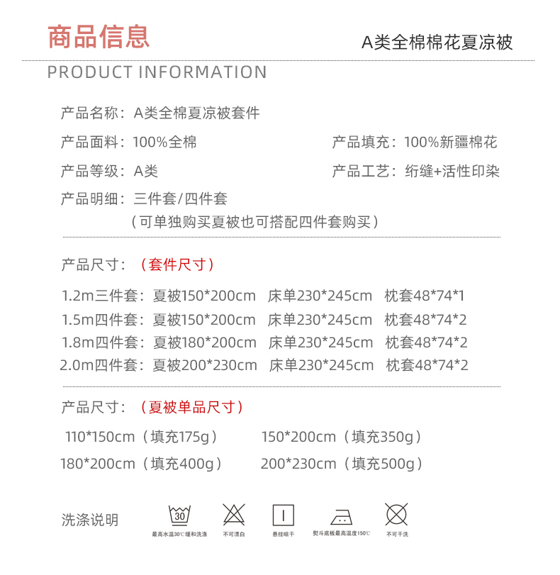 适用季节: 空调被/夏凉被