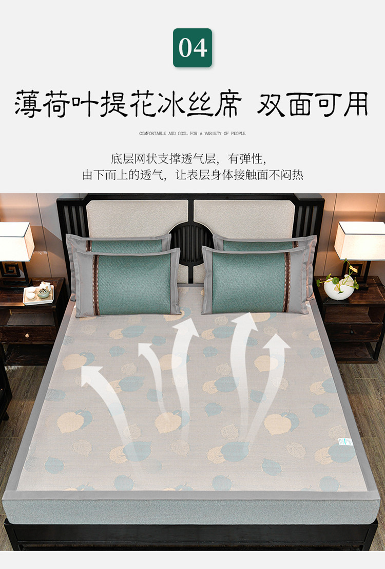 2023新款夏日冰点-冰藤双面席凉席藤席竹席冰丝席乳胶席,咖色,蓝色,绿色,香槟