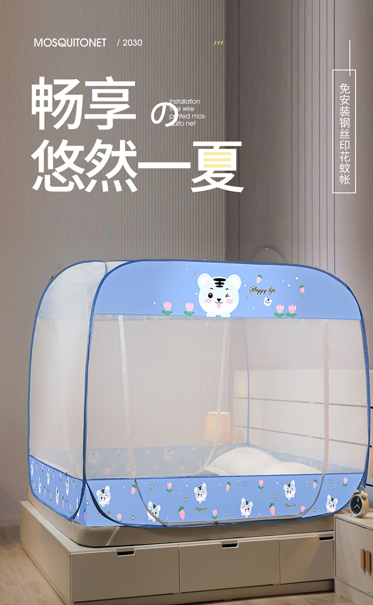 博诺蚊帐 2022新款免安装钢丝印花蚊帐 萌巧虎