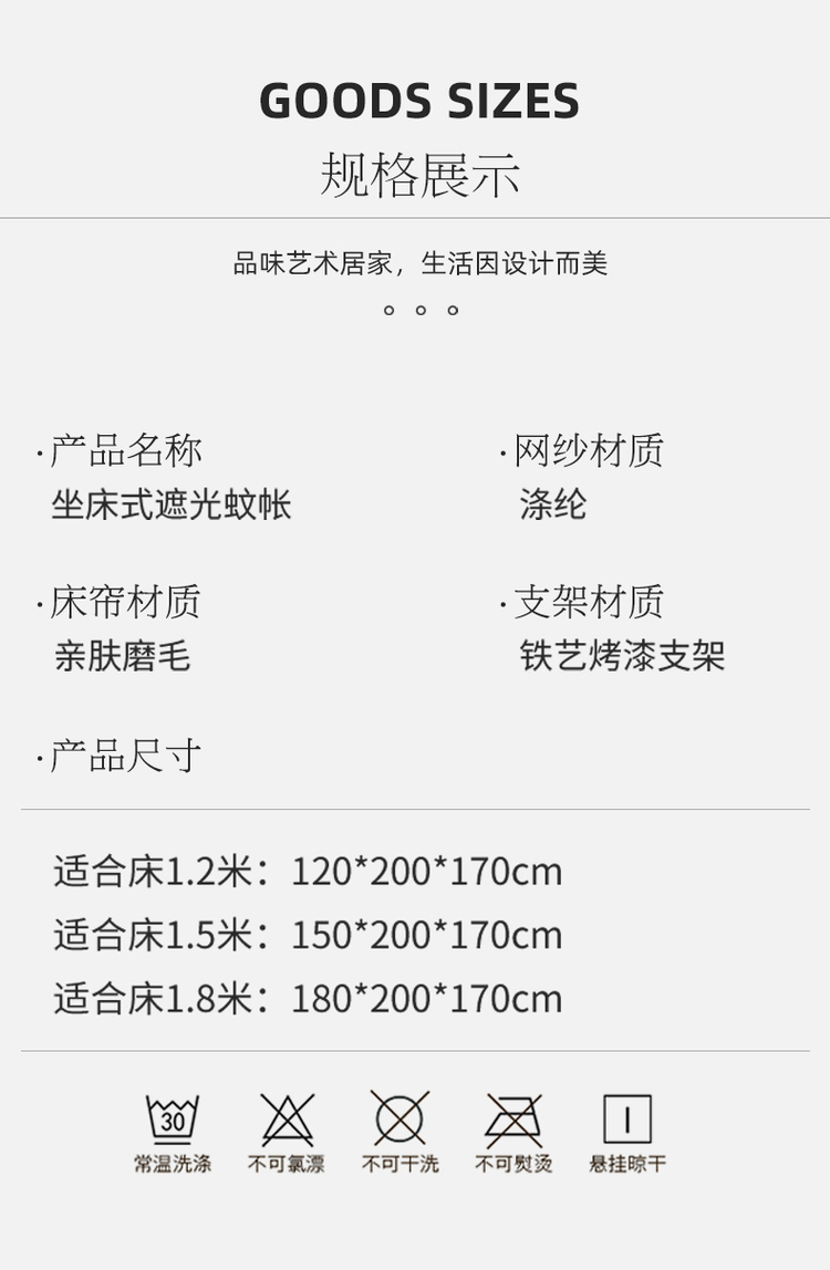 1.5m床150*170*200(带四片帘子) | ¥155.00 |