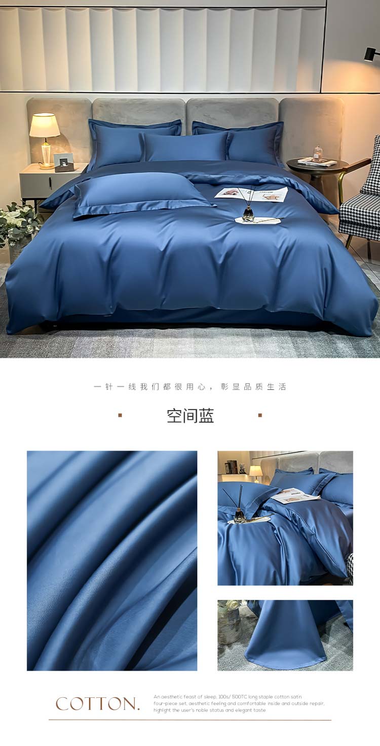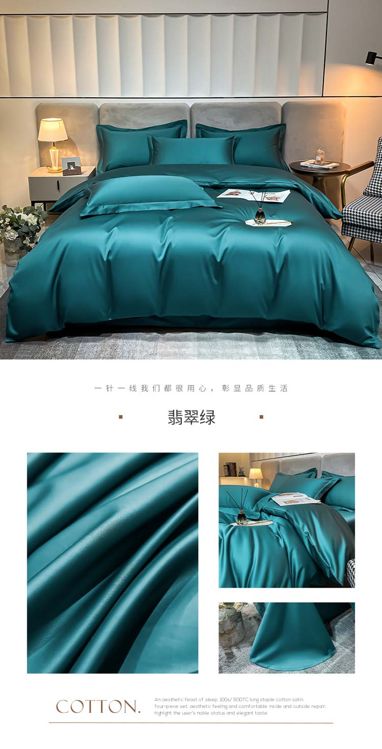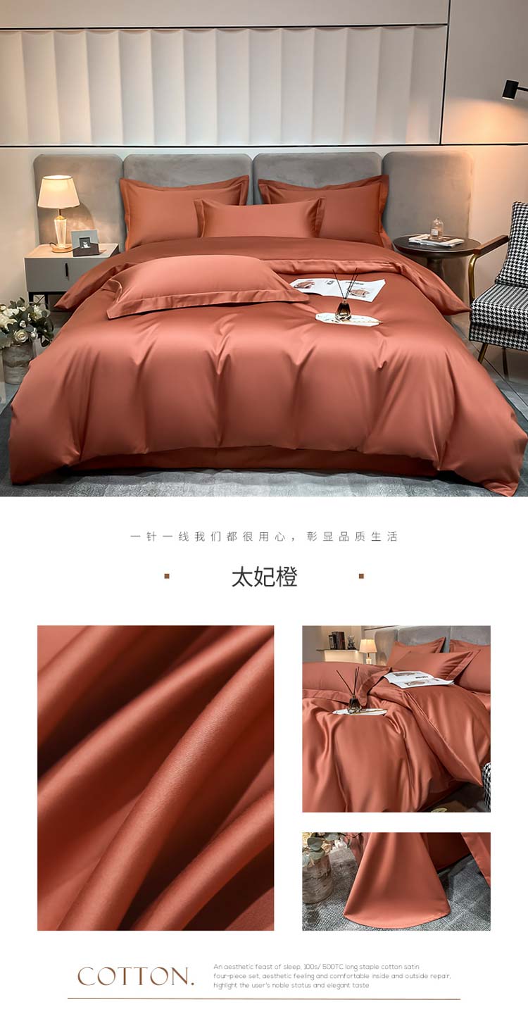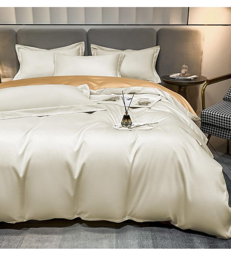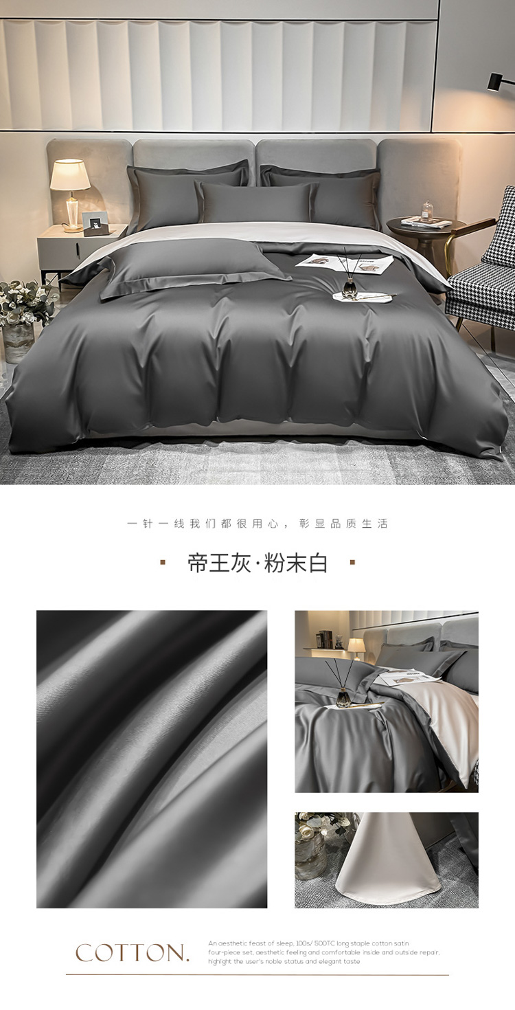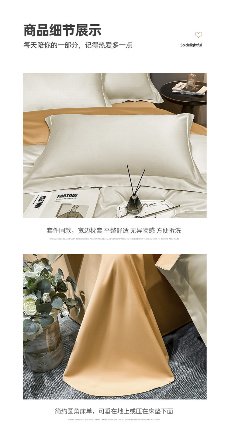 商品名称:总)秀色2025新款轻奢50支贡缎纯色双拼四件套长绒棉套件