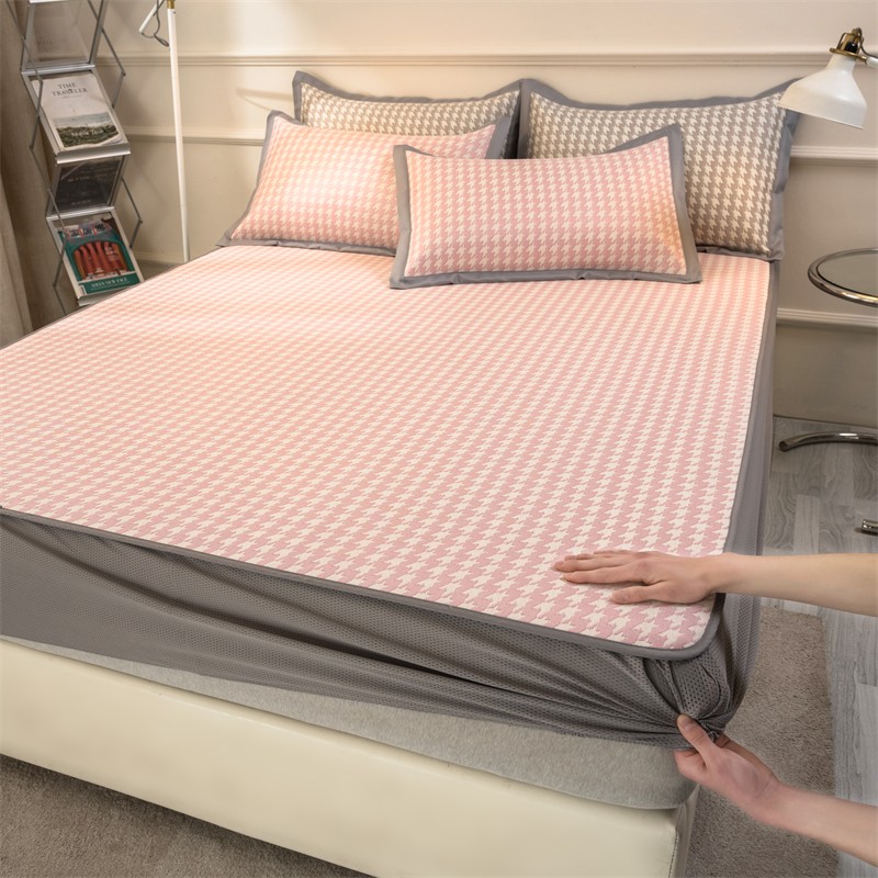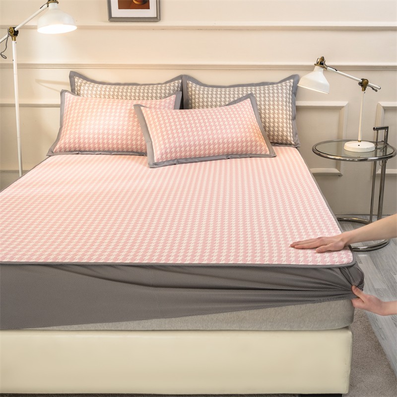 商品名称:孩子王 2024新款升级轻奢床笠款冰丝凉席 千鸟格粉