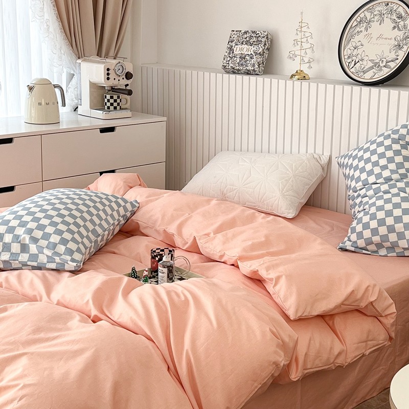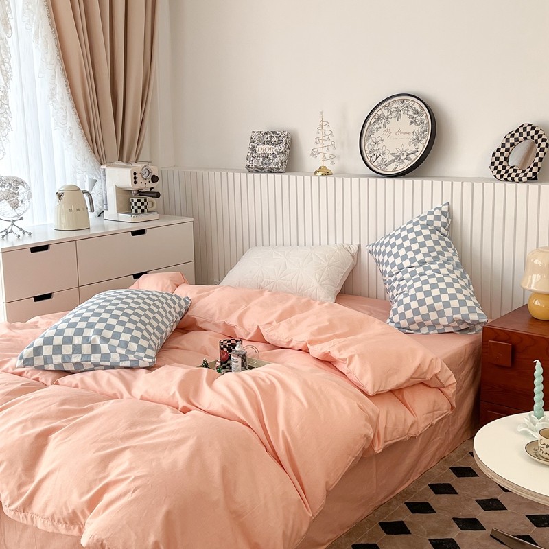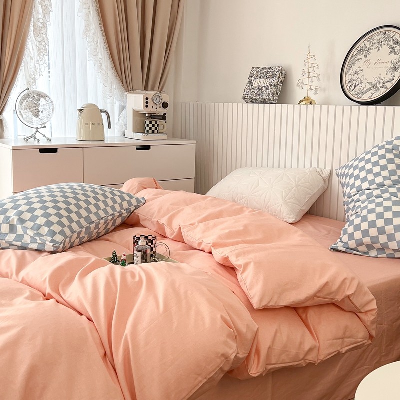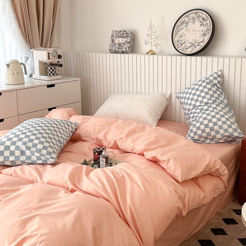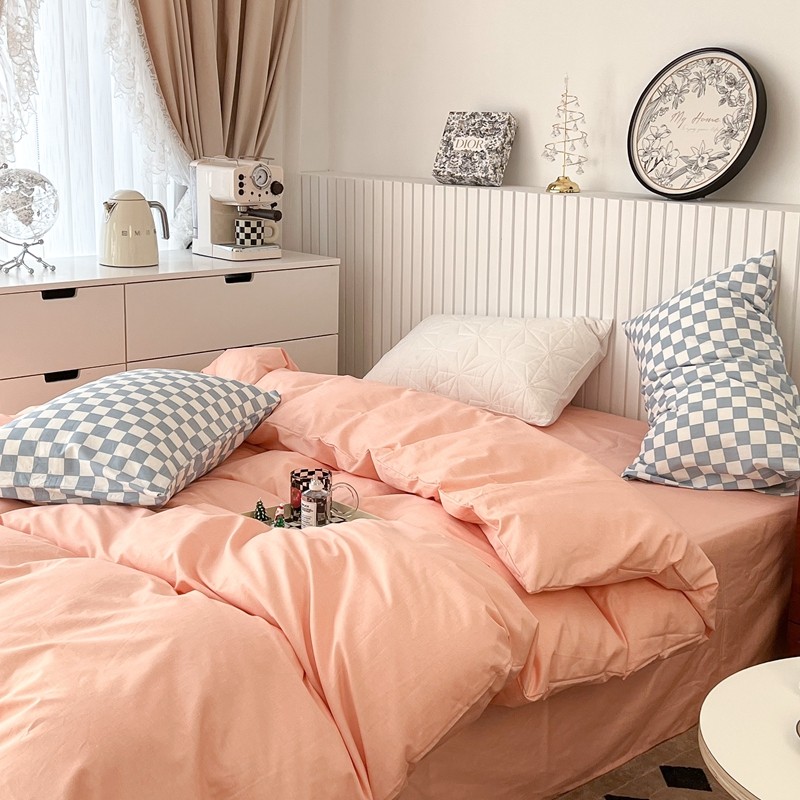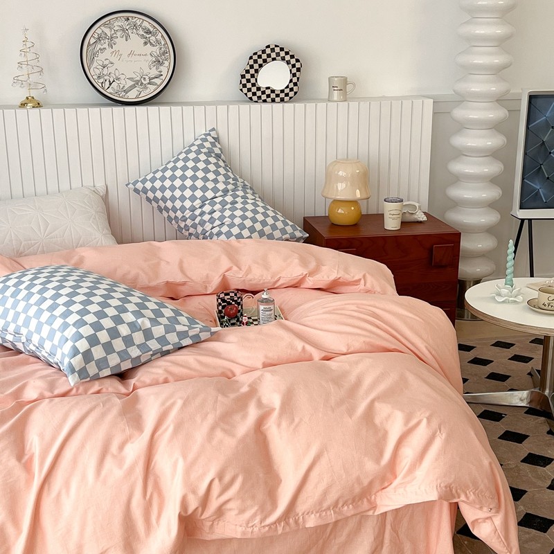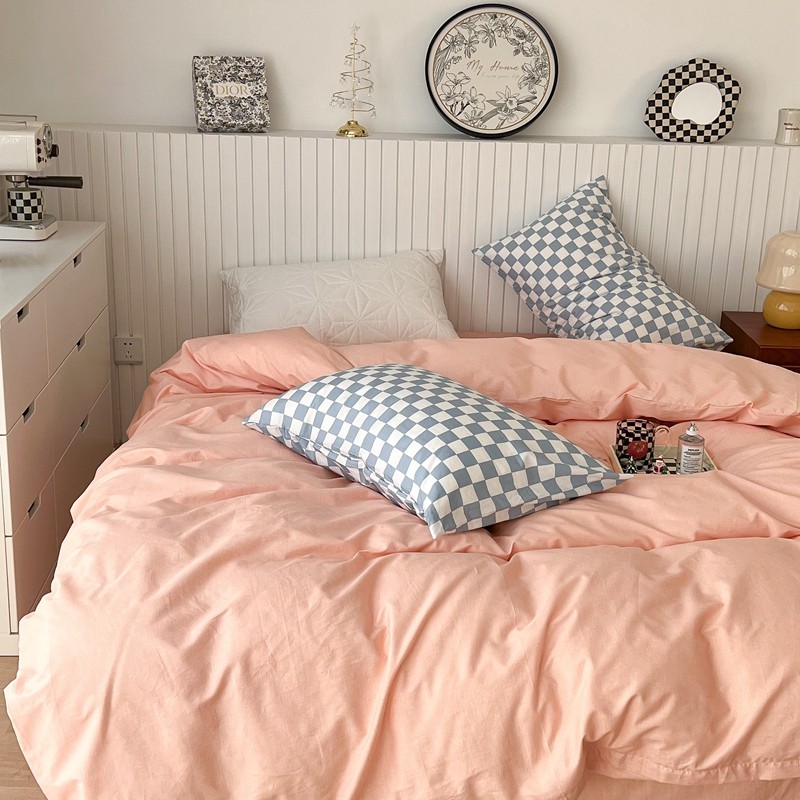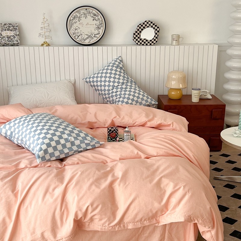 昔可2022新款混搭纯色棋盘格套件四件套 粉玉蓝棋盘