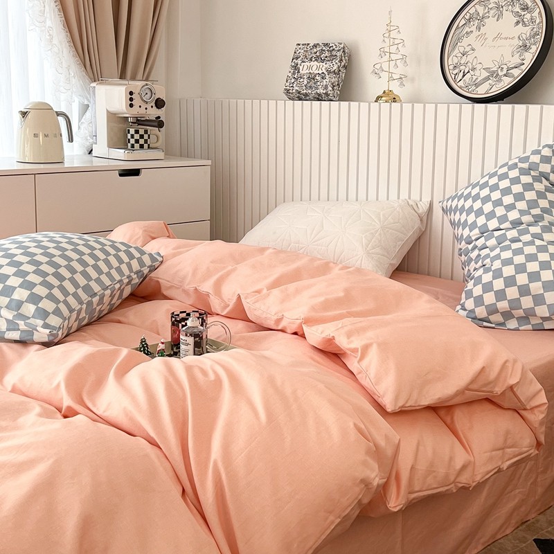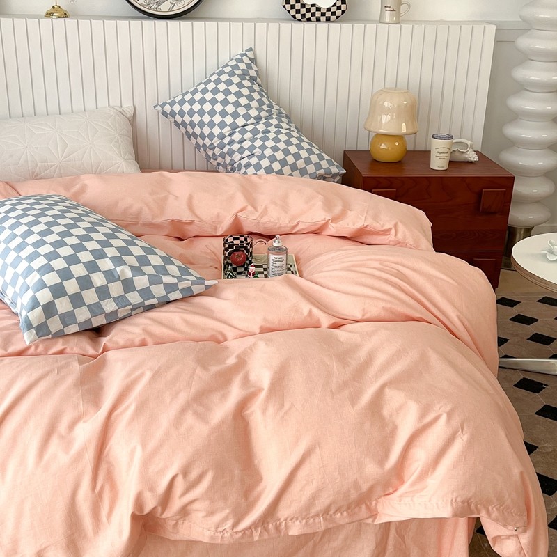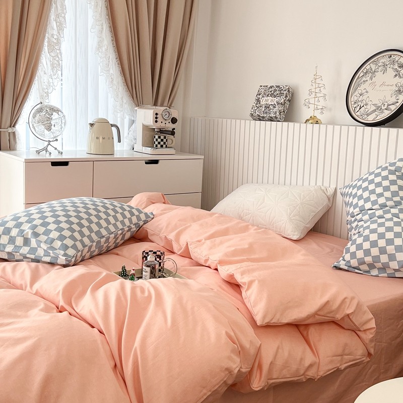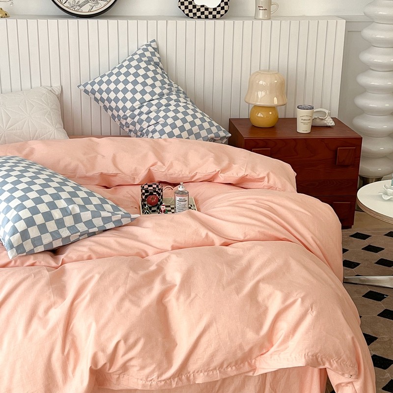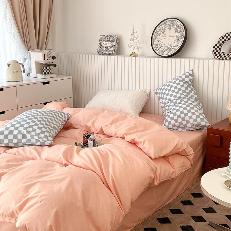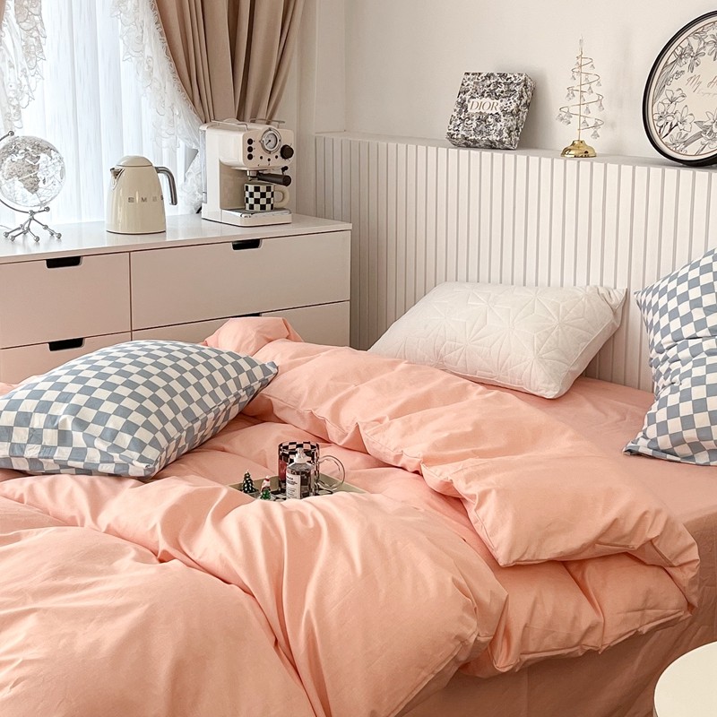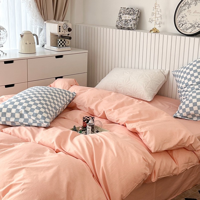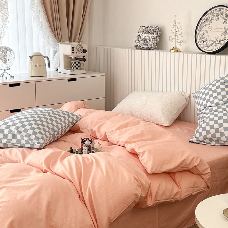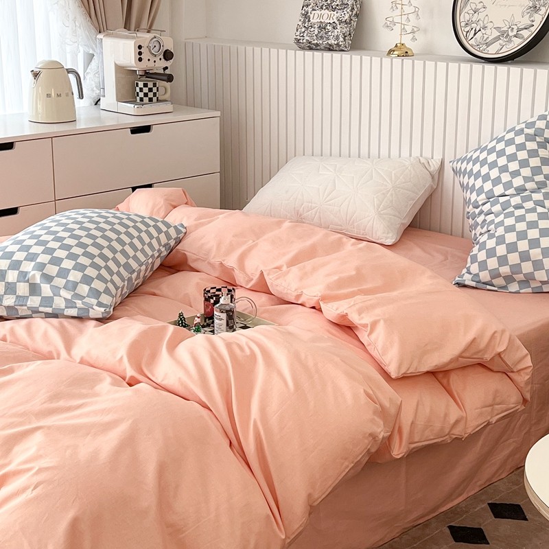 昔可2022新款混搭纯色棋盘格套件四件套 粉玉蓝棋盘
