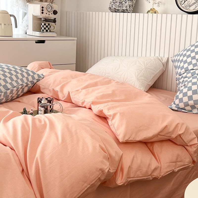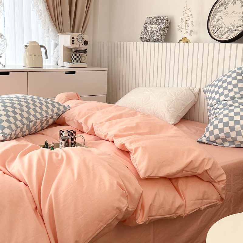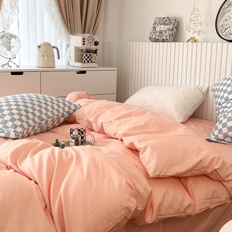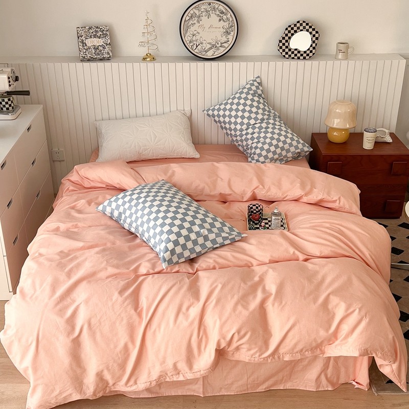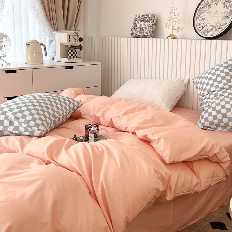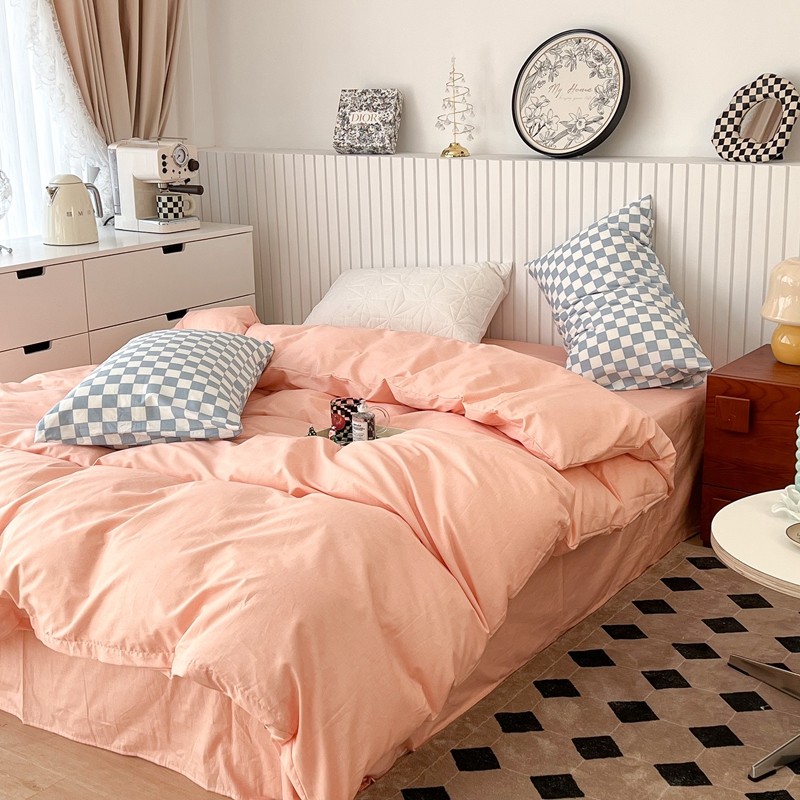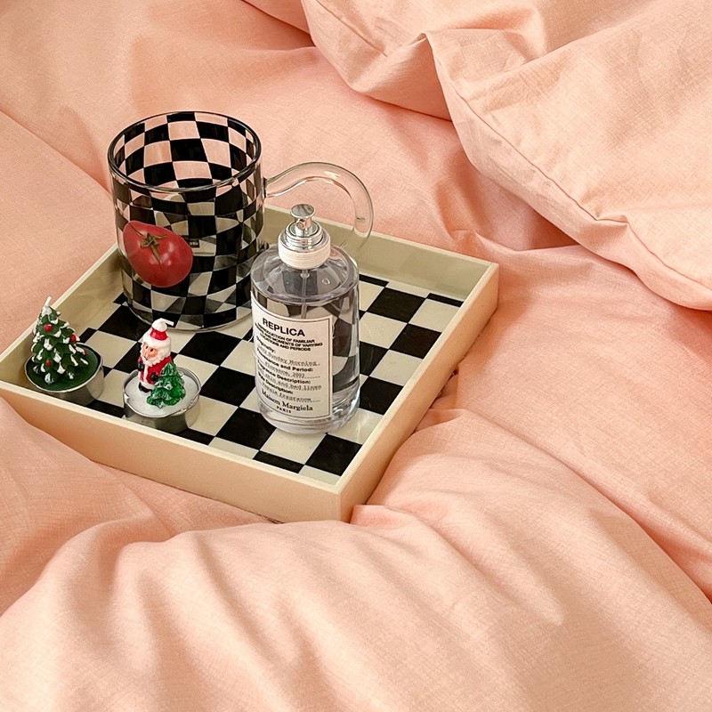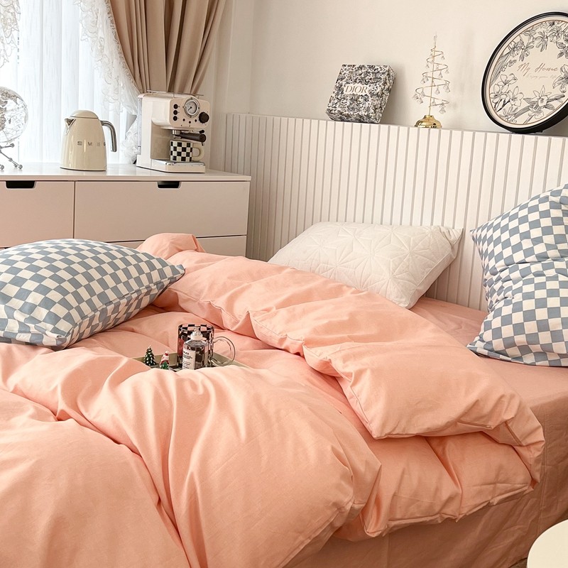 昔可2022新款混搭纯色棋盘格套件四件套 粉玉蓝棋盘