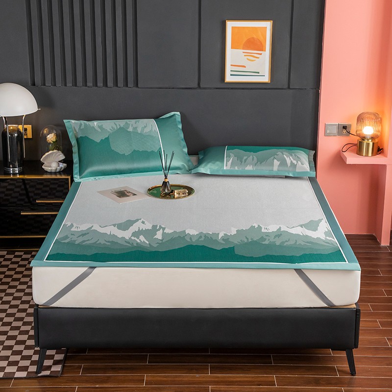 (总)凡客 2022春夏新品碳光冰丝凉席印花提花宽边冰藤席学生宿舍