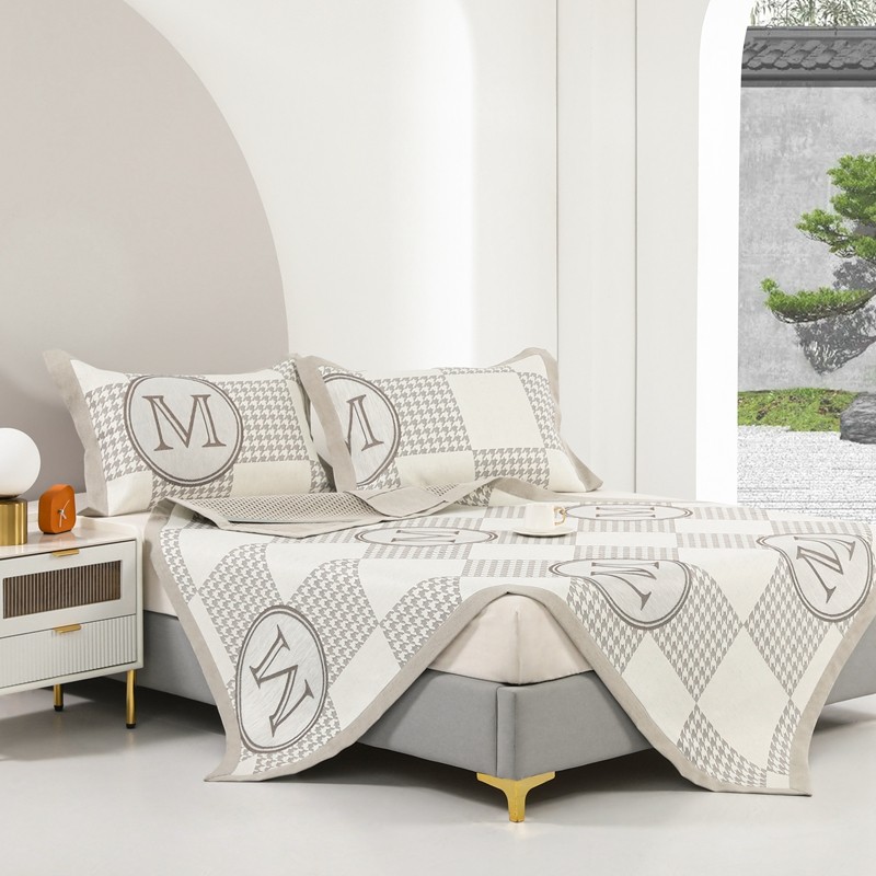 馨蕊 2022新款高端可水洗抗菌冰感席四件套 M千鸟格-咖