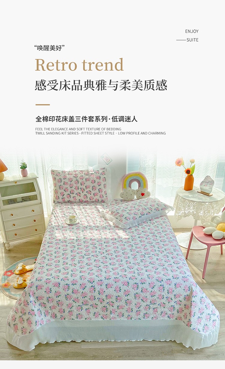 • 91家纺网 家纺一手货源 找家纺 鑫钰 2023全棉印花床盖三件套 初见