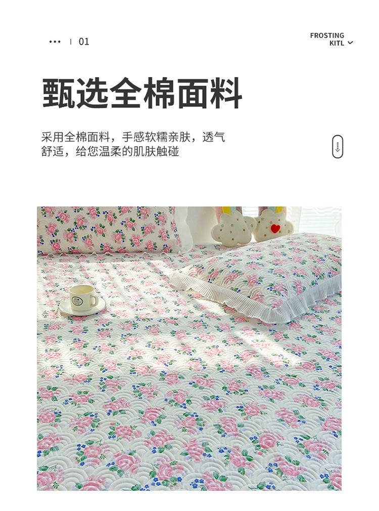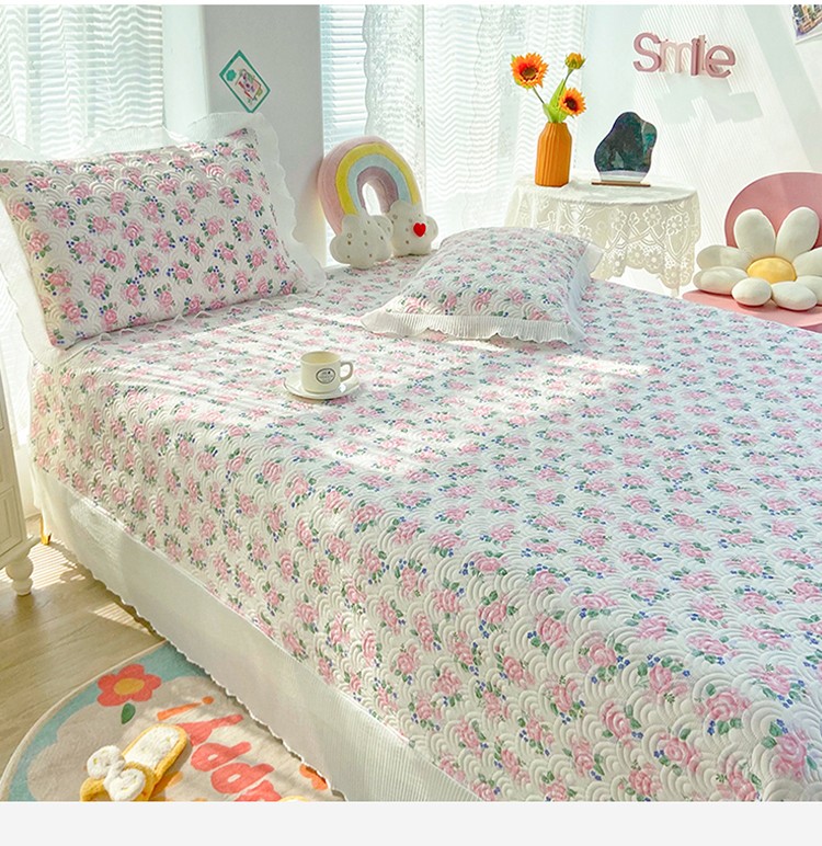 (总)鑫钰 2025新款A类纯棉夹棉床笠学生宿舍专用90x190-80x190-花漾山茶格,花漾山茶格-粉,花漾山茶格-蓝,花漾山茶格-灰