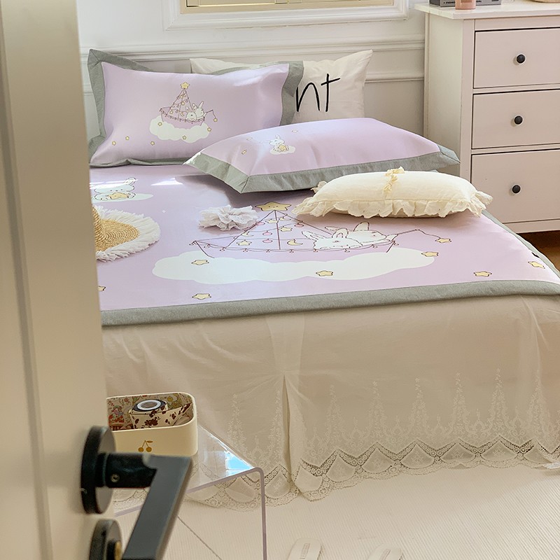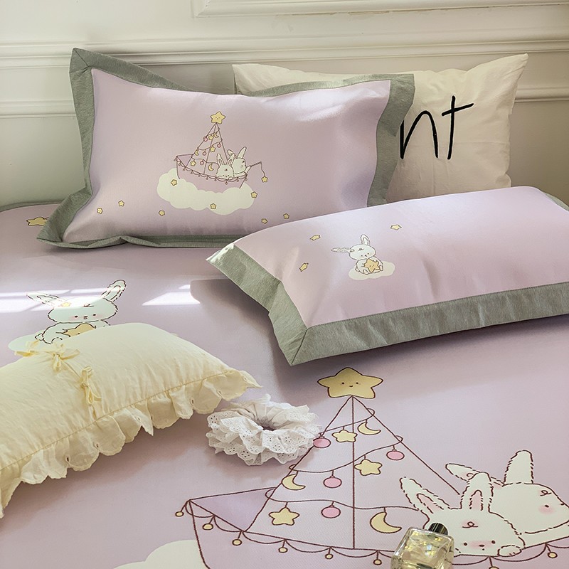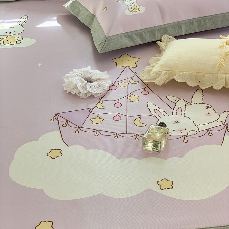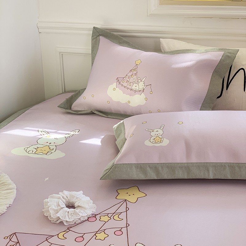 (总)昔可家纺 2023新款全棉四件套-第六批,芭蕾少女,粉粉花,花花小鹿,绿野小兔,玫瑰猫咪,梦镜小兔,黑色泼墨
