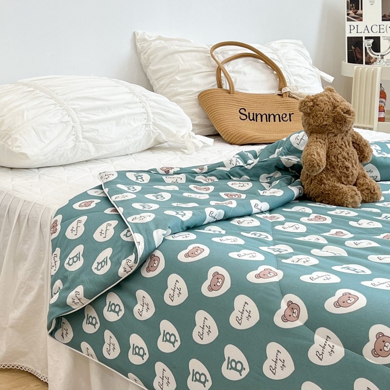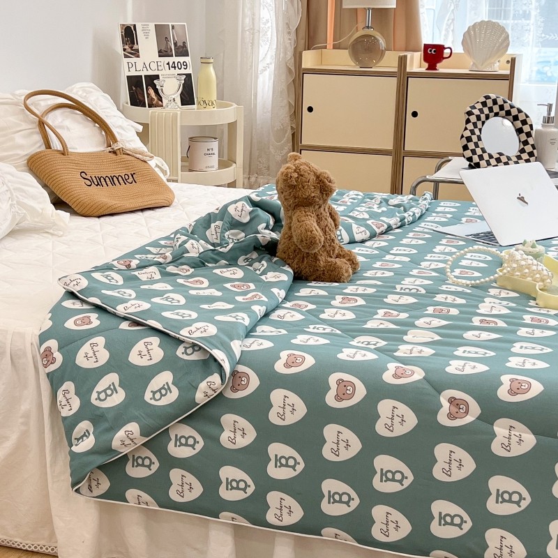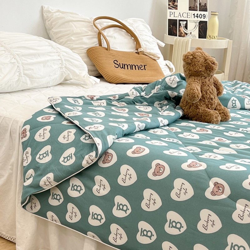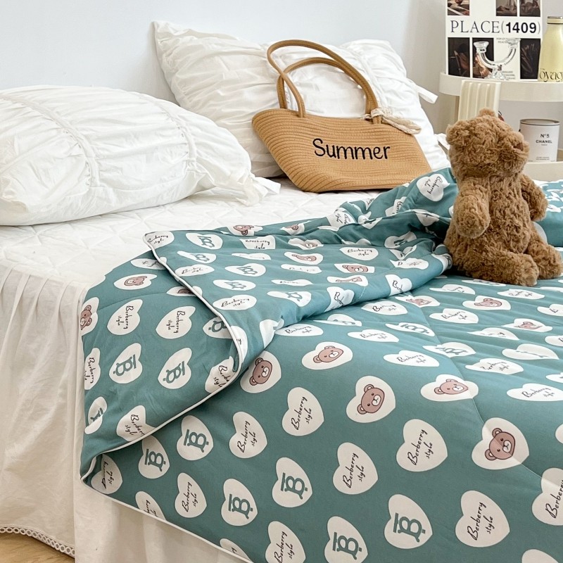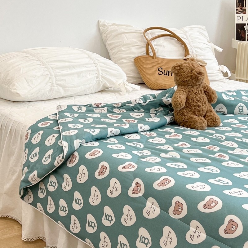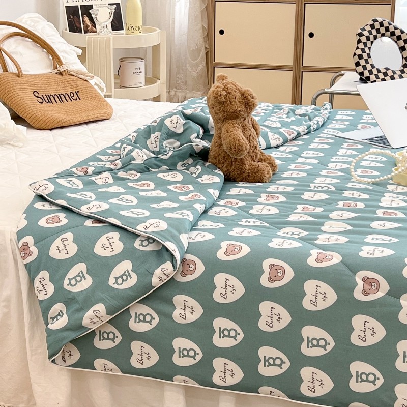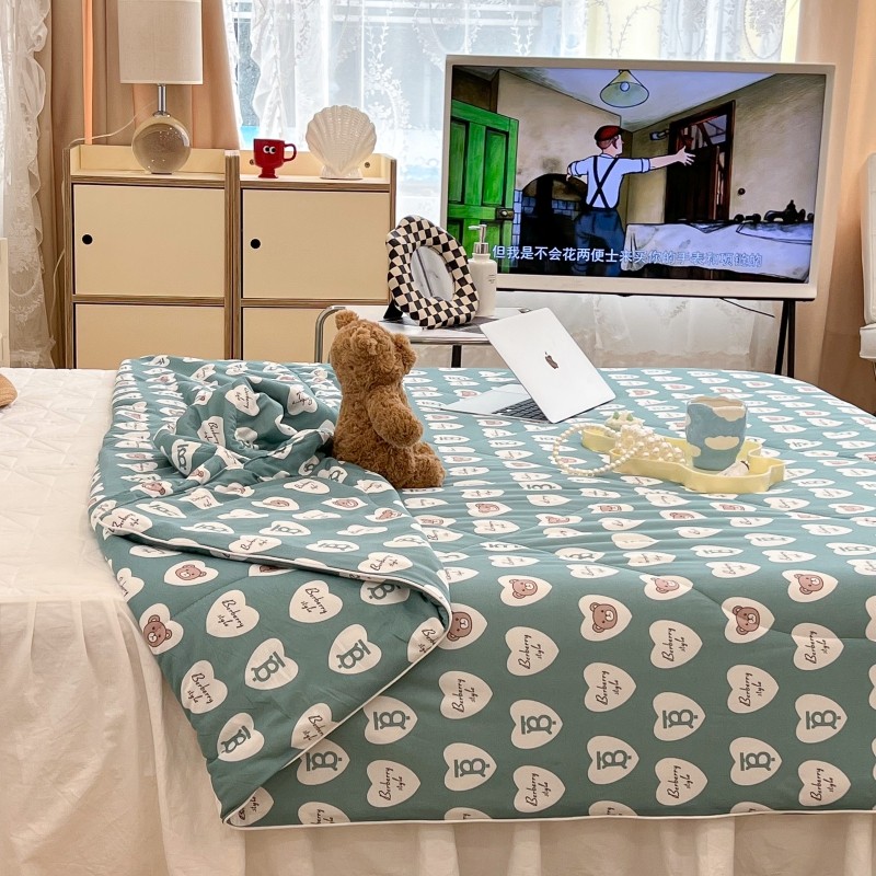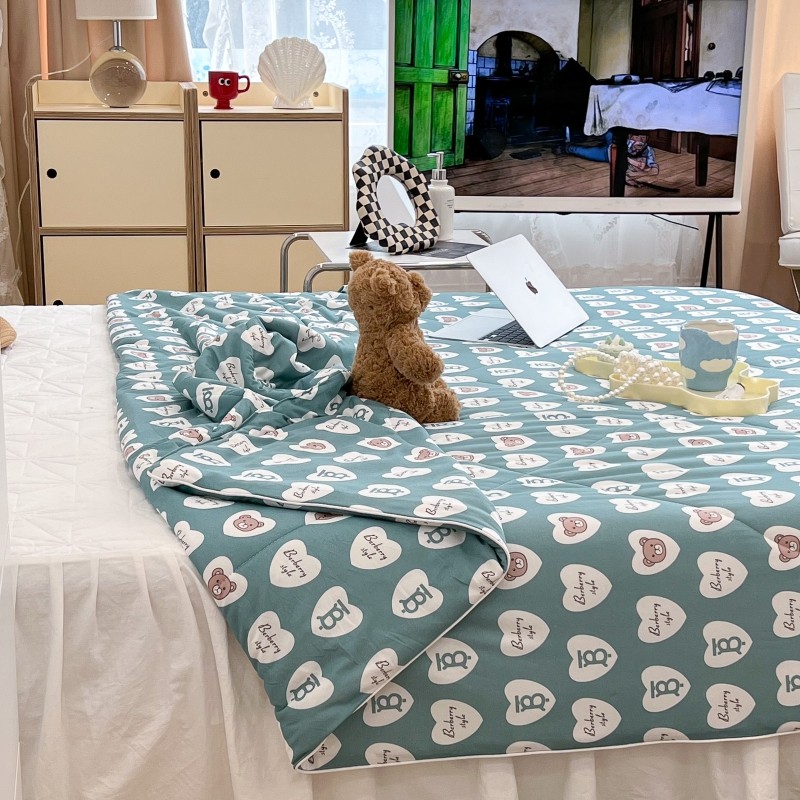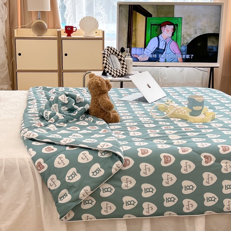 昔可 2022新款卡通印花牛奶丝针织夏被 爱心熊-绿