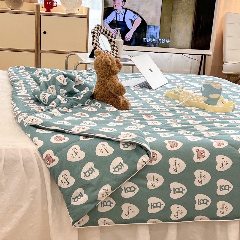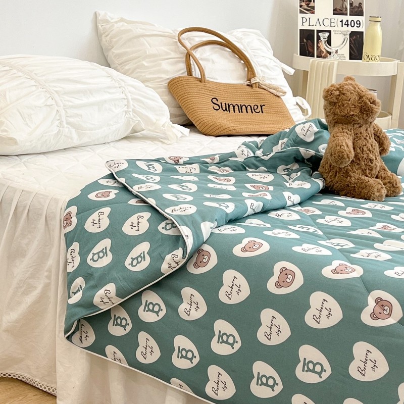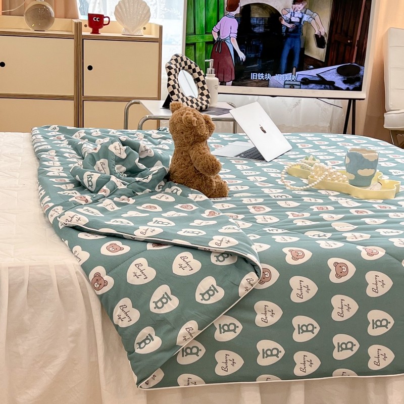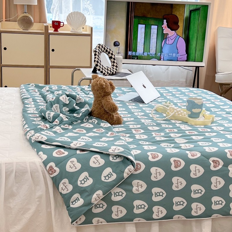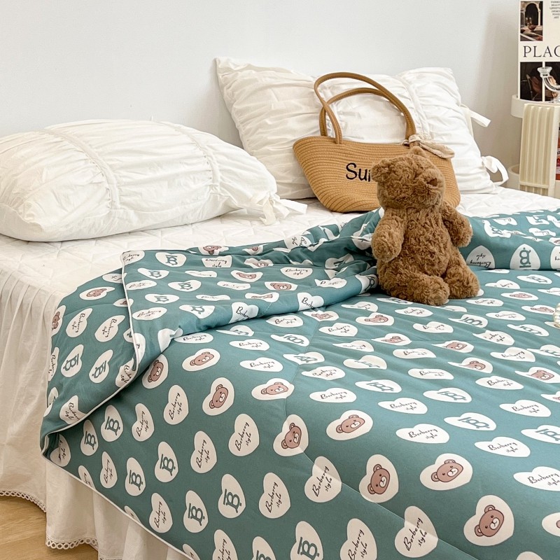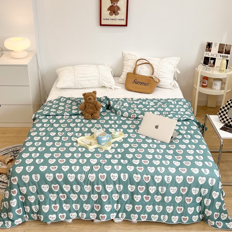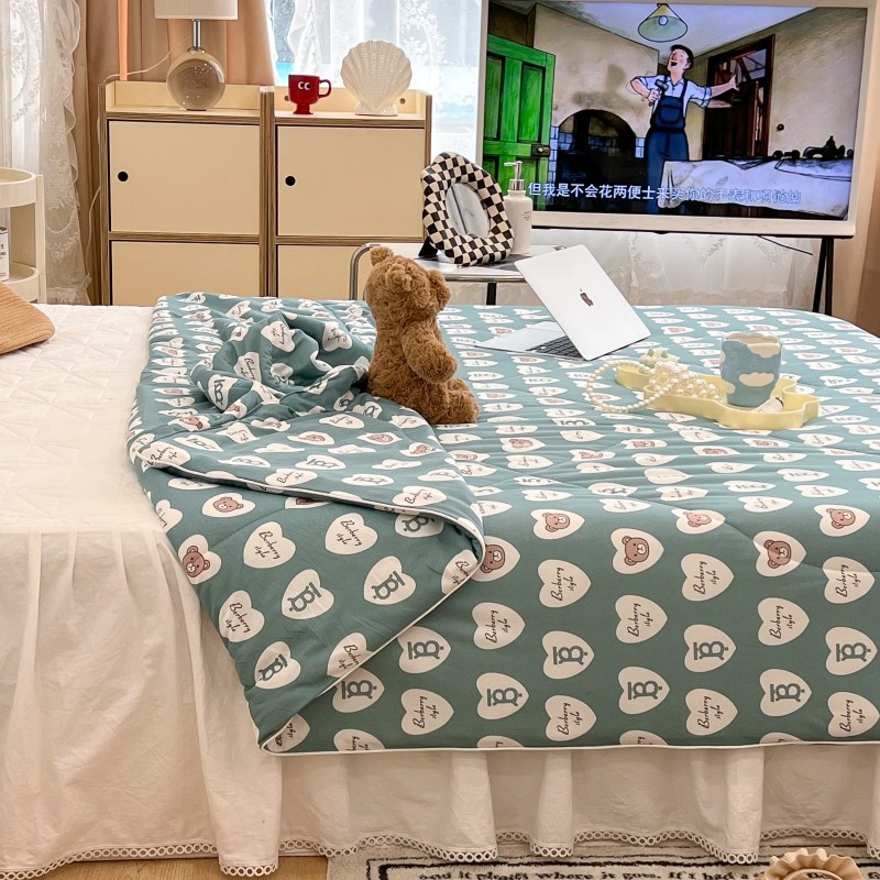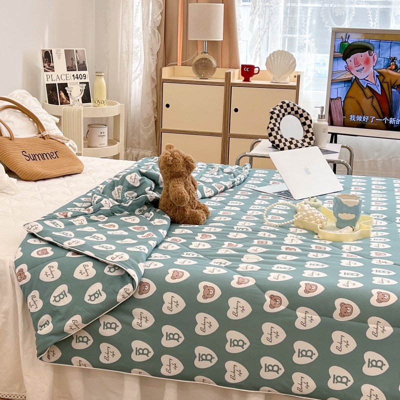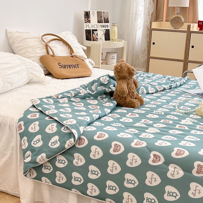昔可 2022新款卡通印花牛奶丝针织夏被 爱心熊-绿