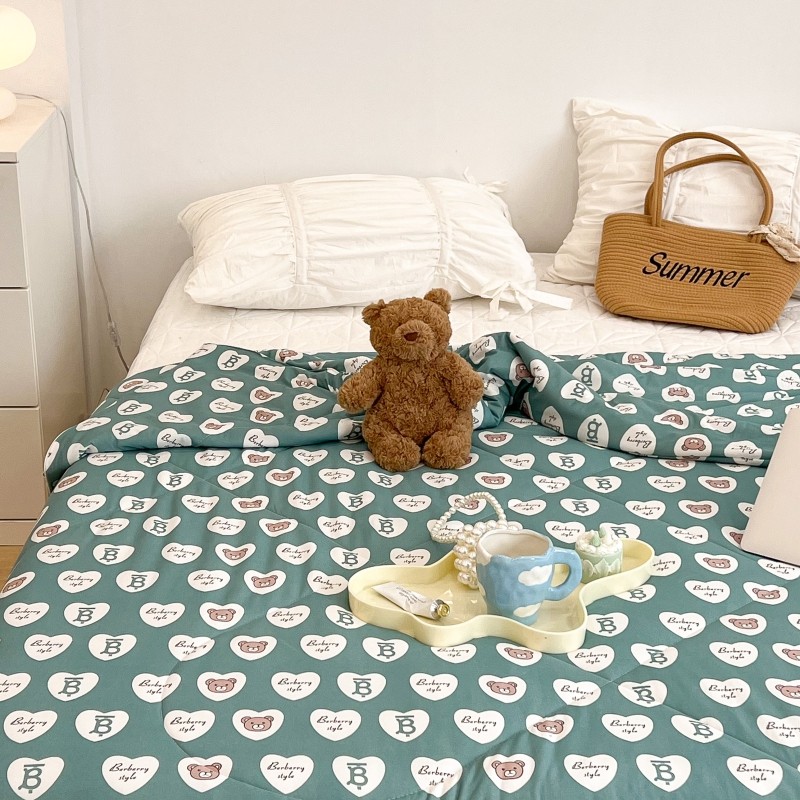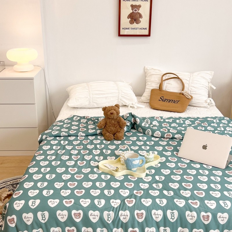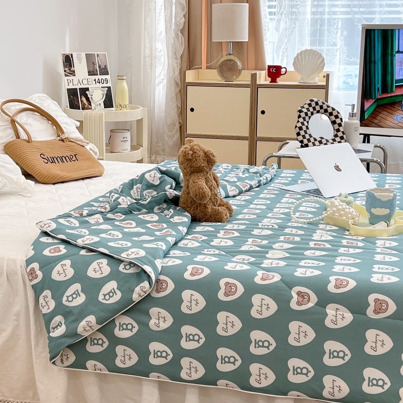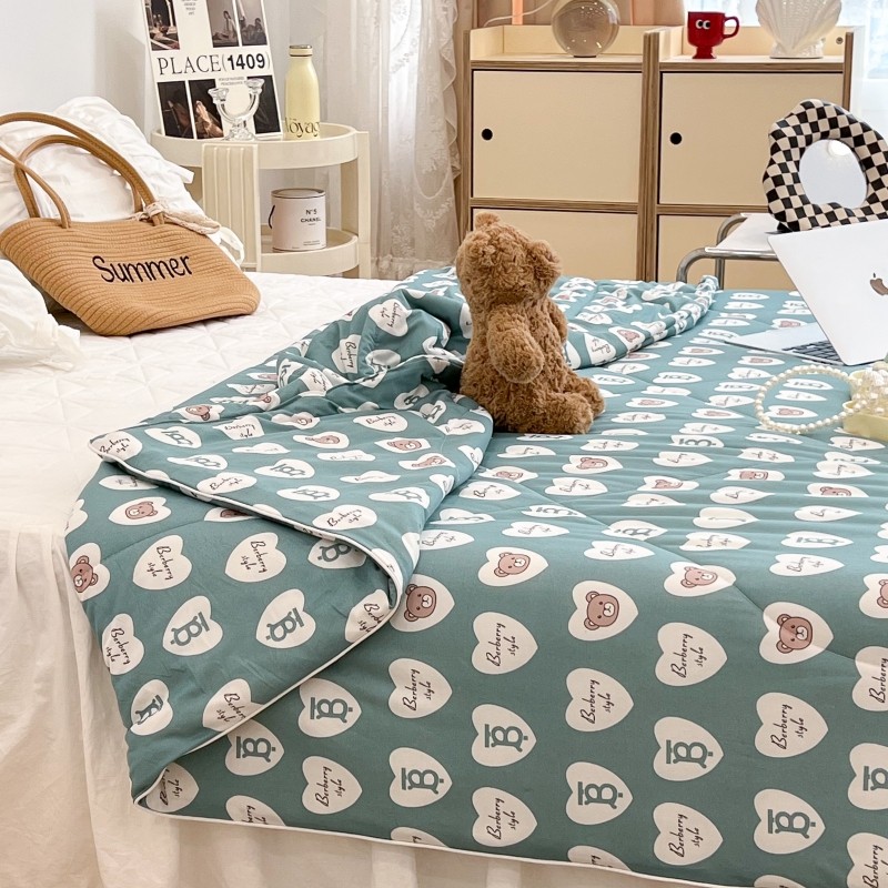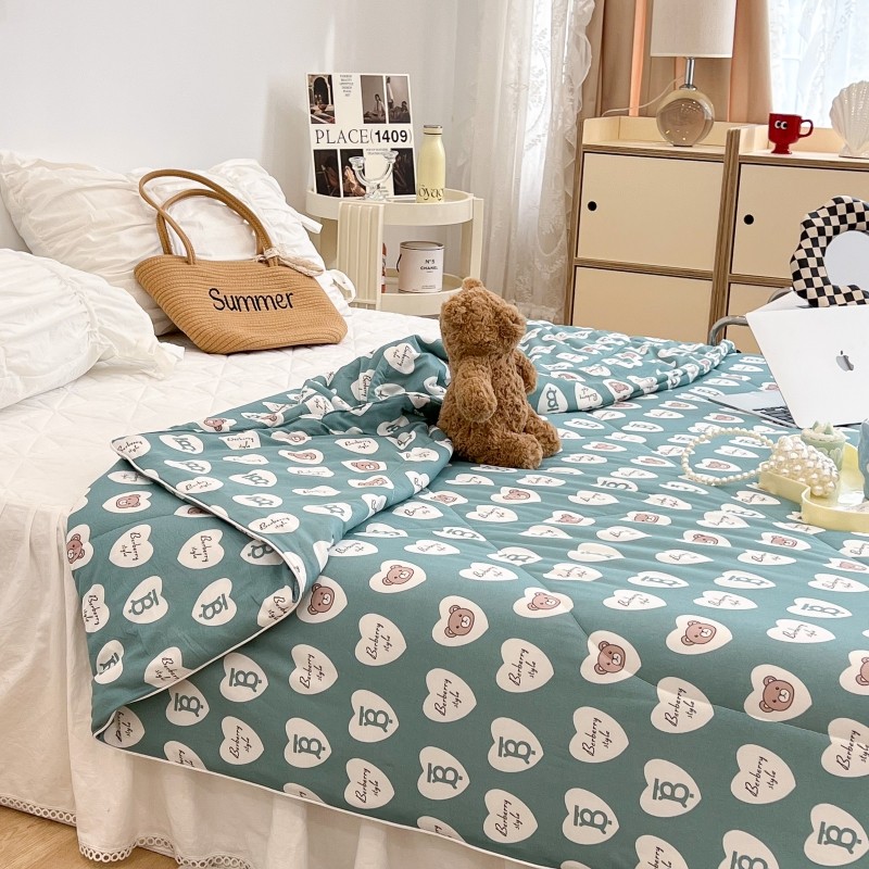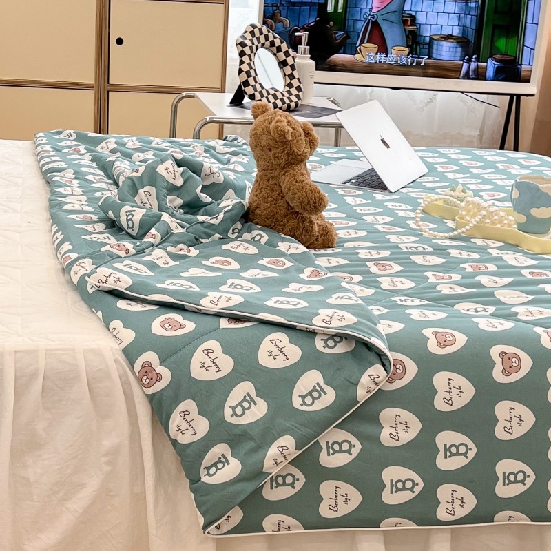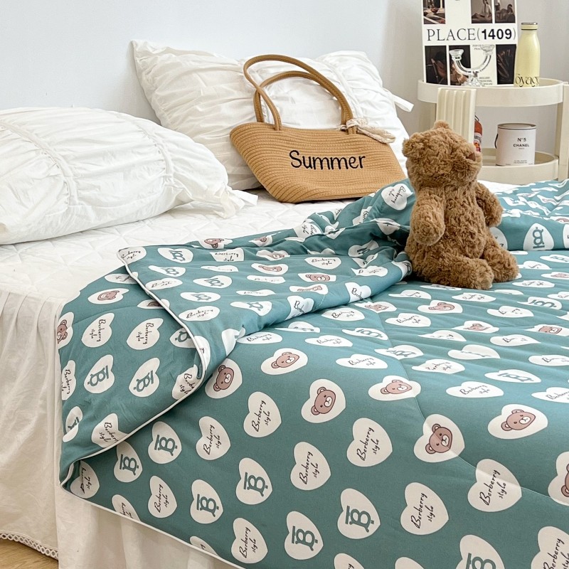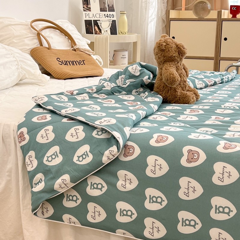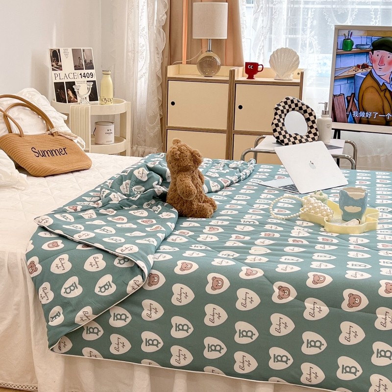 昔可 2022新款卡通印花牛奶丝针织夏被 爱心熊-绿