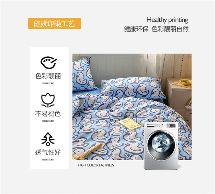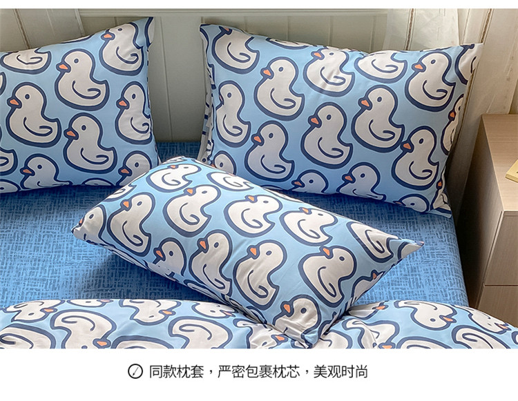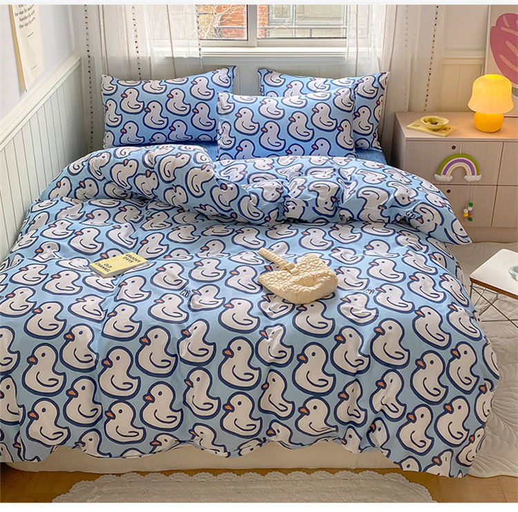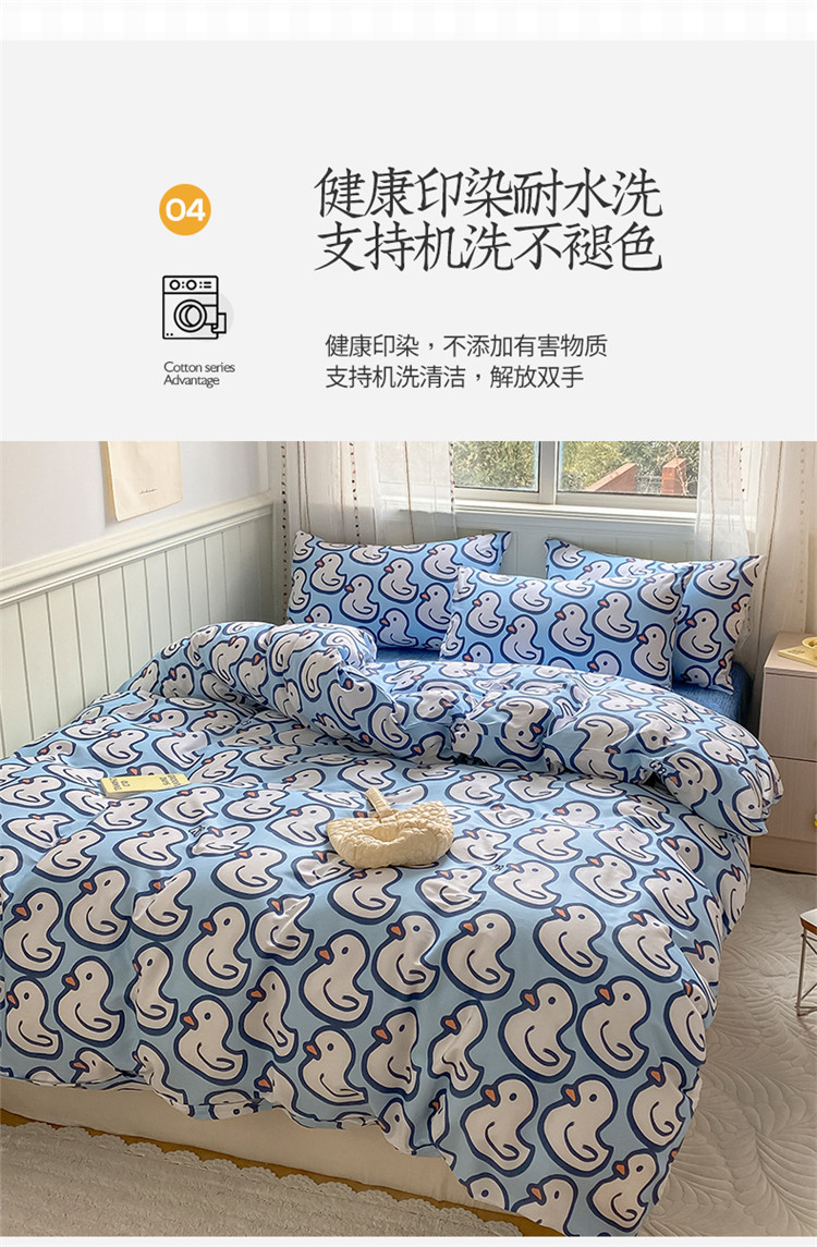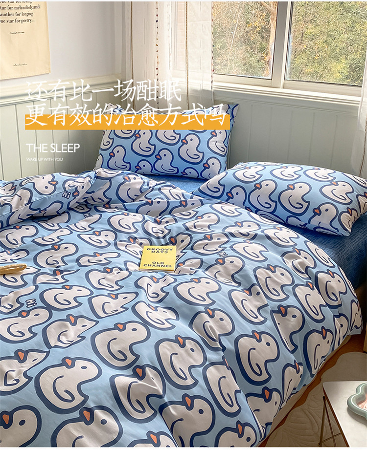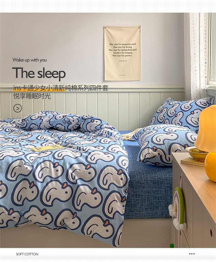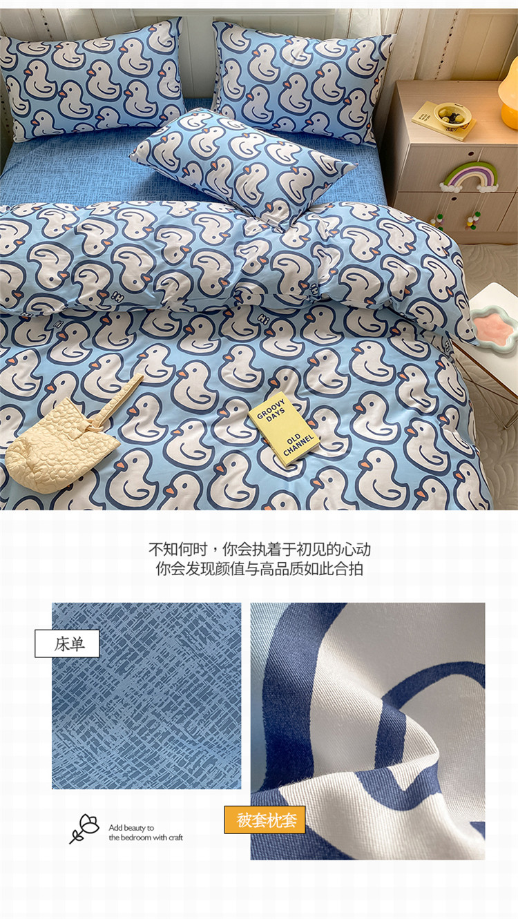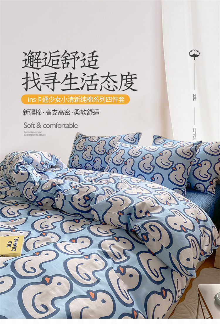 桃子家居 2022新款ins小清新奶油卡通纯棉系列四件套 蓝色多多鸭