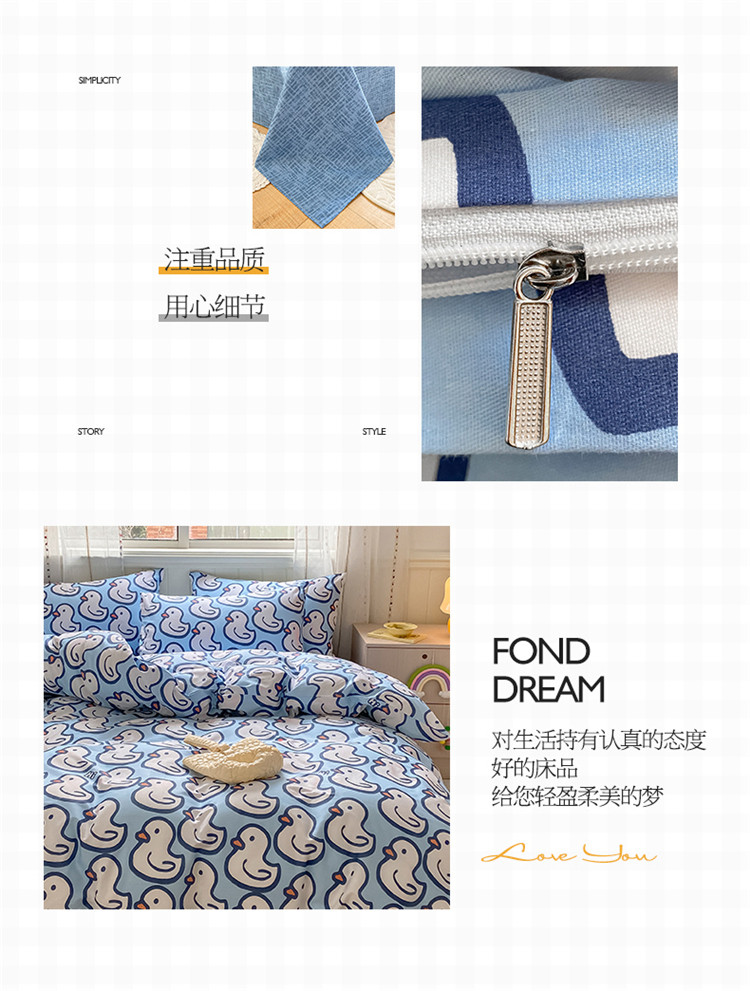 商品名称:桃子家居 2022新款ins小清新奶油卡通纯棉系列四件套 蓝色多多鸭