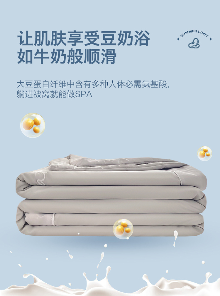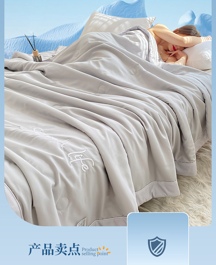 商品名称:米乐被业 2025新款凉感绣花大豆夏被空调被被子被芯浅灰