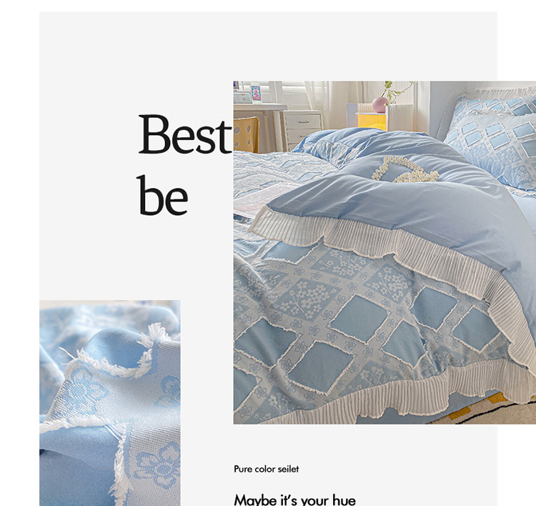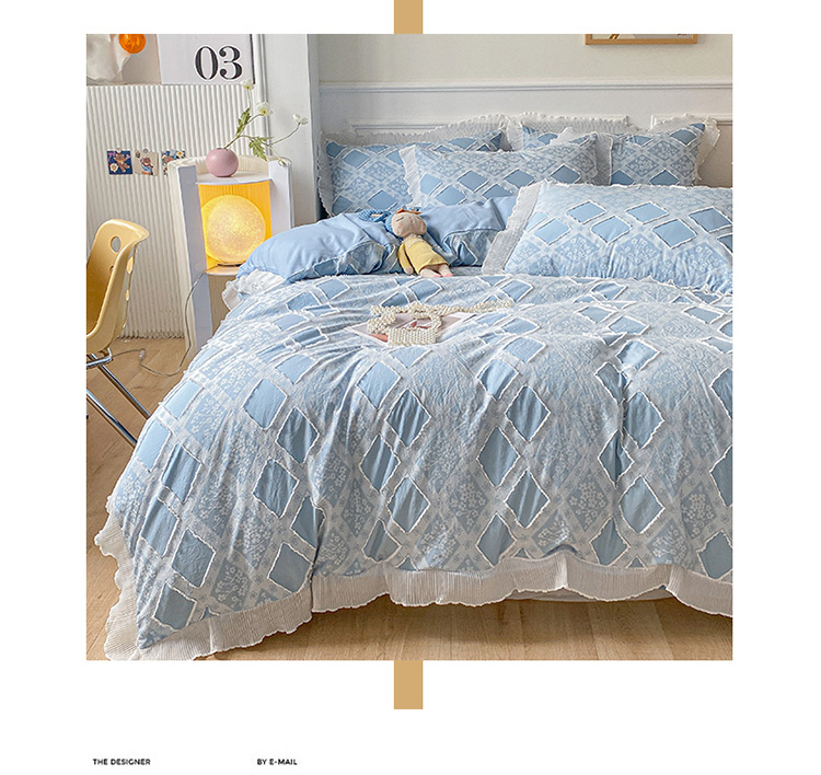 琪格格 2022新款色织水洗提花剪花四件套 倾国-蓝