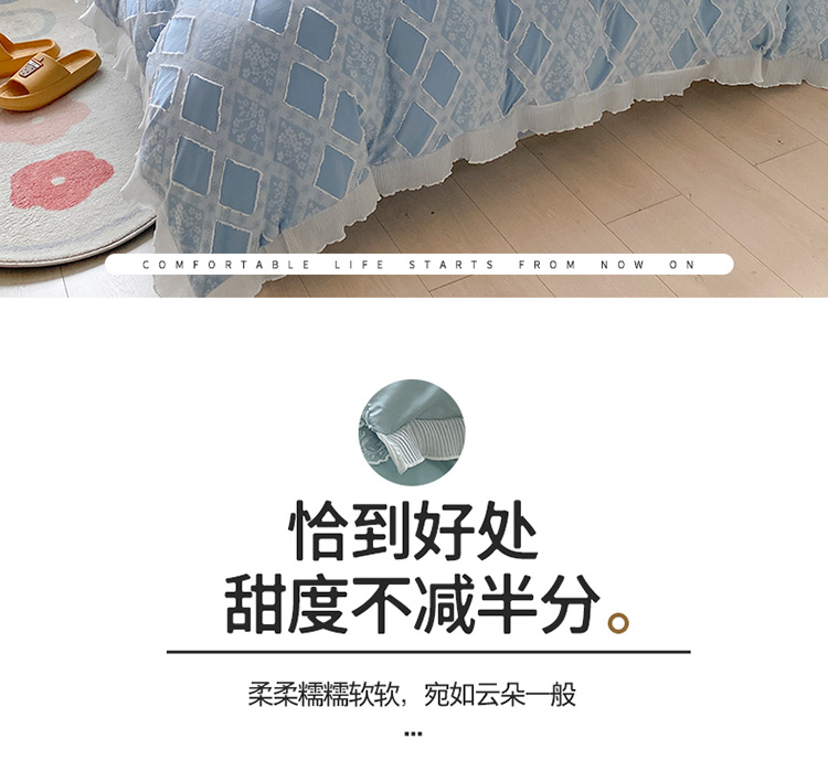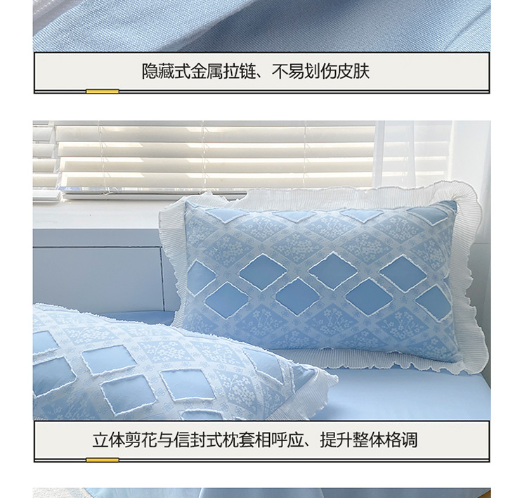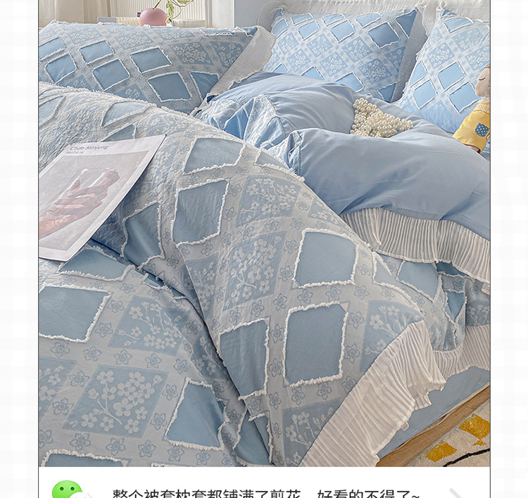 商品名称:琪格格 2022新款色织水洗提花剪花四件套 倾国-蓝