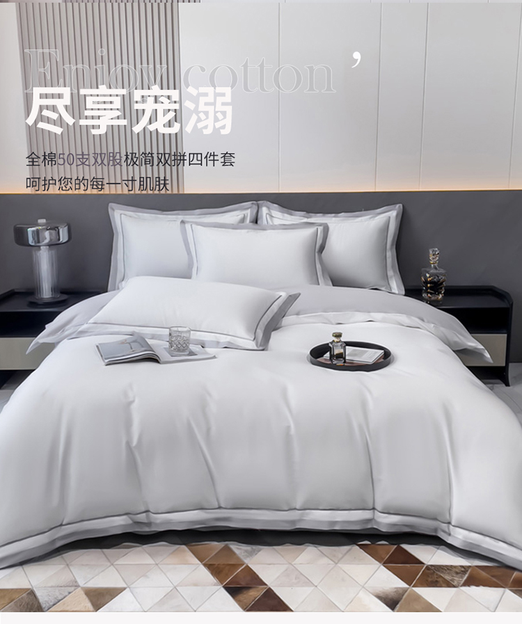 好阁 2023新款100支长绒棉双股全棉极简双拼四件套 白灰