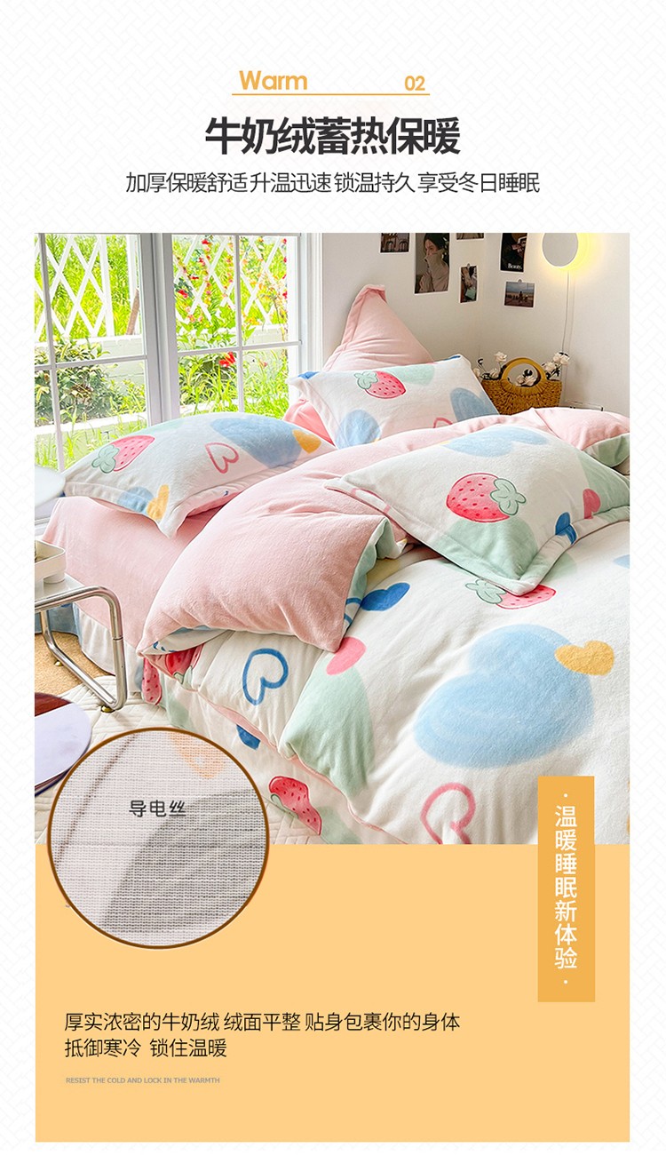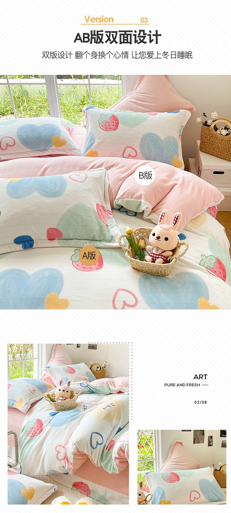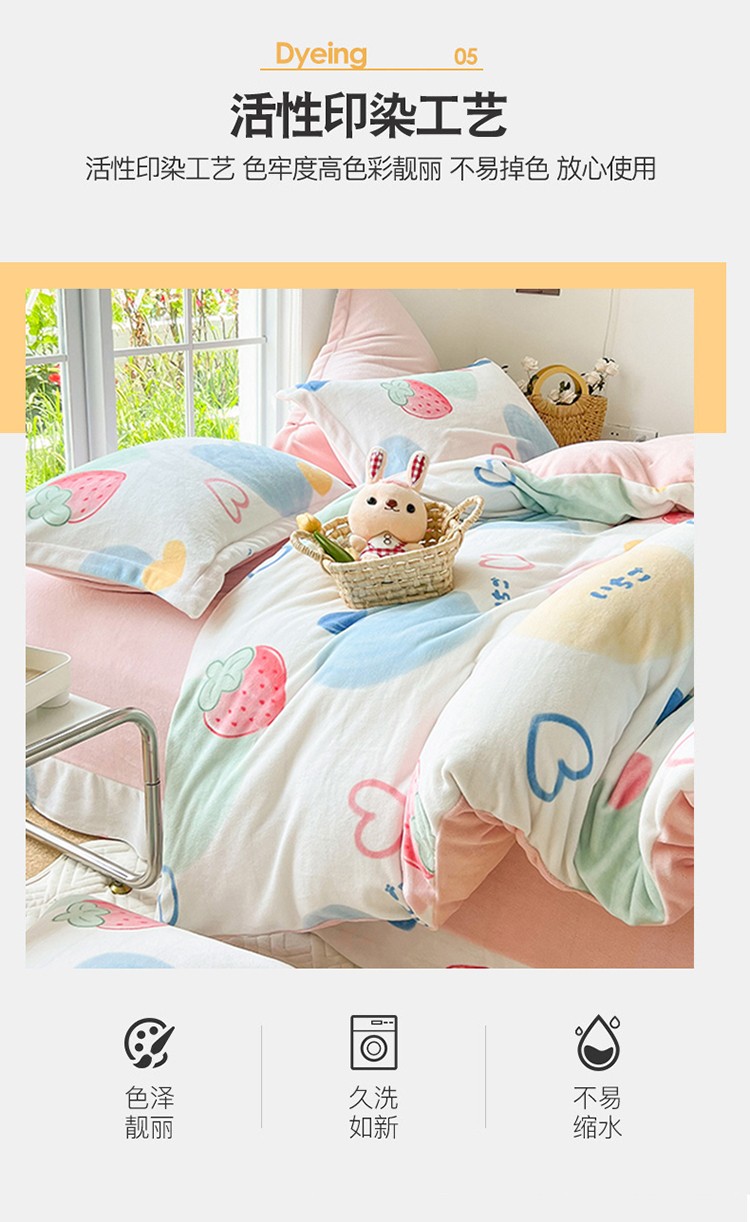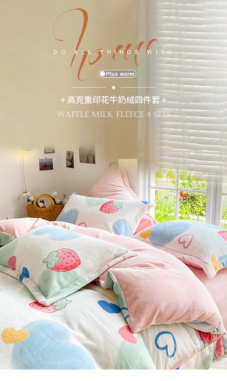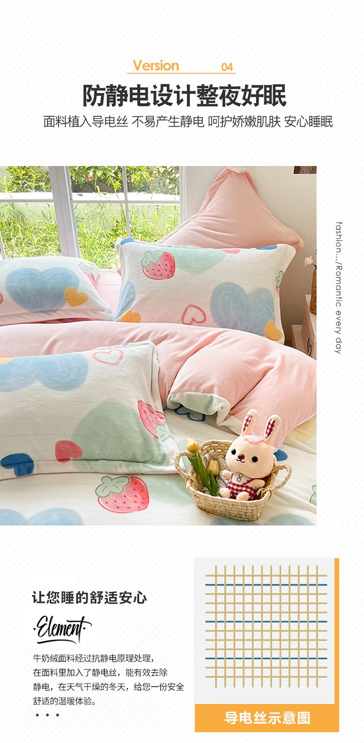 商品名称:呗旺鹿 2022印花小清新加厚保暖牛奶绒四件套直播 莓莓相印